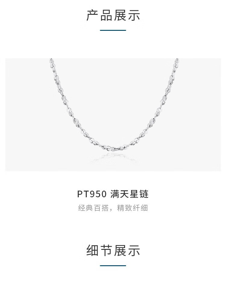 Chow Tai Fook starry sky chain platinum PT950 platinum necklace plain chain PT162410 birthday gift 40cm