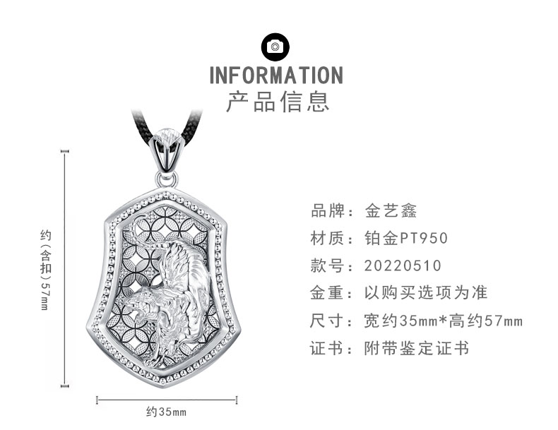 Jin Yixin men's platinum pendant PT950 domineering tiger zodiac tag men's platinum necklace pendant boyfriend gift platinum pendant weighs about 23 grams