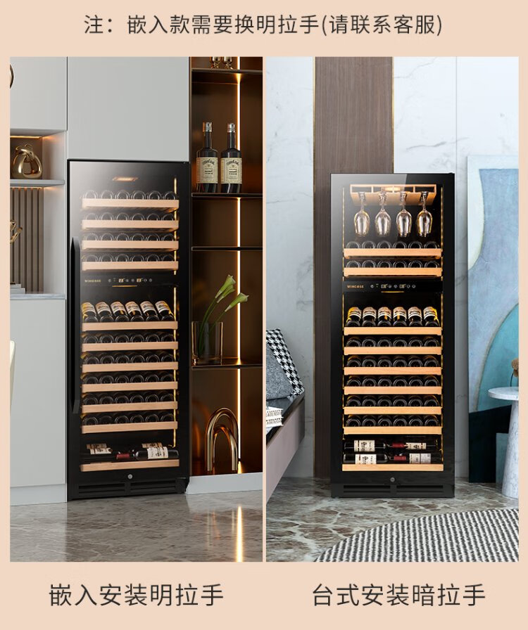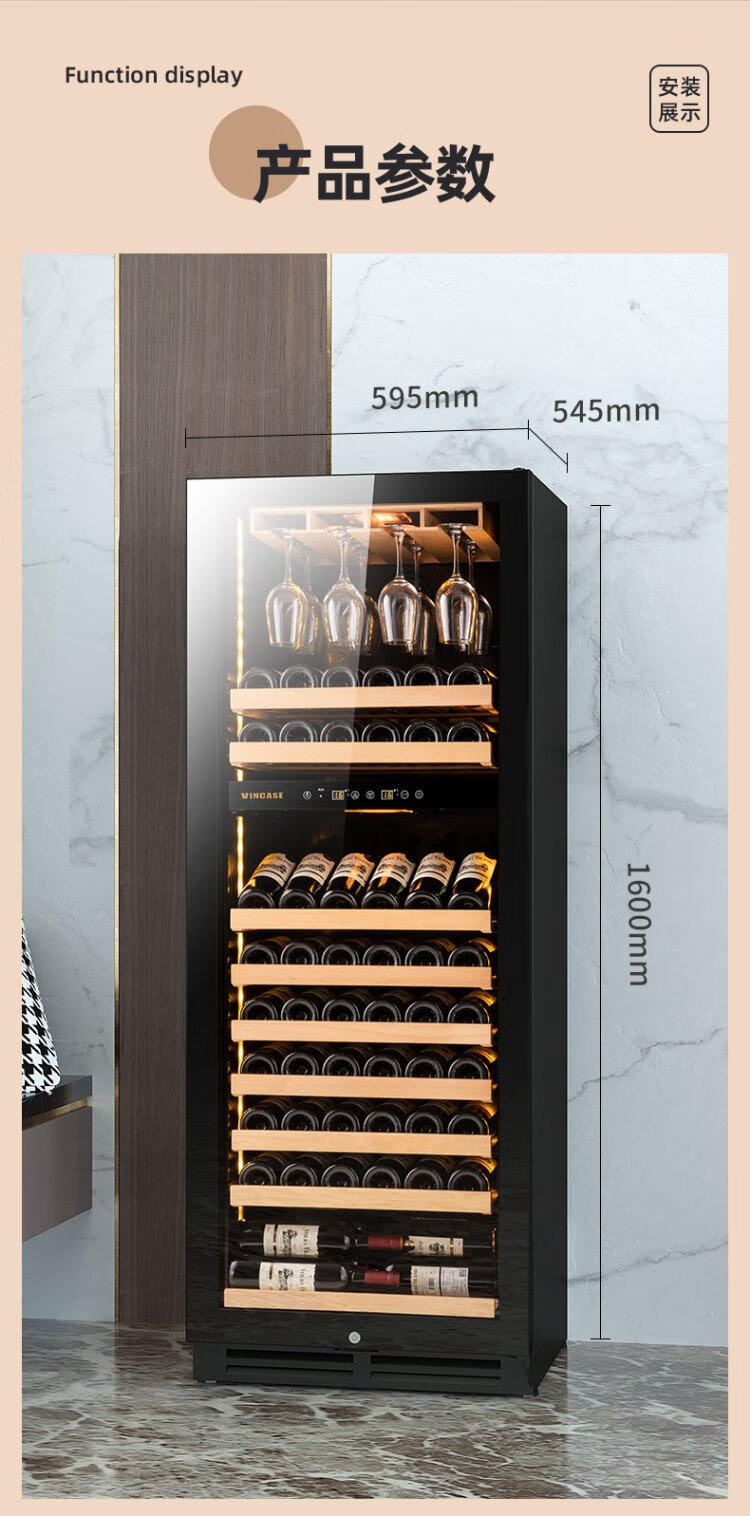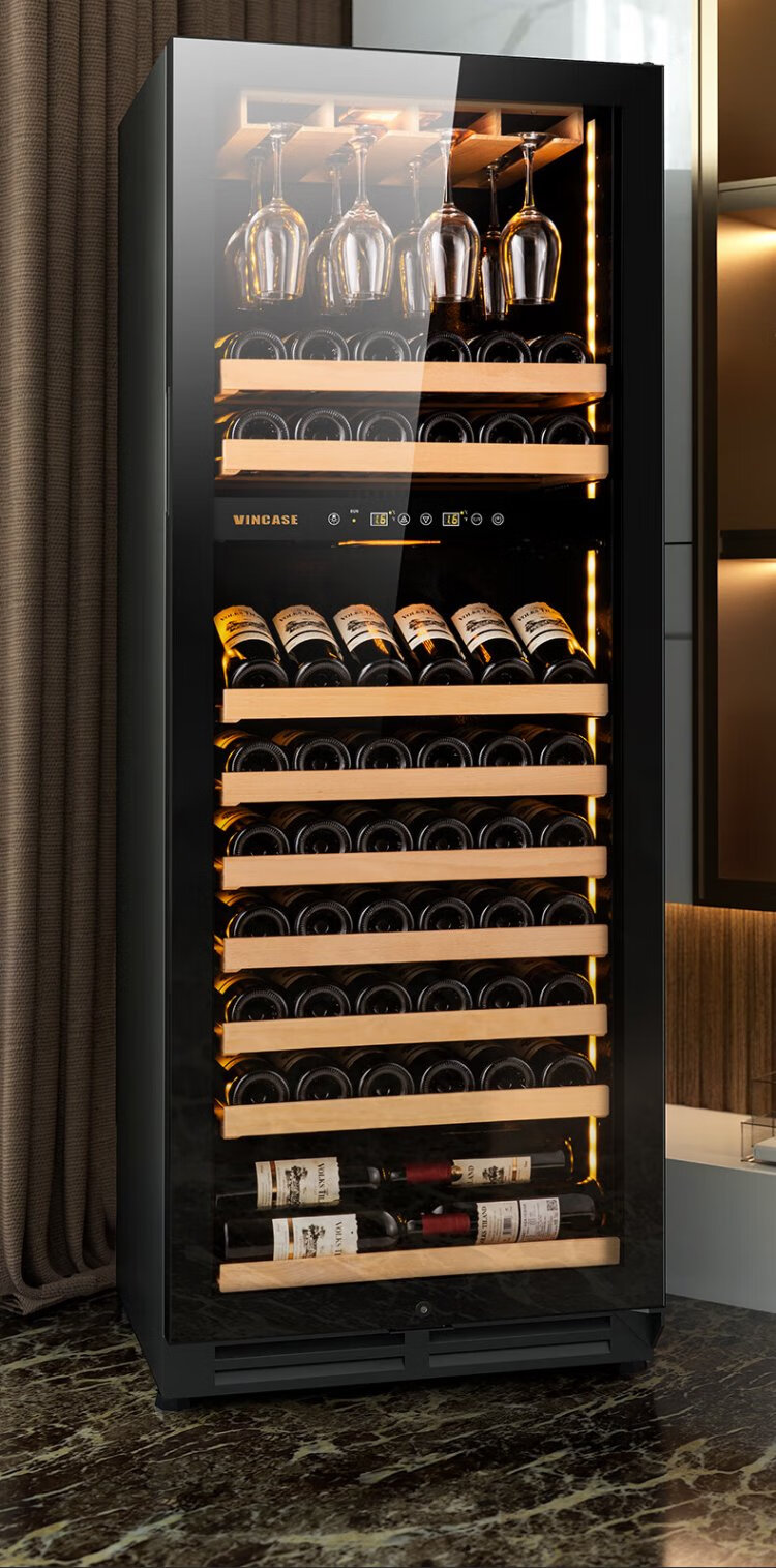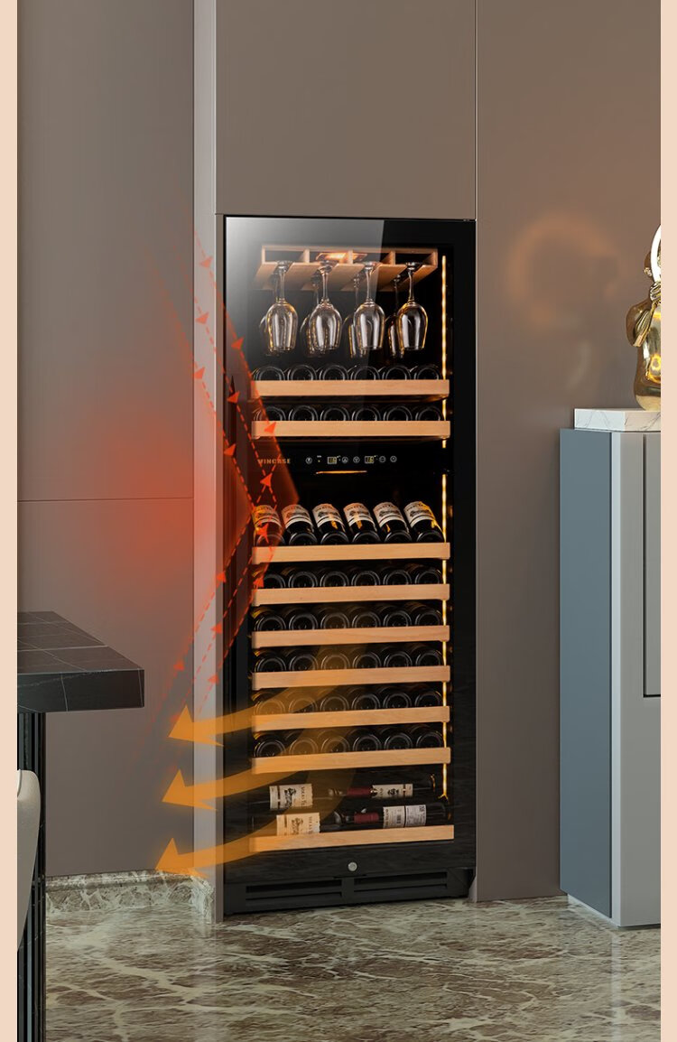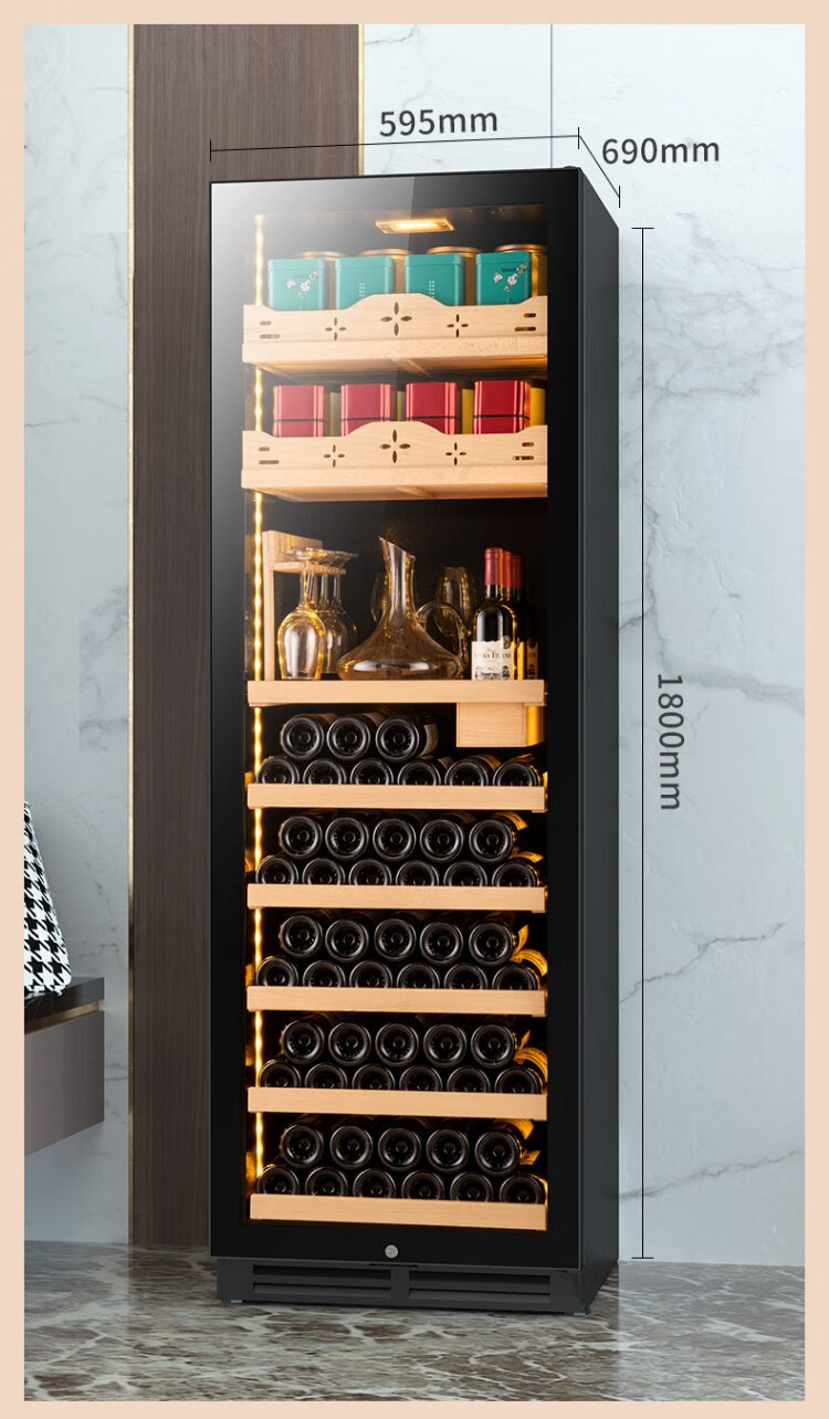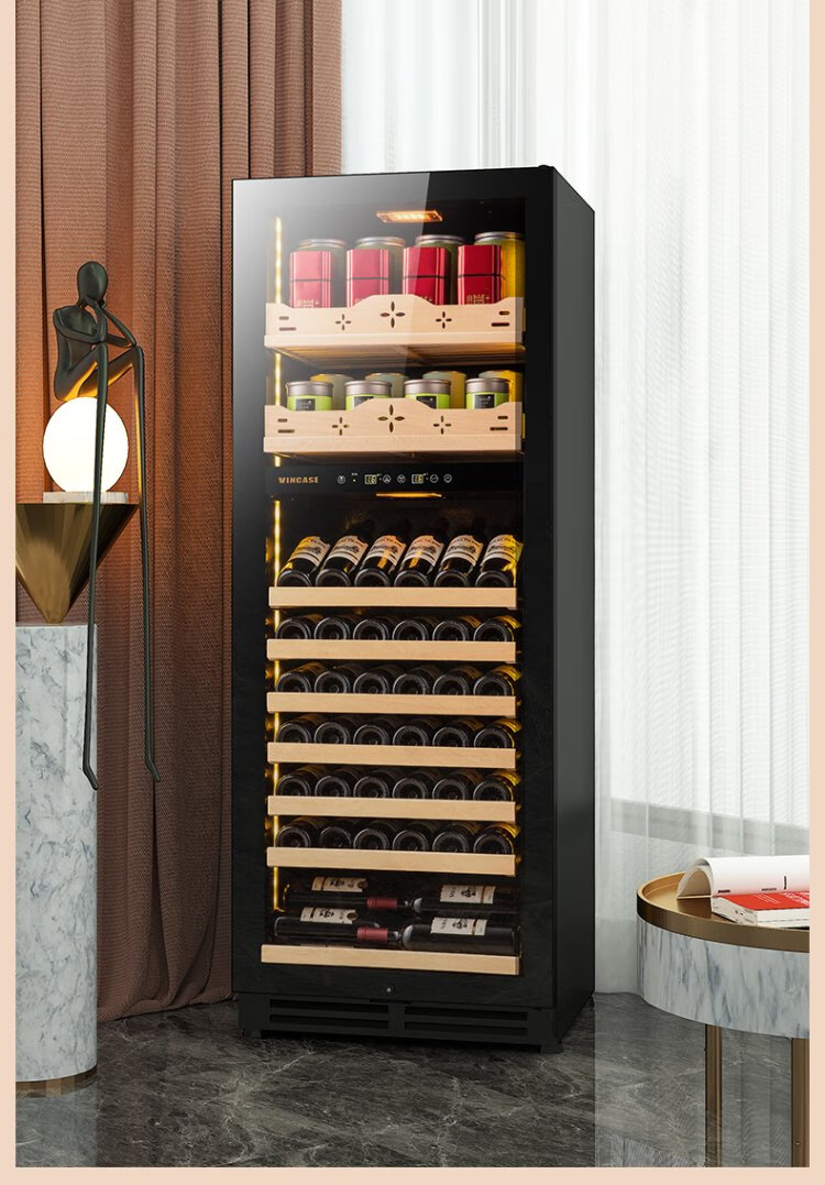 Vincase variable frequency red wine cabinet, constant temperature wine cabinet, home ultra-thin and embeddable air-cooled, frost-free wine, Moutai, humidity-controlled display cabinet, fruit drinks, wine, liquor, tea, smart refrigerator, 1.8 meters, dual temperature, red wine + tea, 110 bottles, thin version, 550mm deep