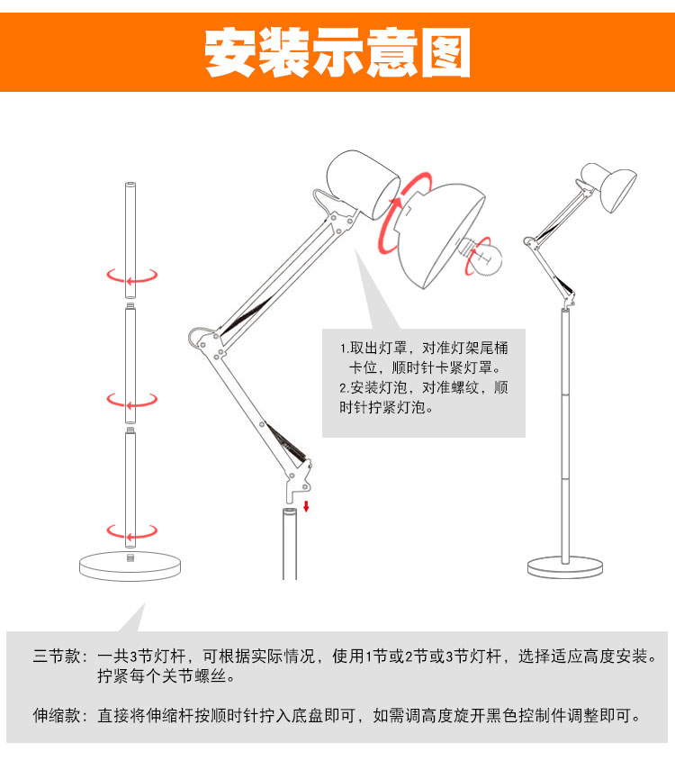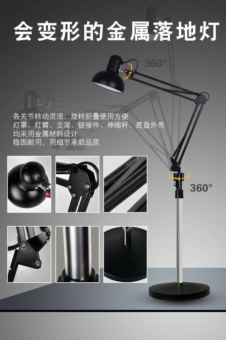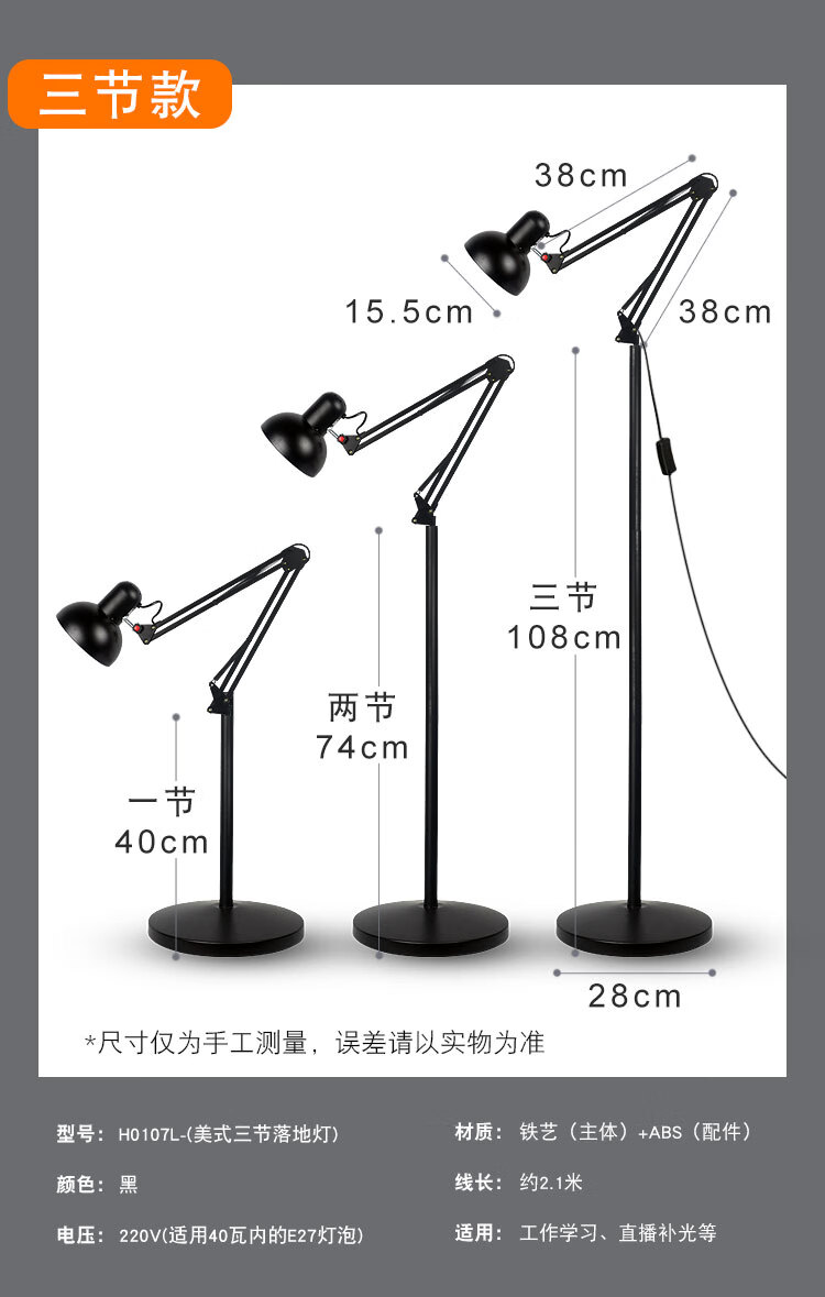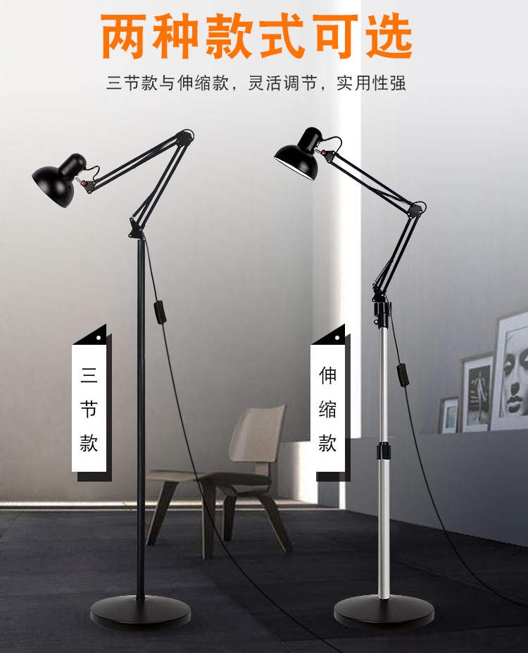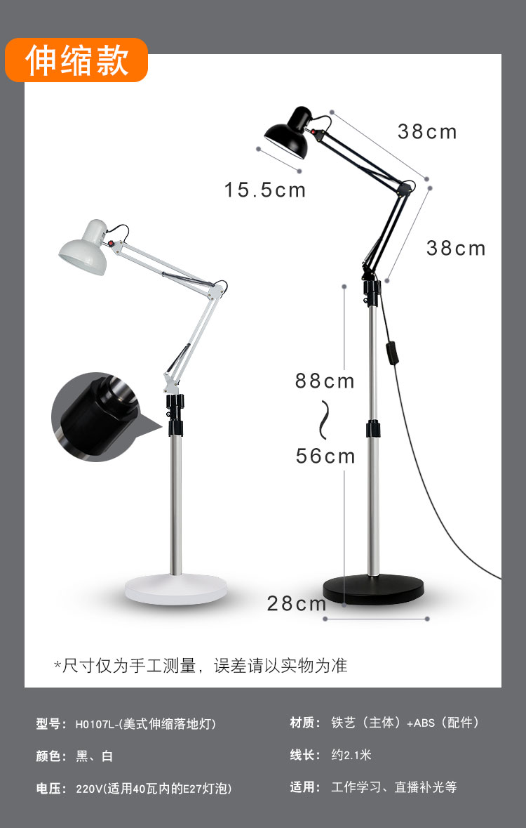 Sparrow lamp, American style living room, study, bedroom, rocker arm, sparrow table lamp, tattoo embroidery eyelashes and manicure live broadcast office long arm floor lamp, telescopic black (no light bulb)
