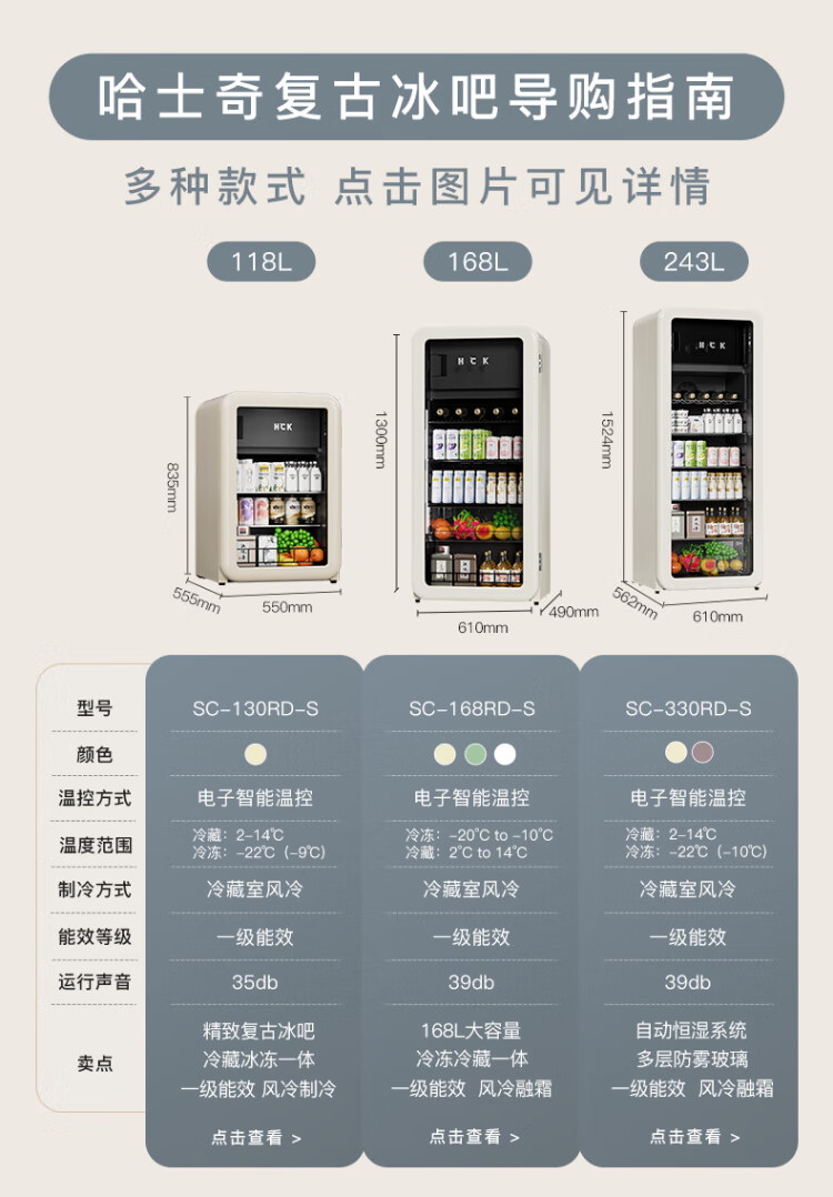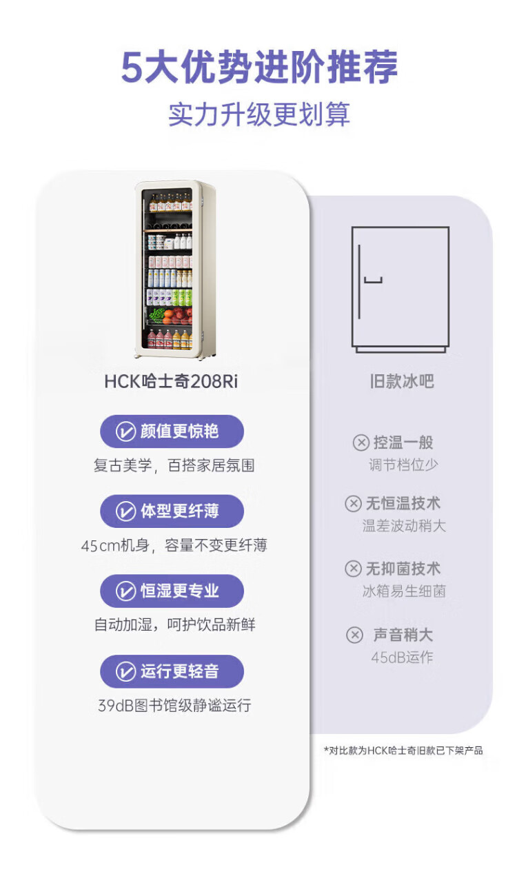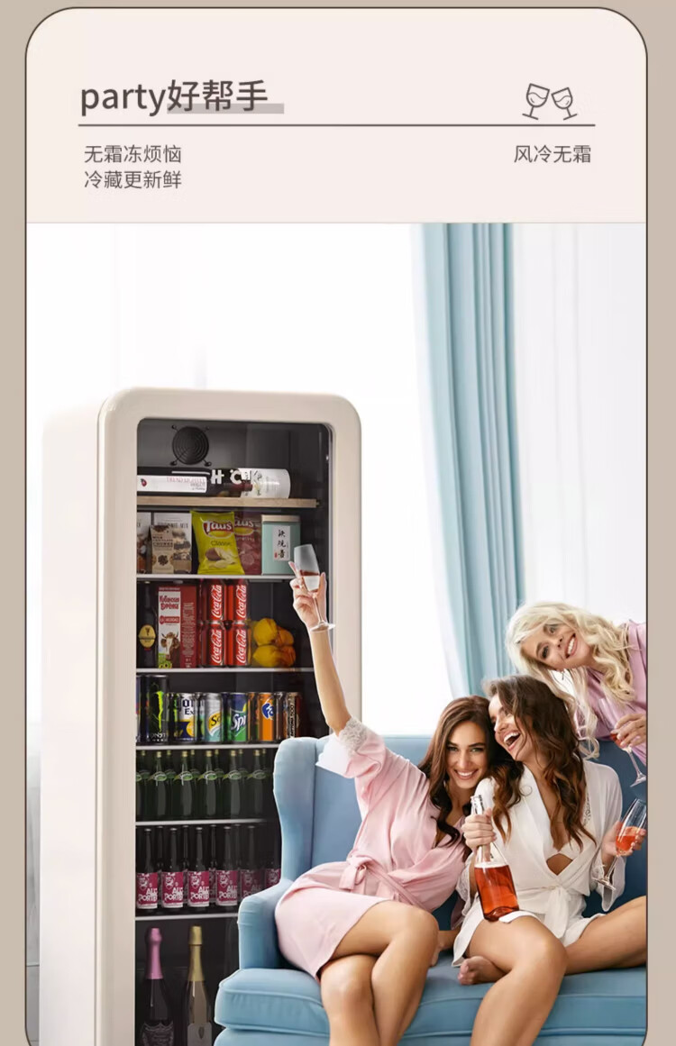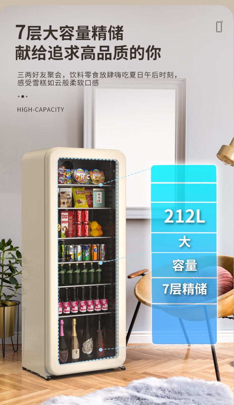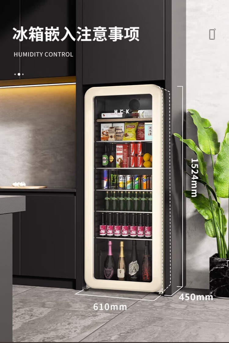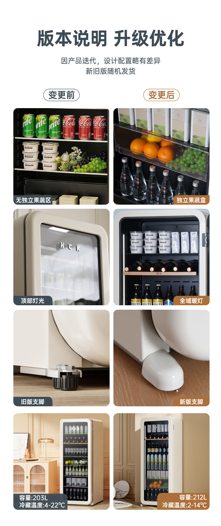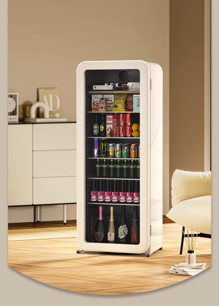 HCK Husky Ice Bar 212 liter ultra-thin refrigerator retro large capacity home living room air-cooled refrigerator beverage refrigeration and preservation cabinet electronic temperature control ice bar sc-208ri milk tea color丨slim丨212L first-class energy efficiency
