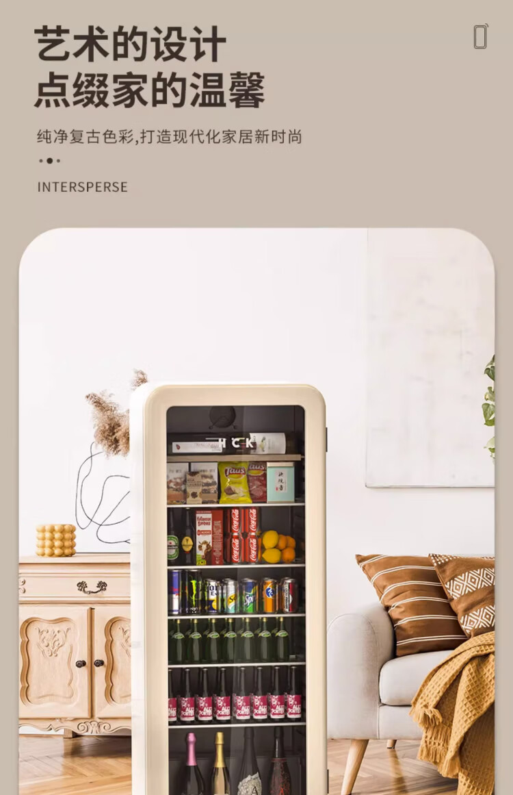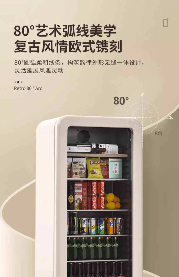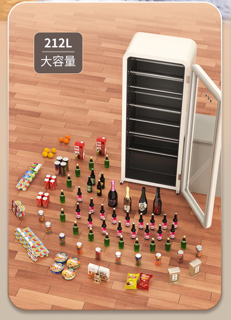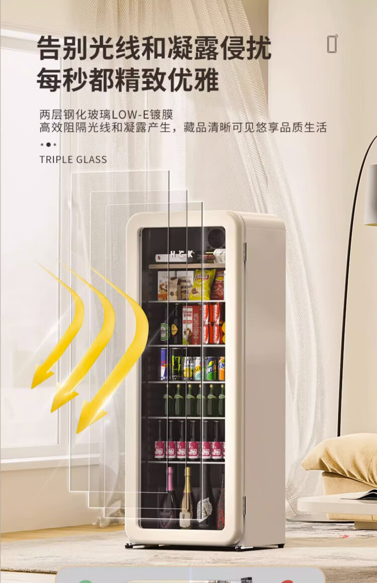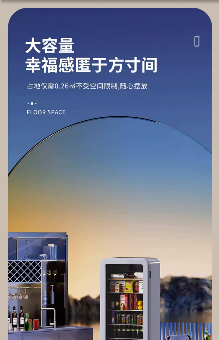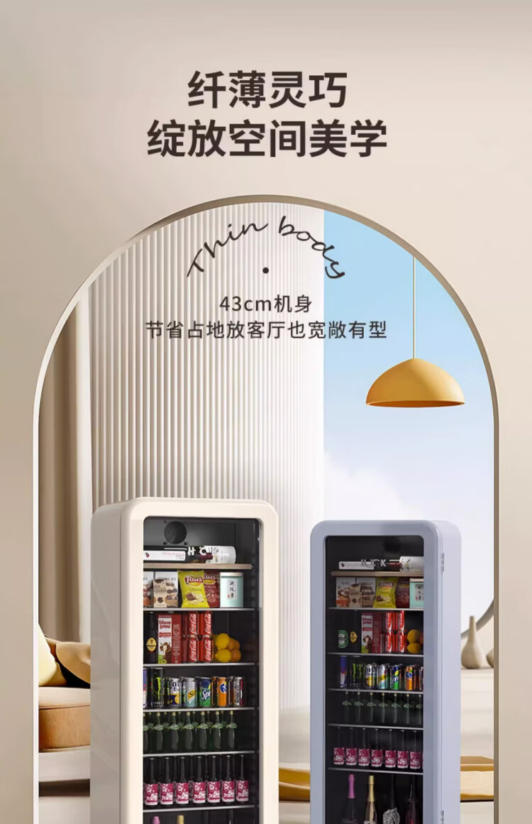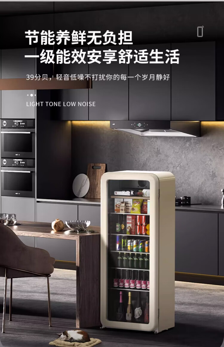 HCK Husky Ice Bar 212 liter ultra-thin refrigerator retro large capacity home living room air-cooled refrigerator beverage refrigeration and preservation cabinet electronic temperature control ice bar sc-208ri milk tea color丨slim丨212L first-class energy efficiency