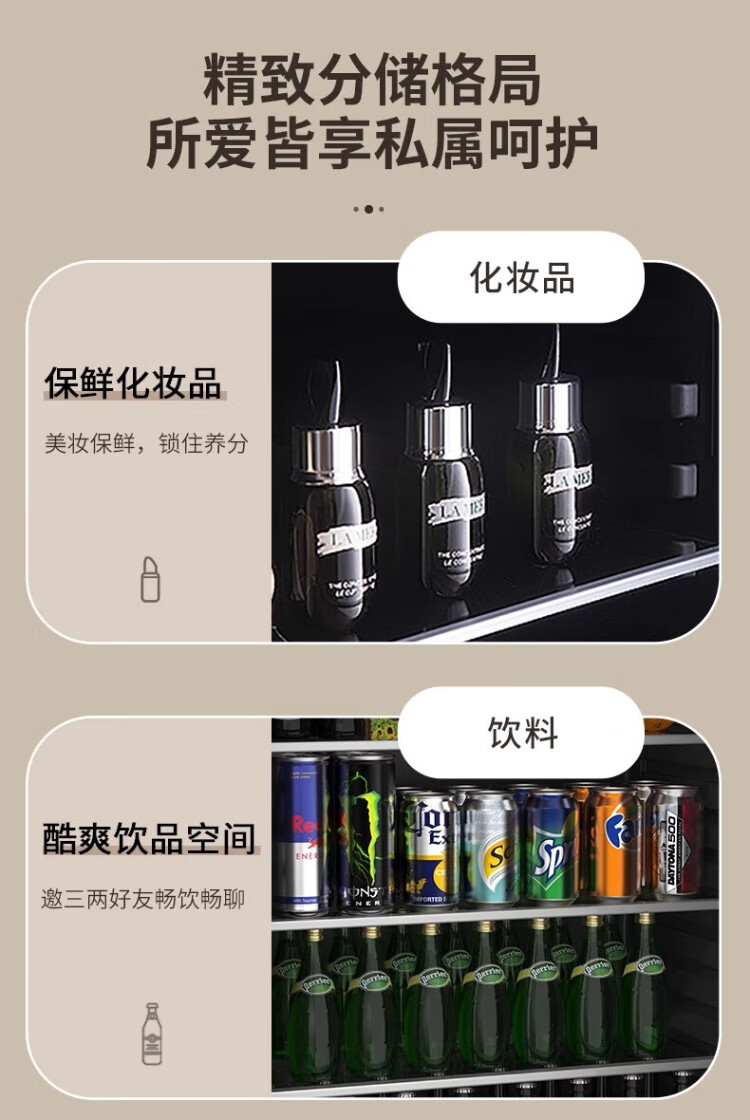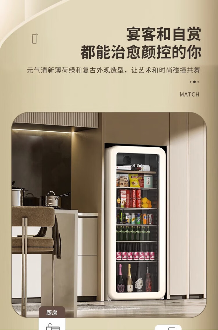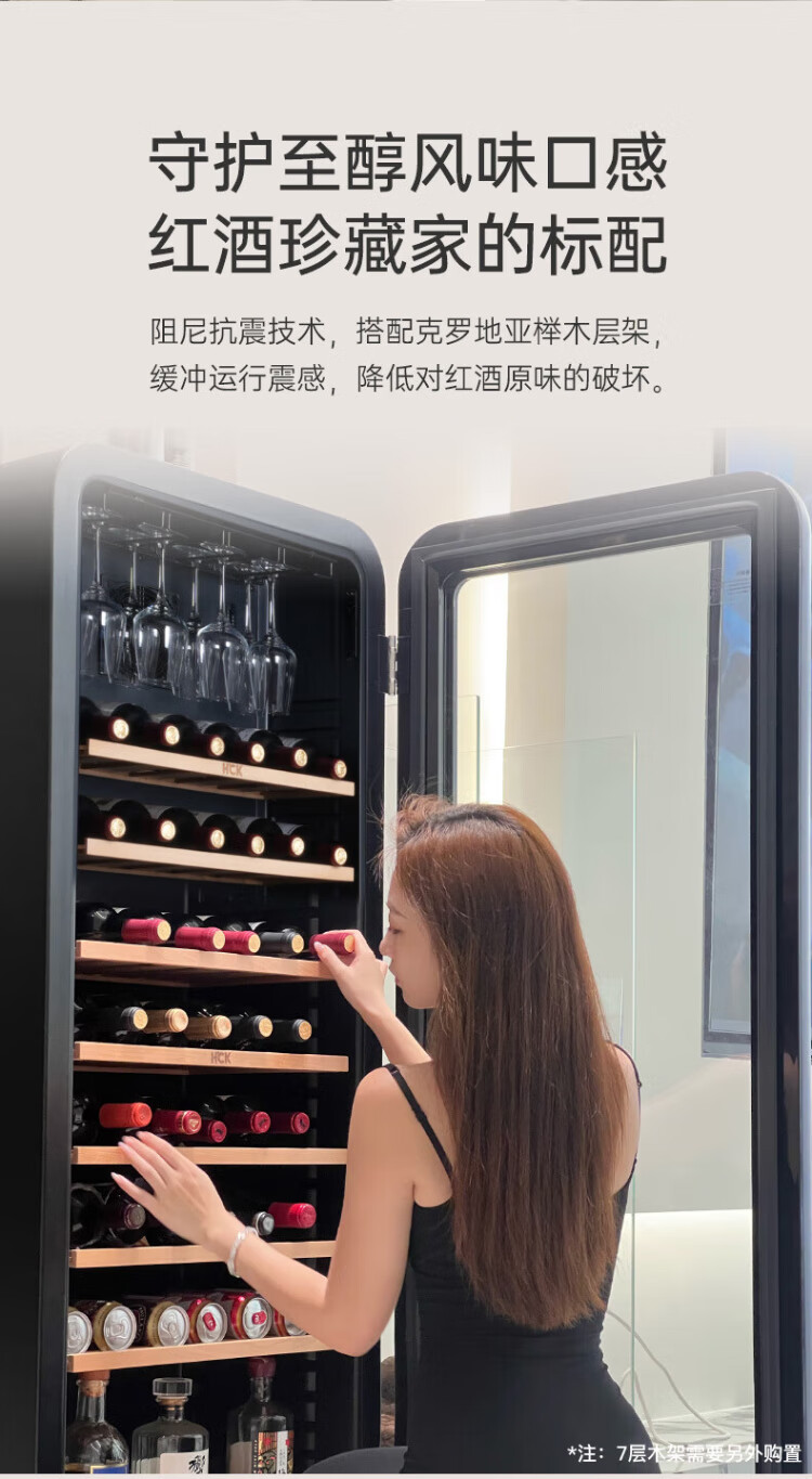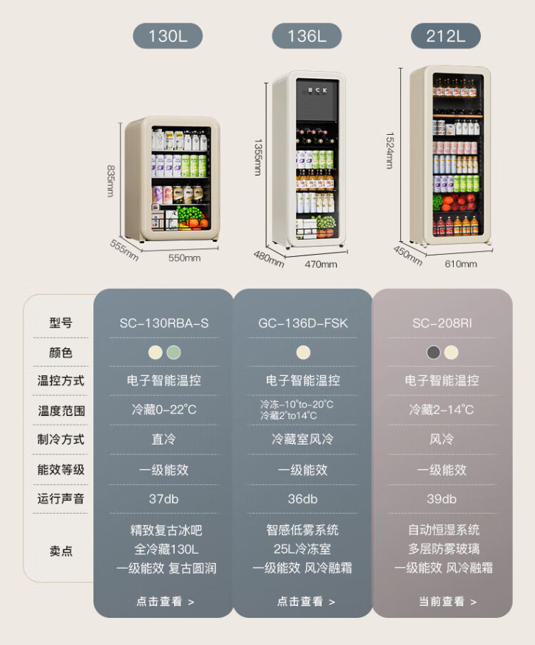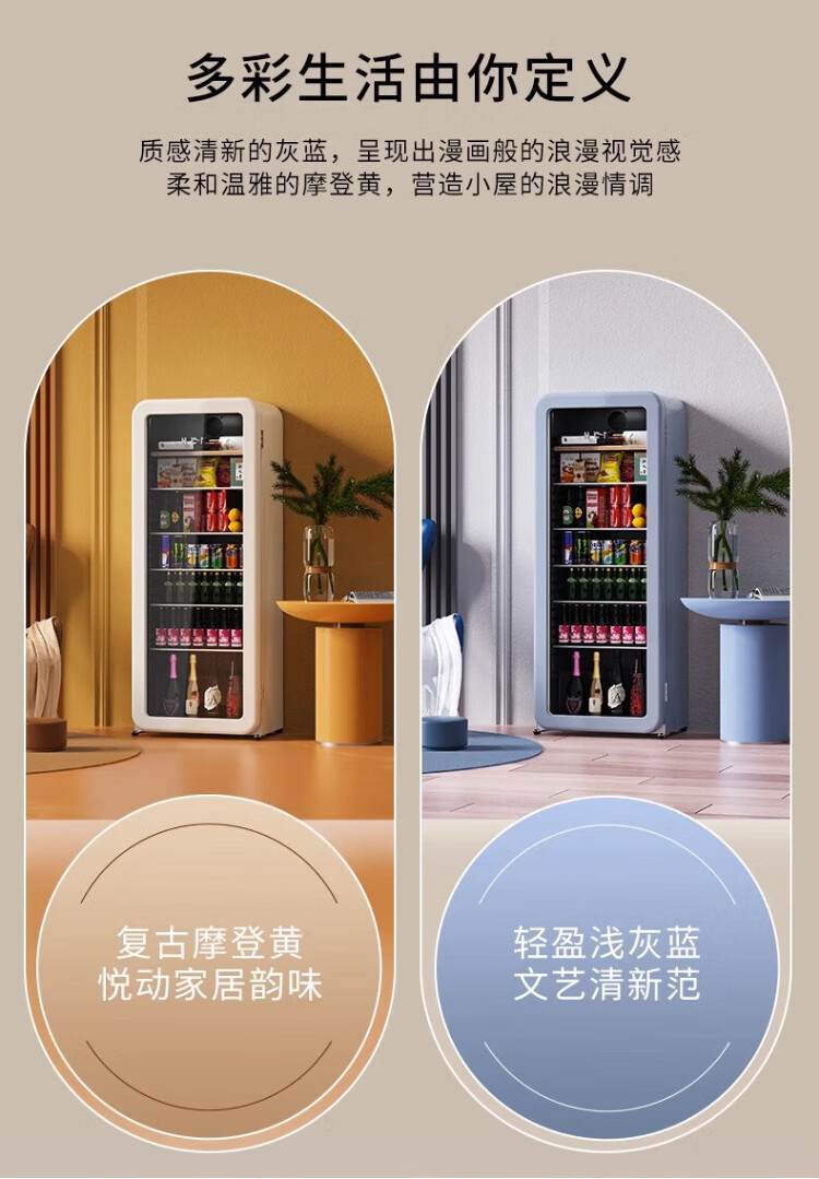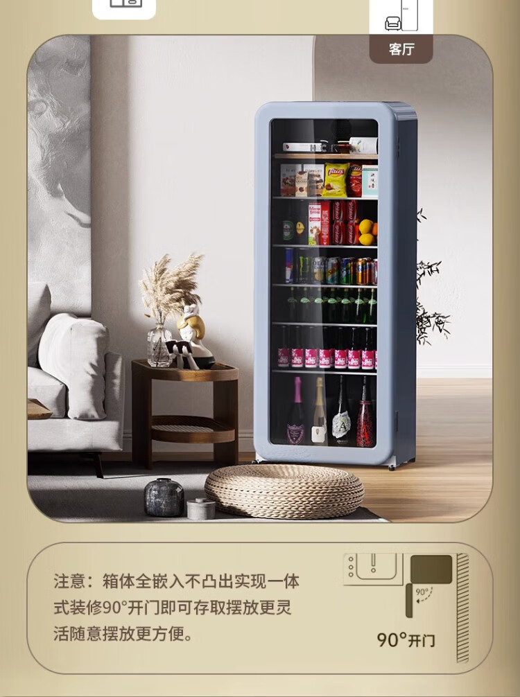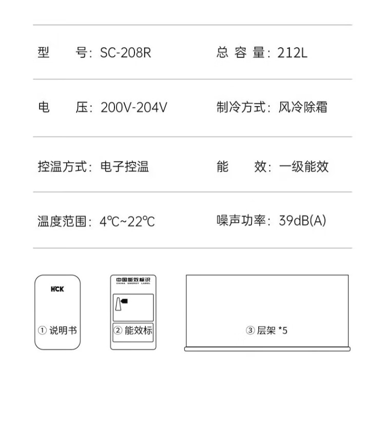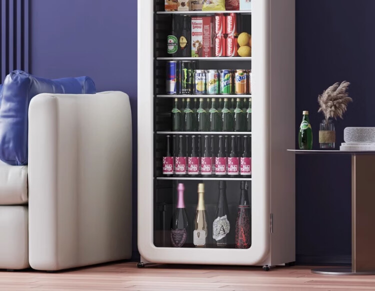 HCK Husky Ice Bar 212 liter ultra-thin refrigerator retro large capacity home living room air-cooled refrigerator beverage refrigeration and preservation cabinet electronic temperature control ice bar sc-208ri milk tea color丨slim丨212L first-class energy efficiency