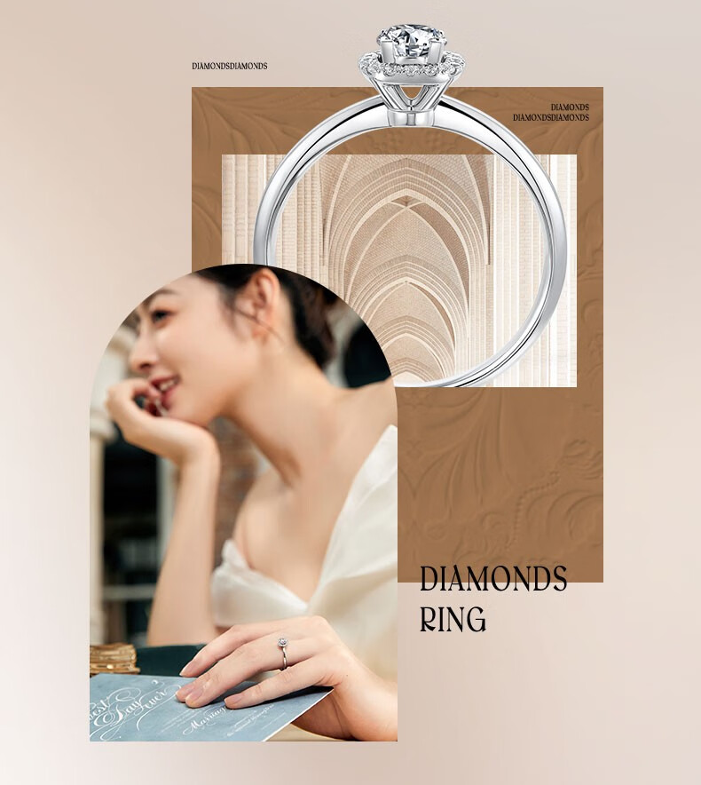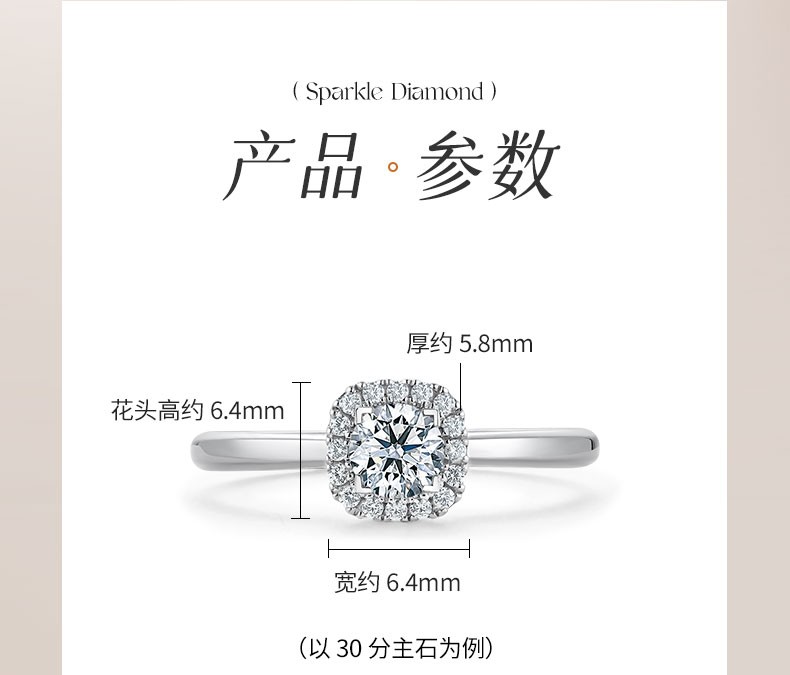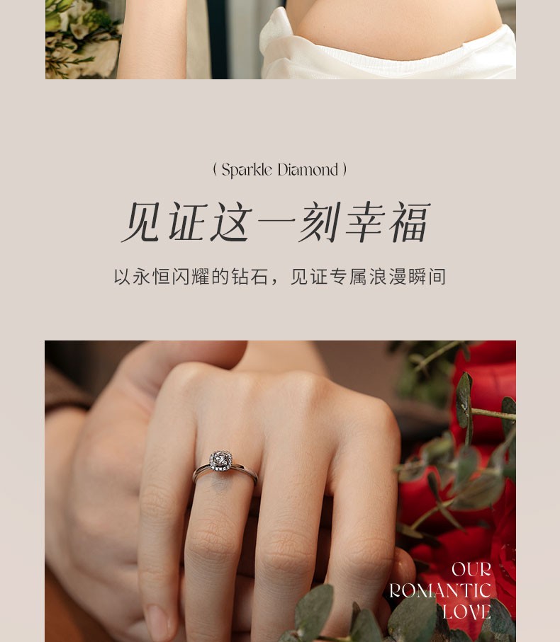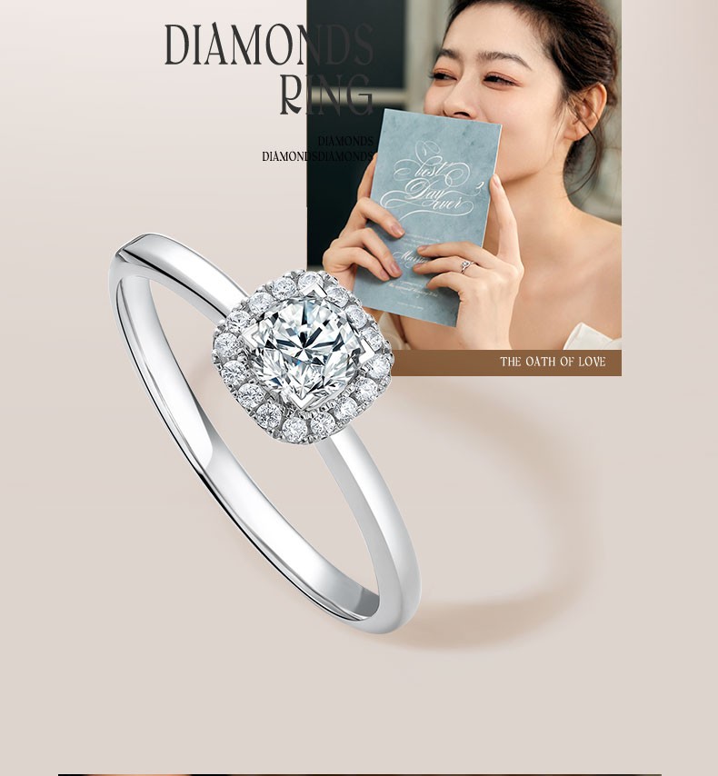 Saturday Fortune (ZLF) 18K gold diamond ring for women's favorite classic square diamond wedding proposal engagement diamond ring T 30 minutes VS/H size 14