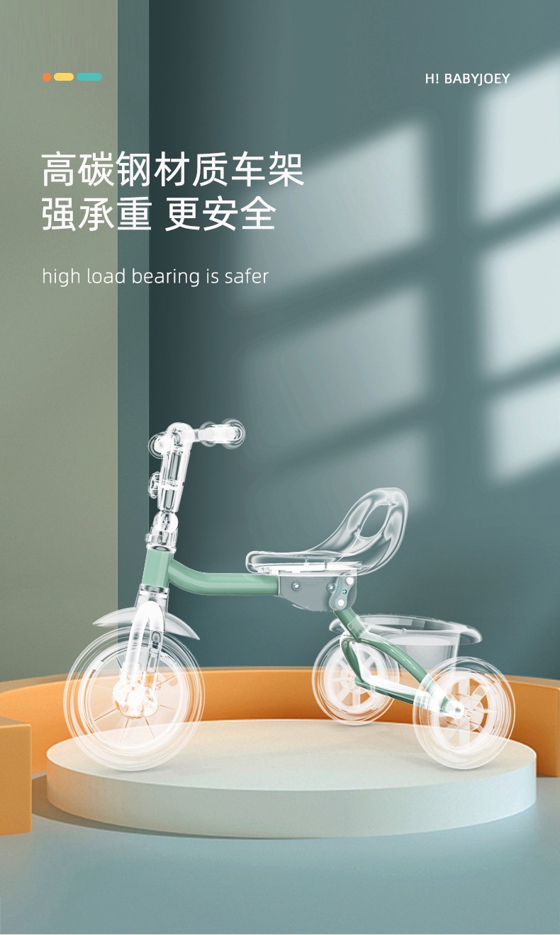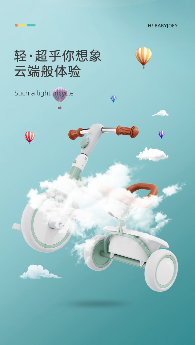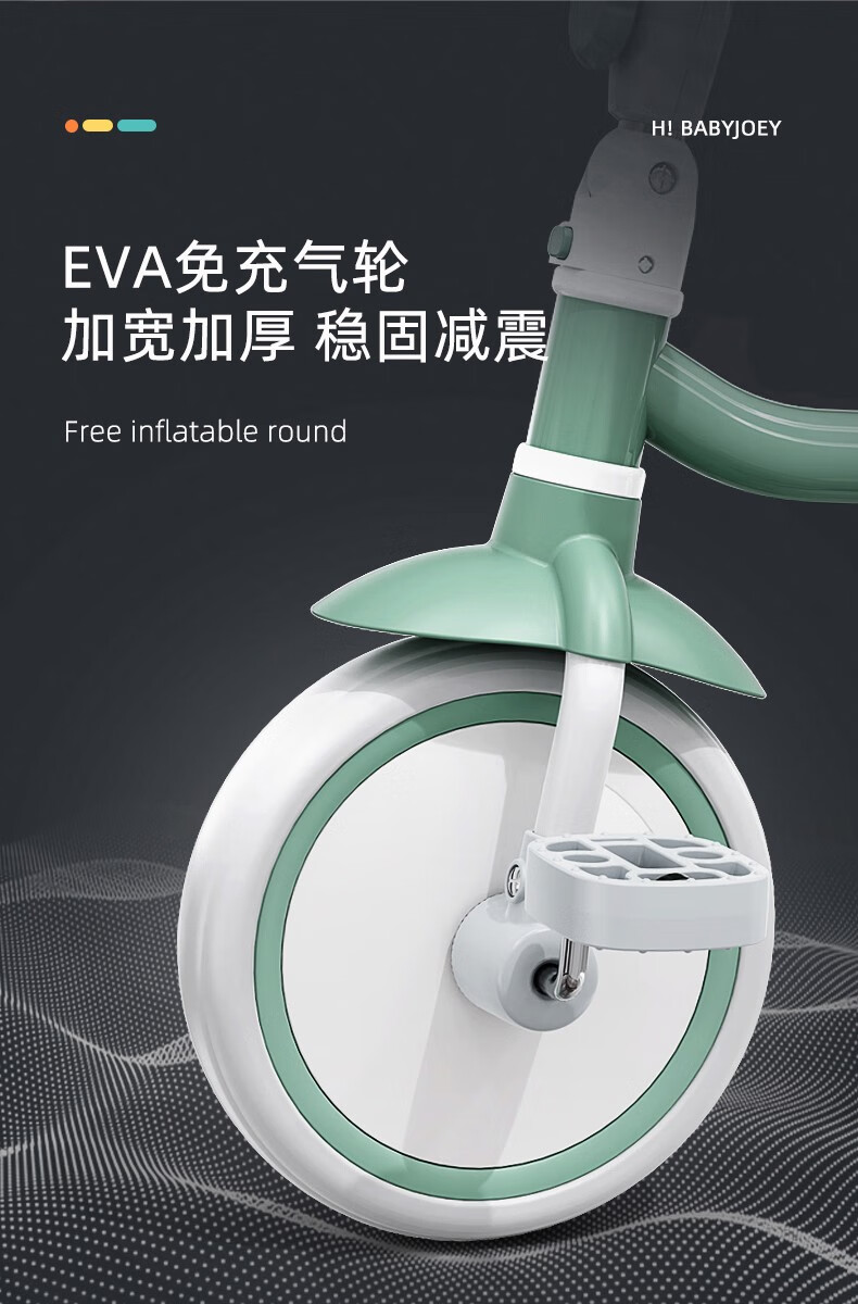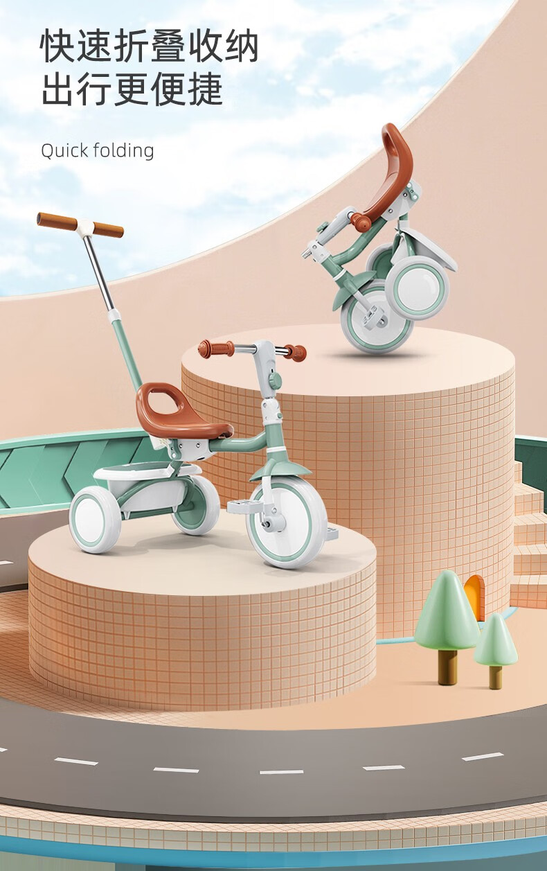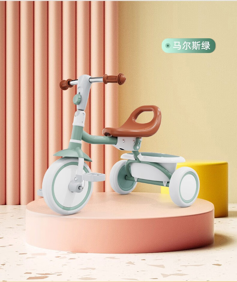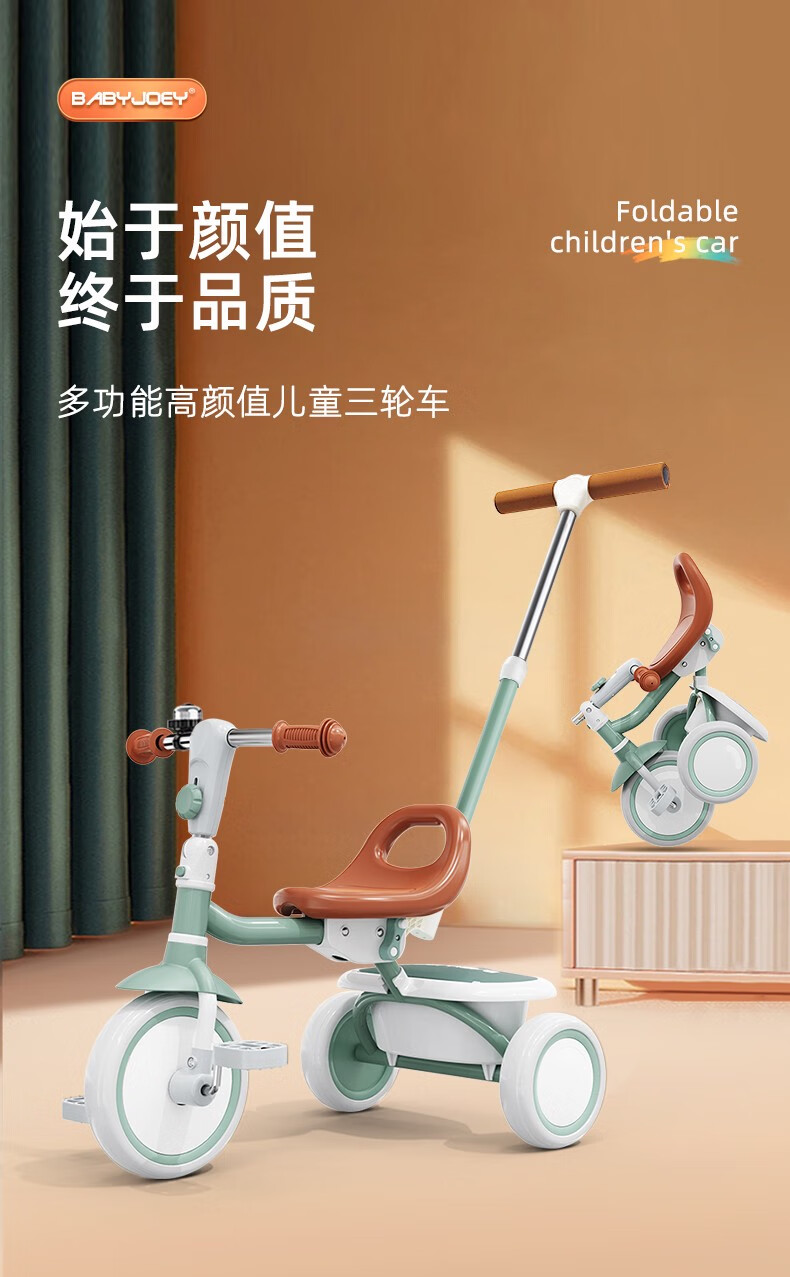 BABYJOEY British children's tricycle bicycle stroller 1-5 years old lightweight foldable baby stroller TT61 gift Mars Green (with push rod)