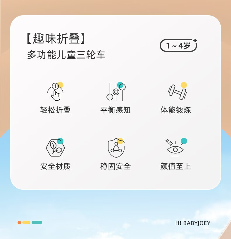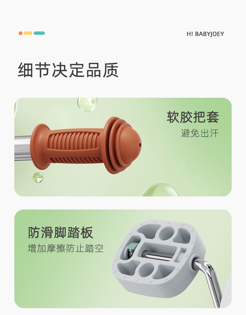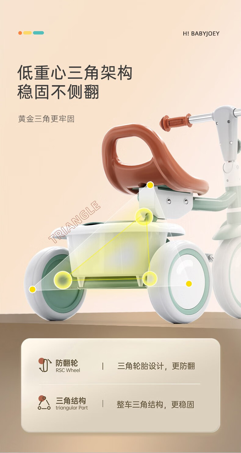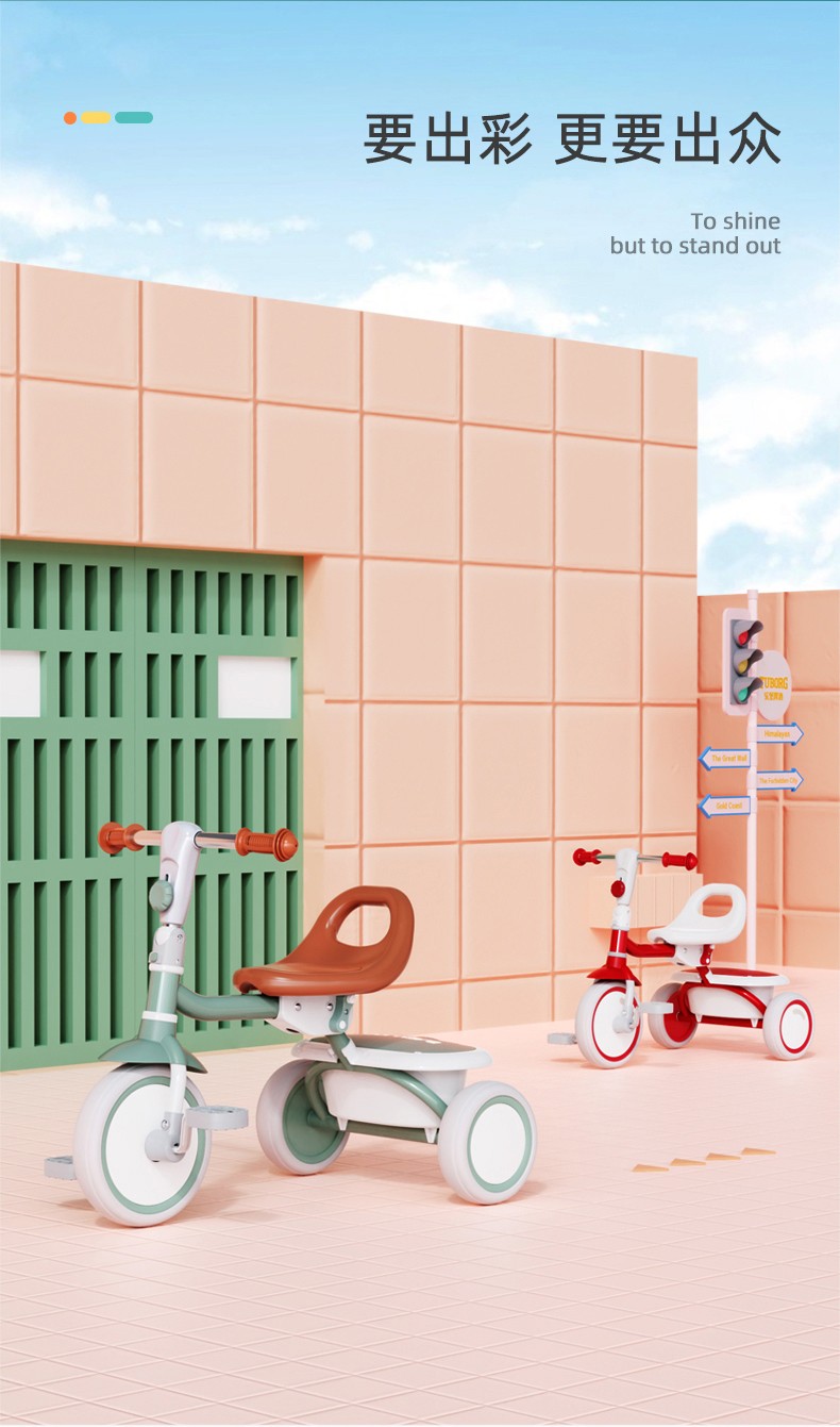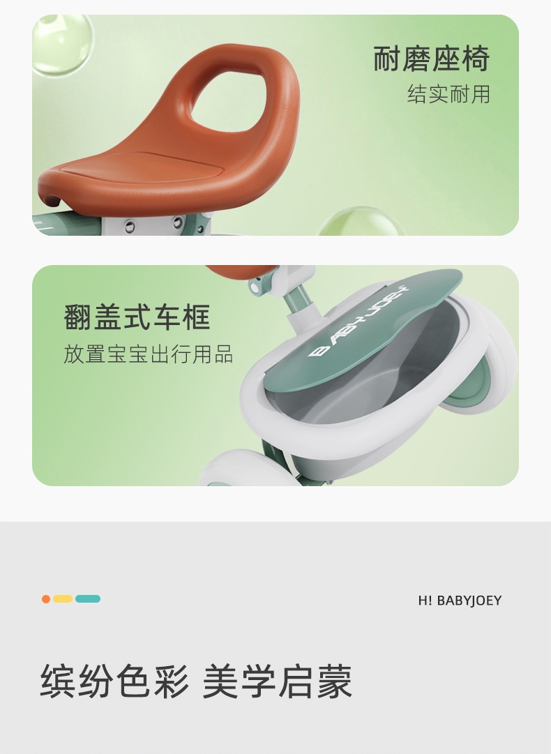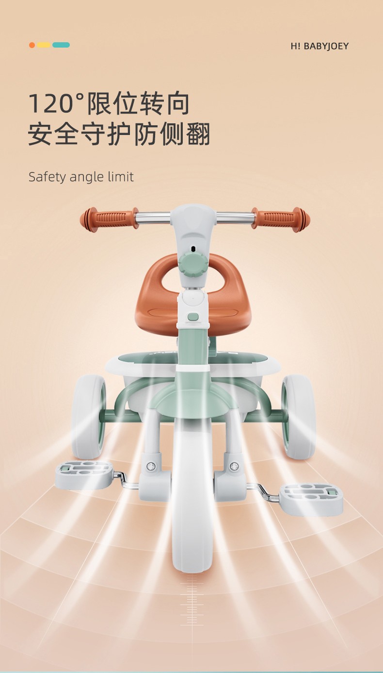 BABYJOEY British children's tricycle bicycle stroller 1-5 years old lightweight foldable baby stroller TT61 gift Mars Green (with push rod)