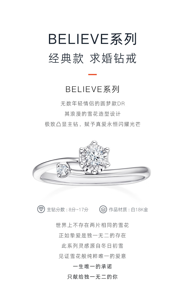 DR Proposal Diamond Ring K Gold BELIEVE Classic Xueman Ring Holiday Gift Certificate + Gift Box 8 Points H Color SI1