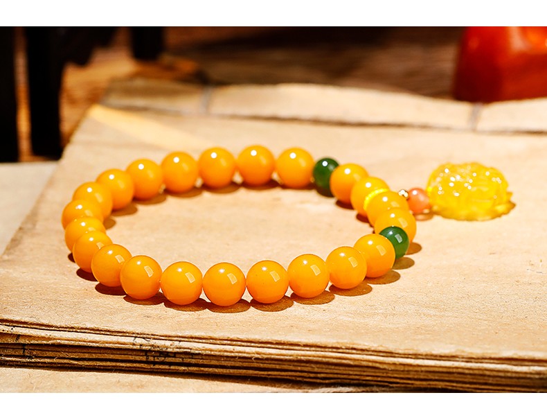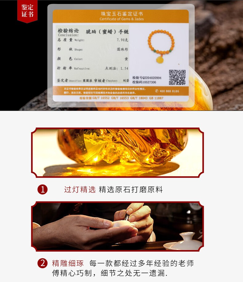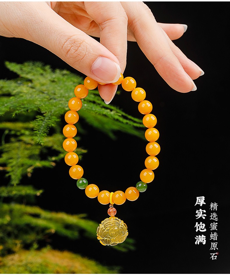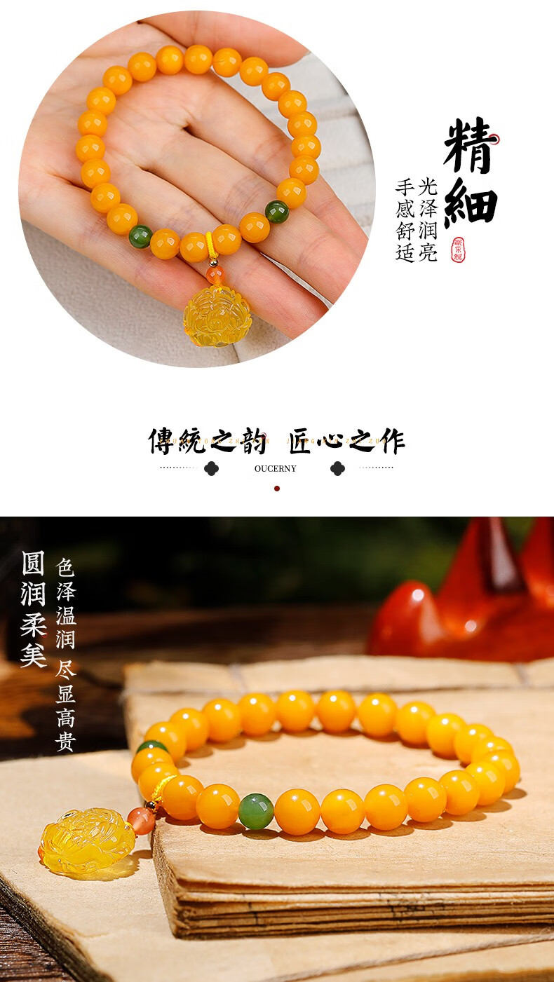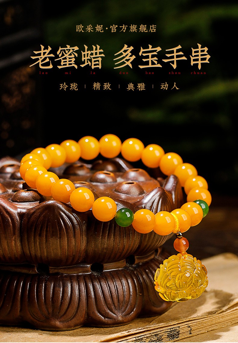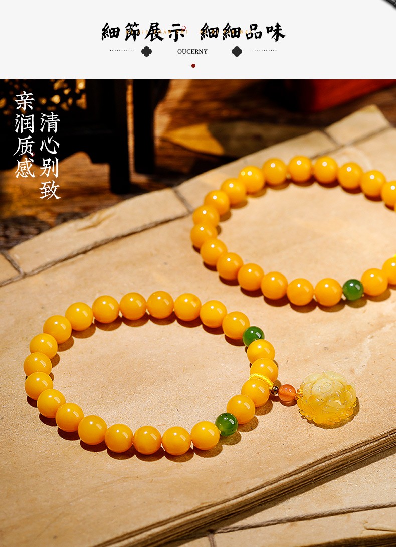 Ouchini beeswax bracelet, natural amber chicken fat, yellow old beeswax, gold amber rose pendant, jasper round bead multi-treasure bracelet, ladies gift, comes with national inspection certificate, one thing, one certificate, supports re-inspection