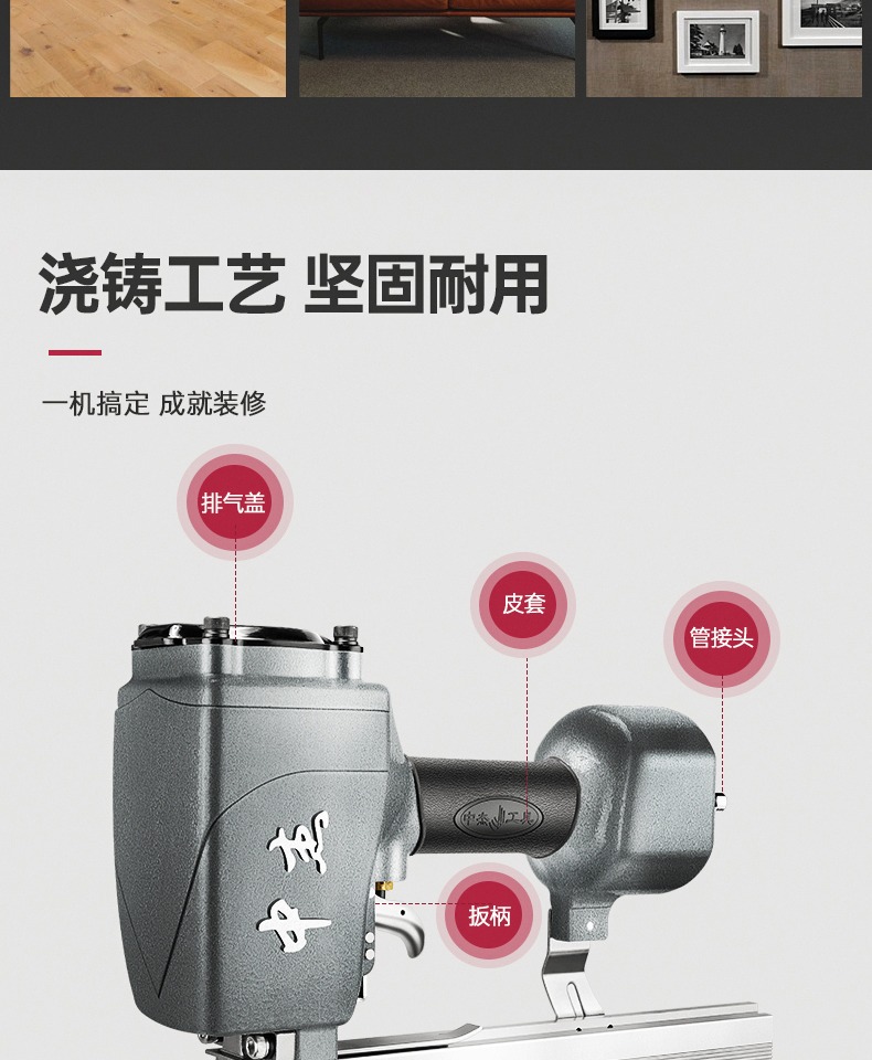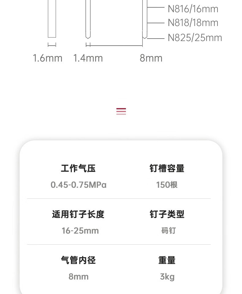 Zhongjie ZN825 large size nail gun air nail gun pneumatic rolling foot rolling gate gypsum board U-shaped ZN825+needle+repair kit