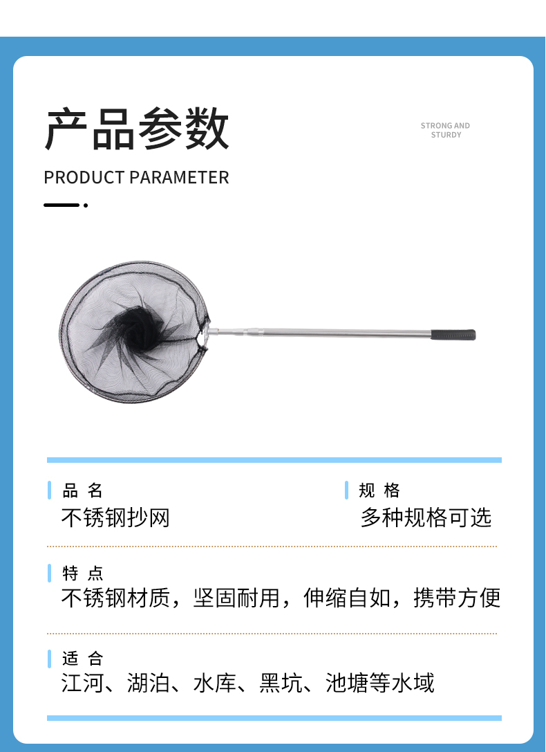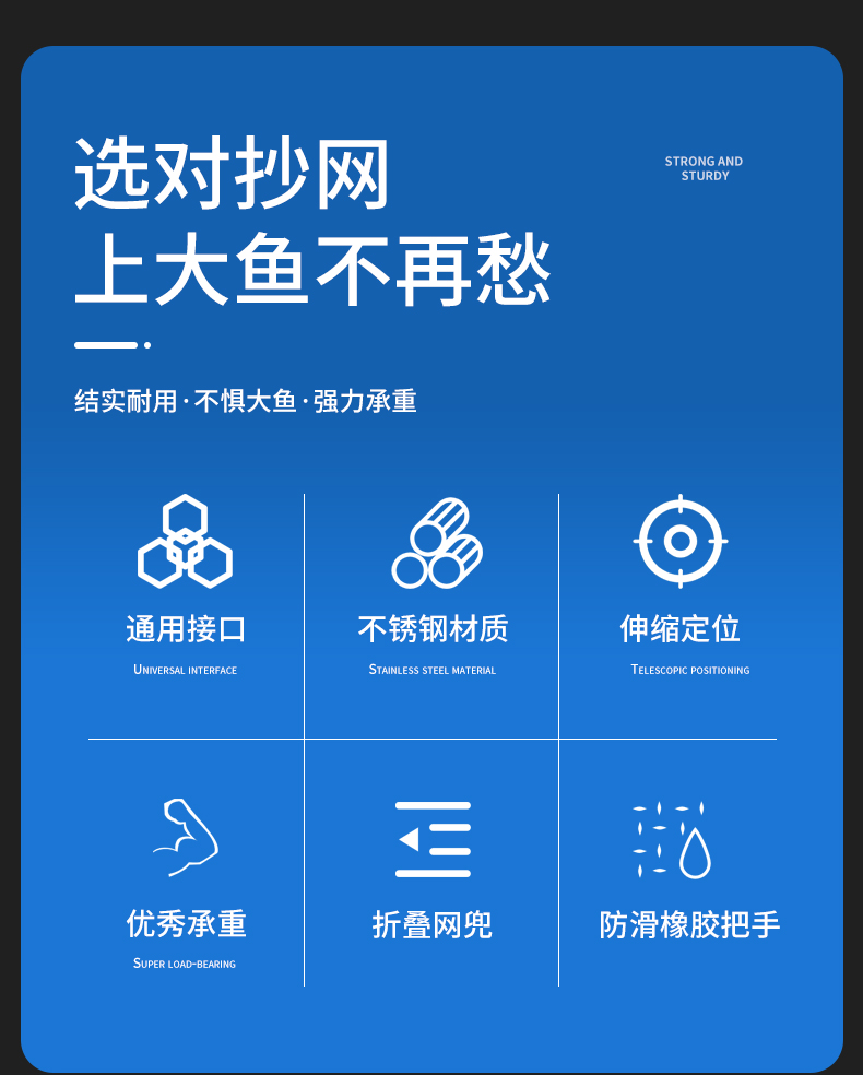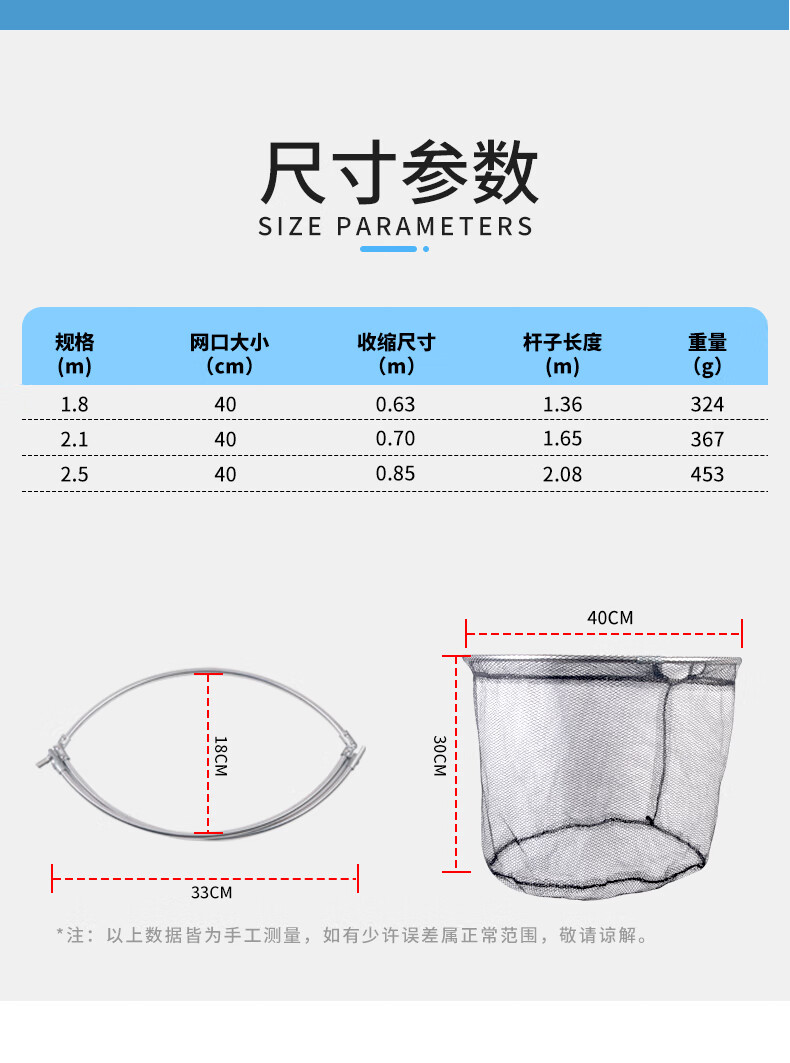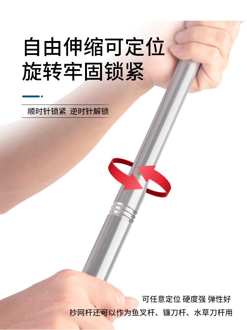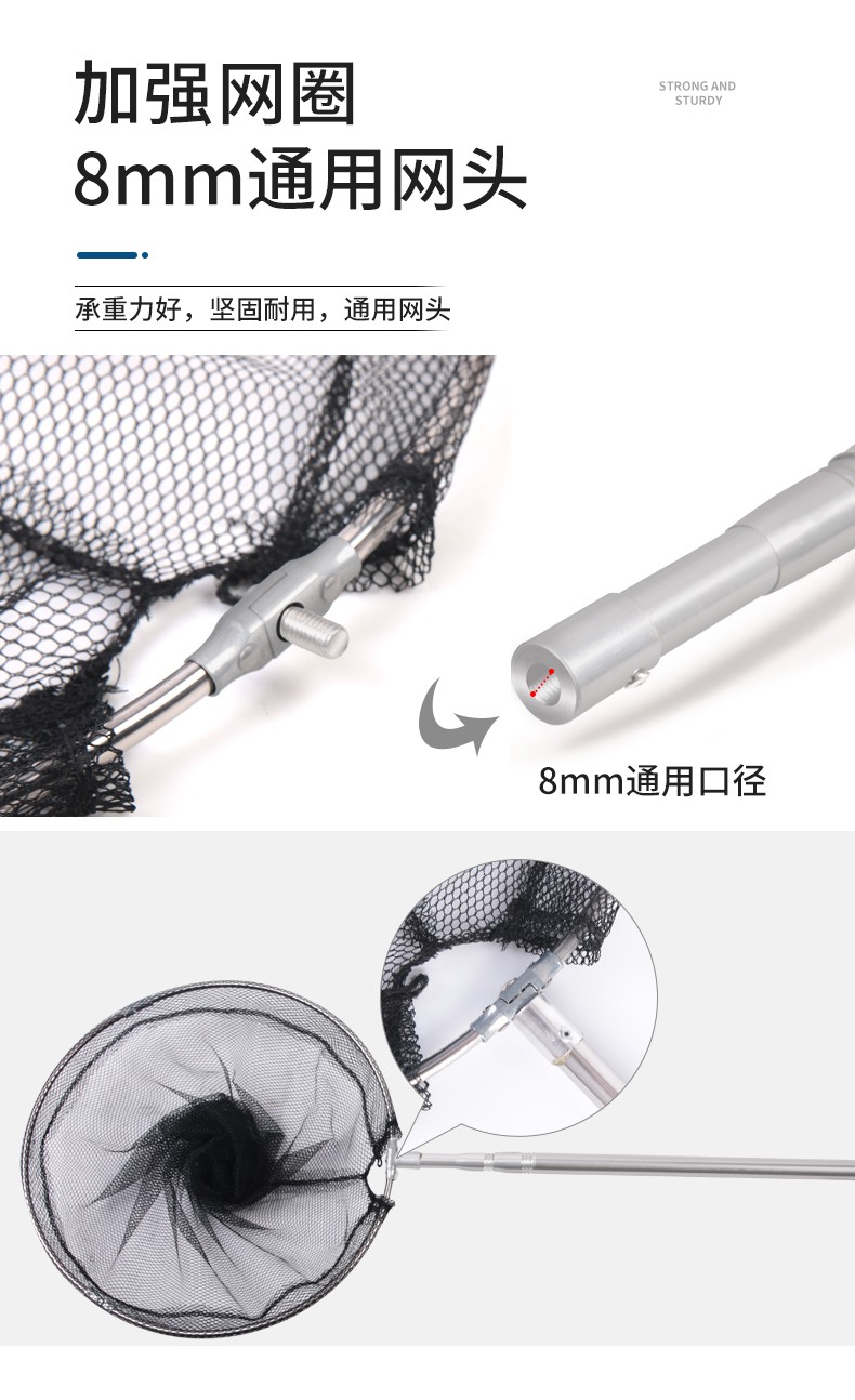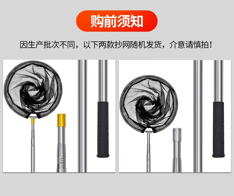 Baijie (BJ) fishing net, thickened stainless steel, retractable fishing net, fishing net pocket, rubberized net head set, fishing gear supplies, 1.7m net pole + 40cm folding net head