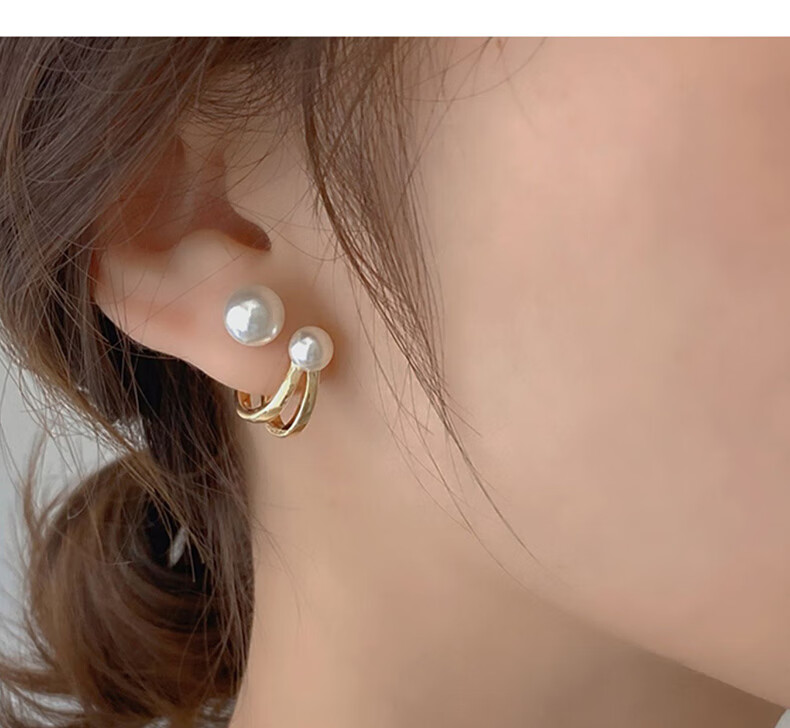 YaoYiZun Pearl Earrings Women's Two-Wear Pure Silver Earrings Birthday Gift High-Quality Earrings Valentine's Day Gift Double C Pearl Earrings