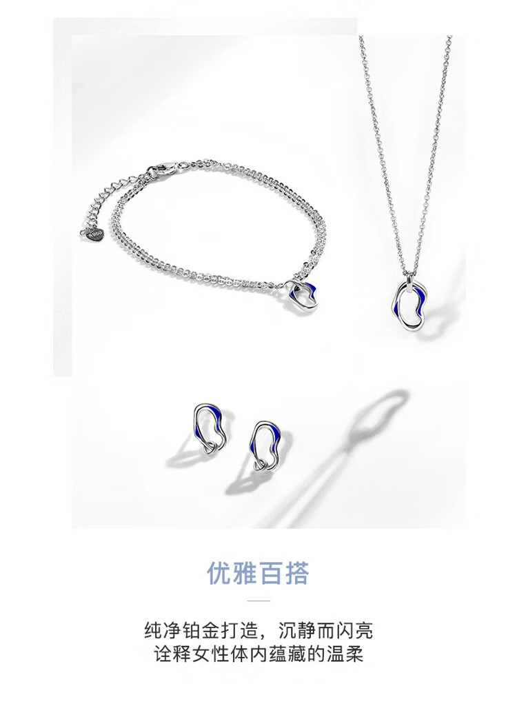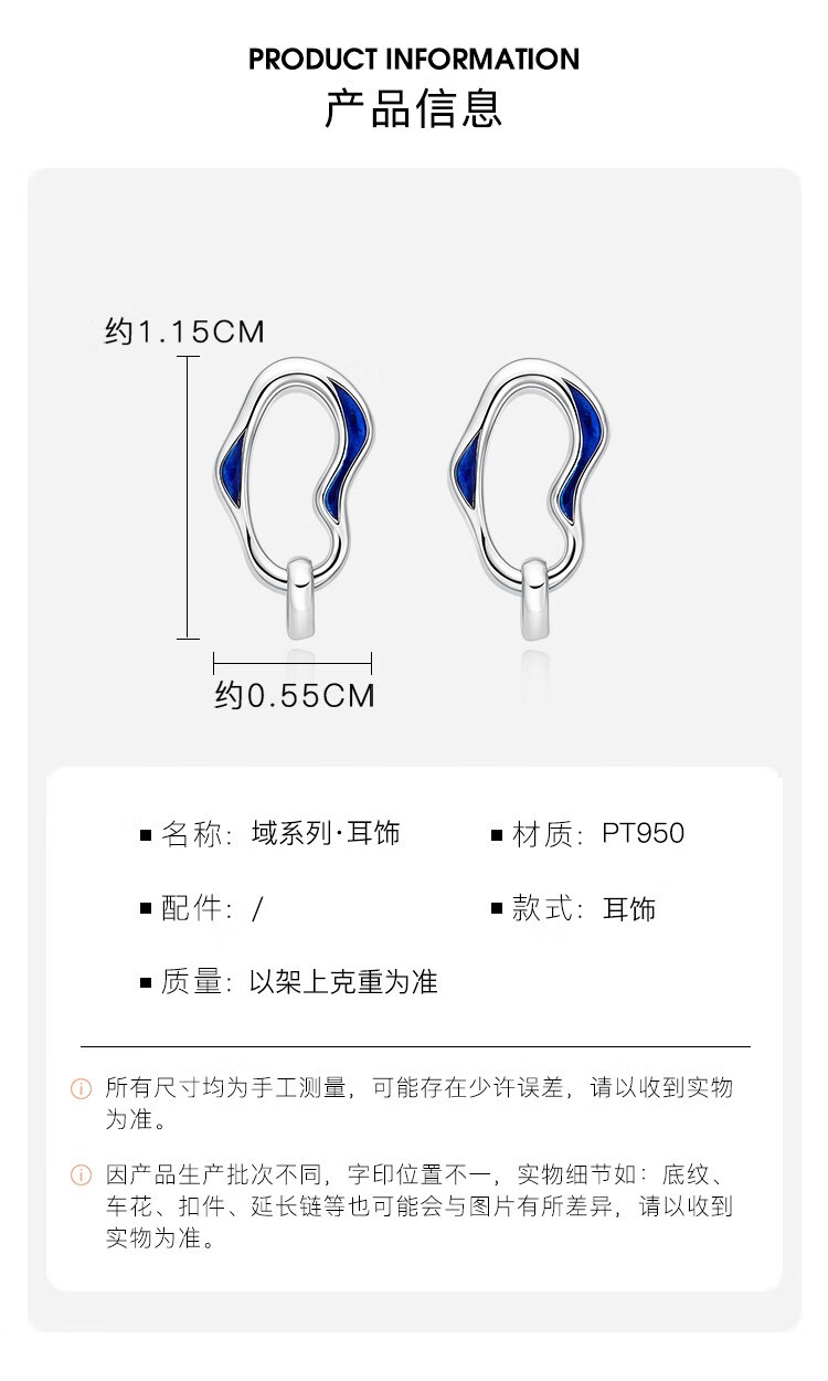 Ming brand jewelry platinum earrings Pt950 platinum geometric curve earrings stud earrings for women BFH0058 domain series earrings about 1.37 grams