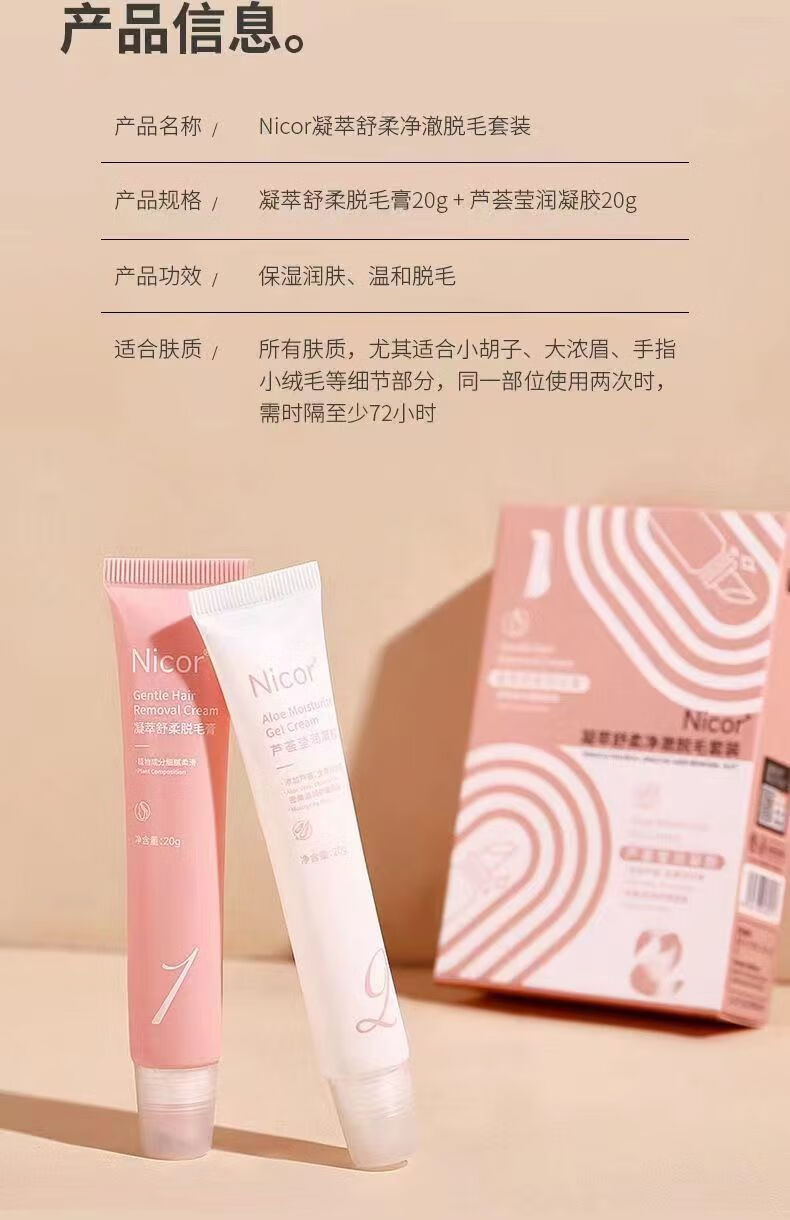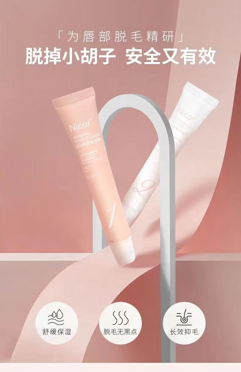 NICOR lip hair removal cream for men and women, gentle lip hair removal for face, gentle mustache removal tool for face, painless hair removal set 20g*2