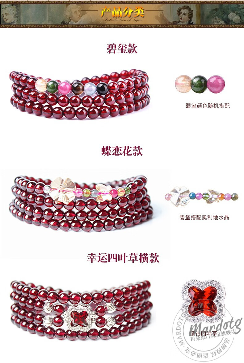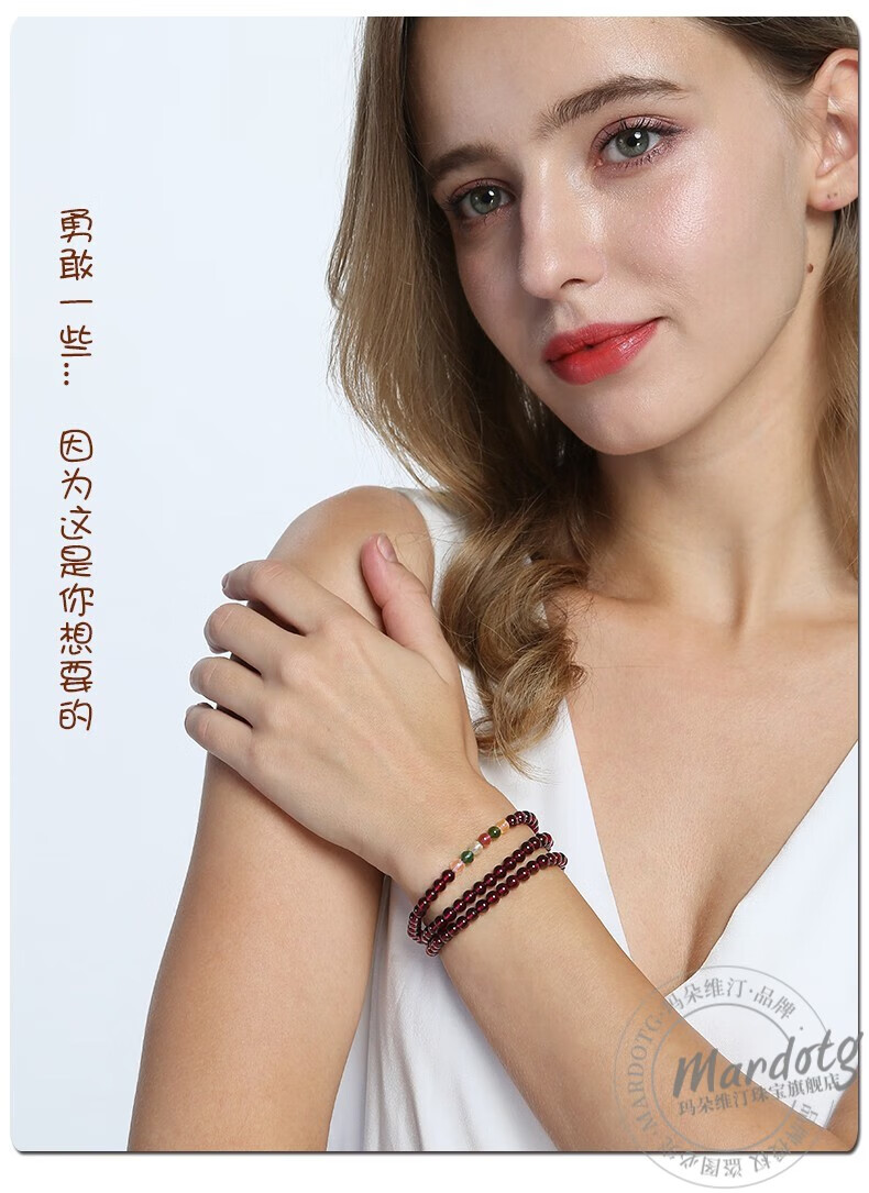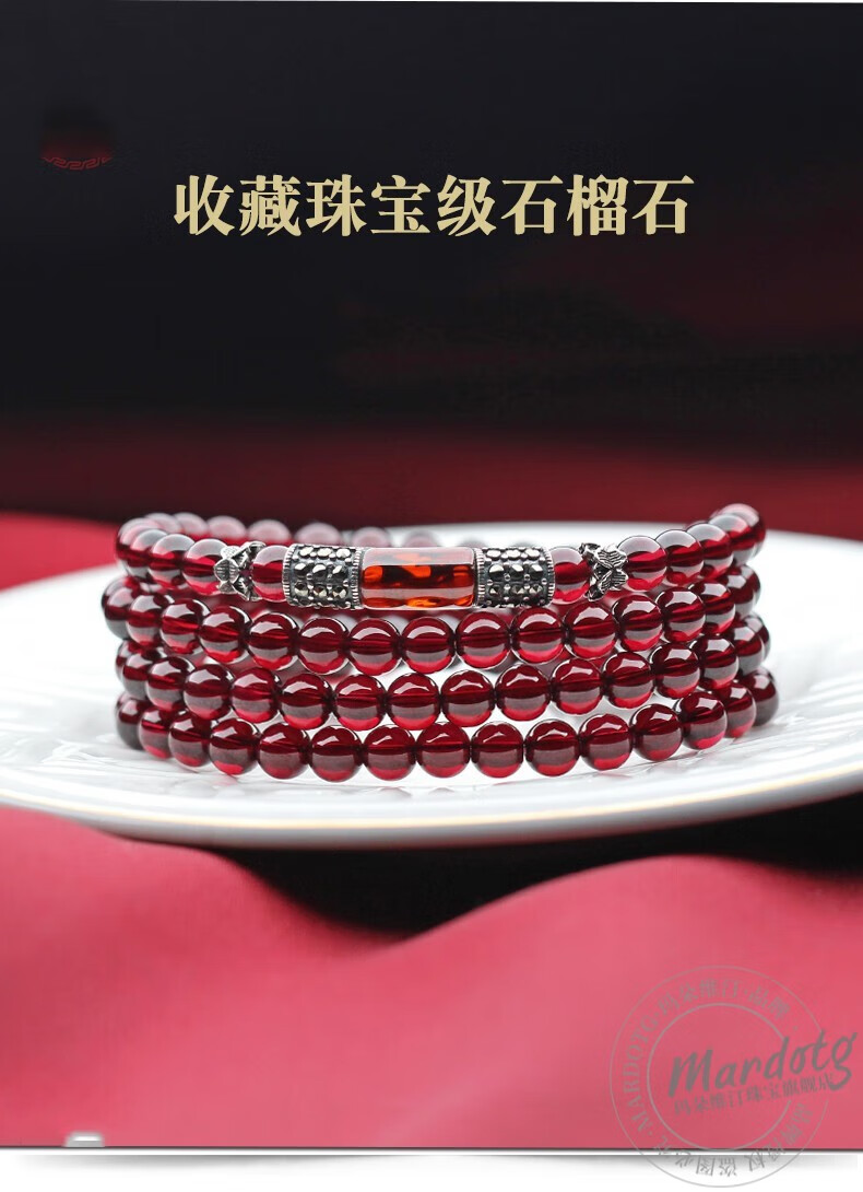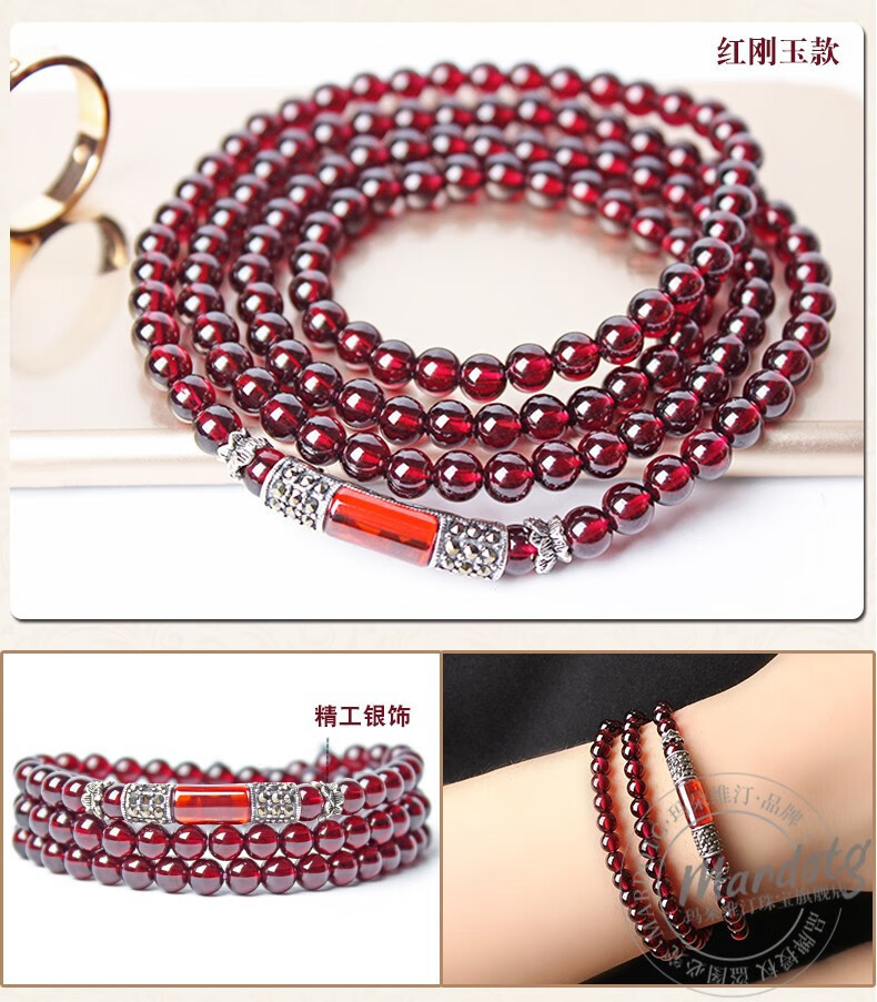 MARDOTG Burgundy Garnet Bracelet Women's Three Circle Crystal Multi- Circle Bracelet Jewelry Gift Girlfriend Collectible Red Corundum Model 3 Circles 5.5mm