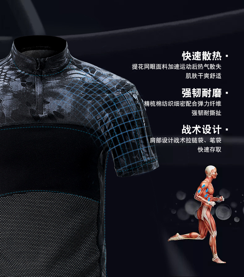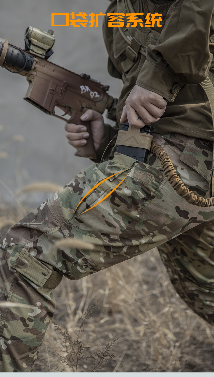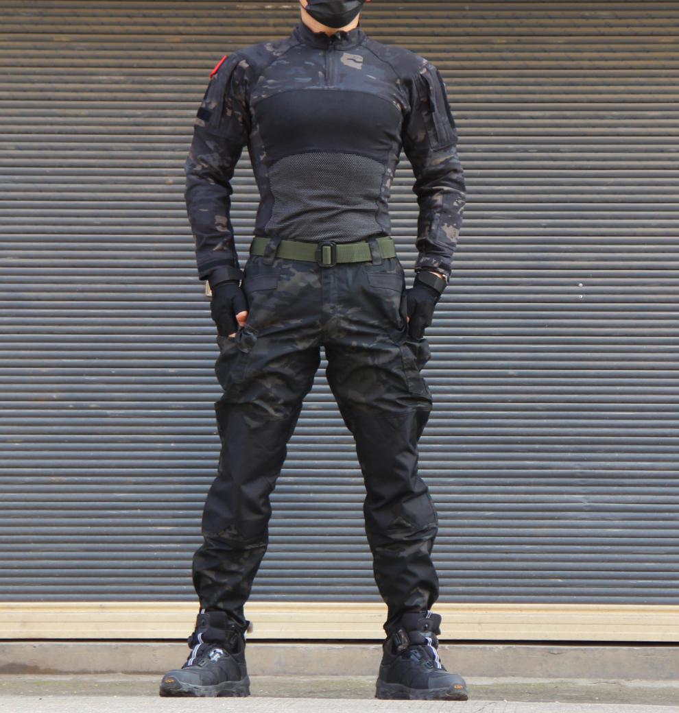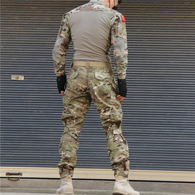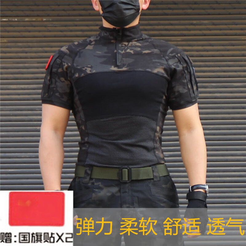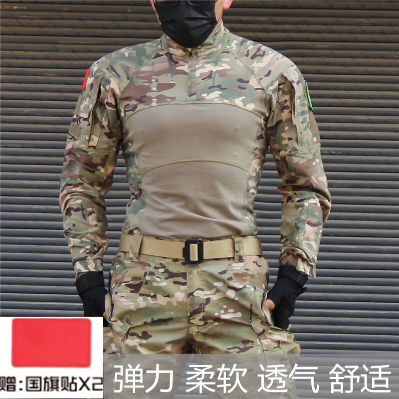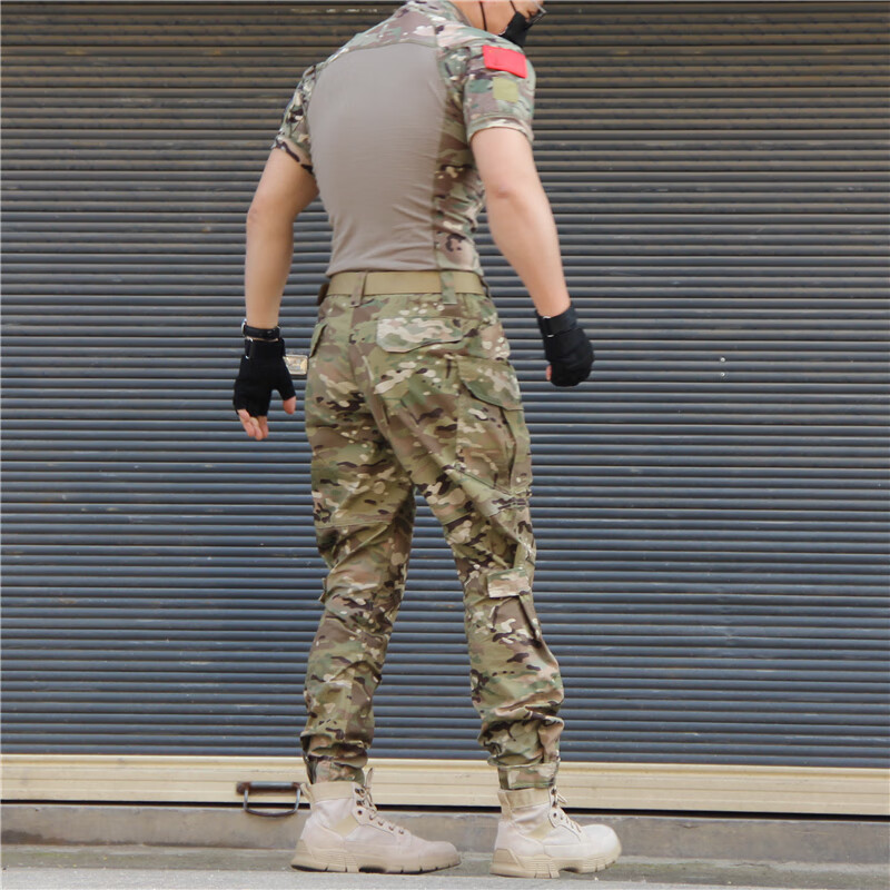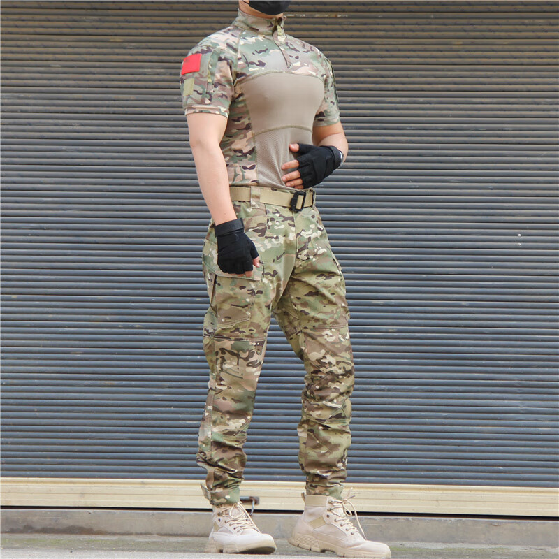 Ludun camouflage suit men's field suit spring and autumn outdoor camouflage T-shirt stretch tactical frog suit CS combat instructor uniform CP color (short sleeves + pants) including hat/armband M