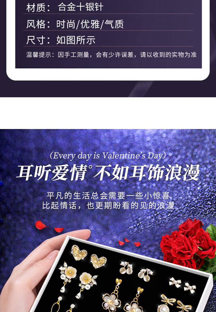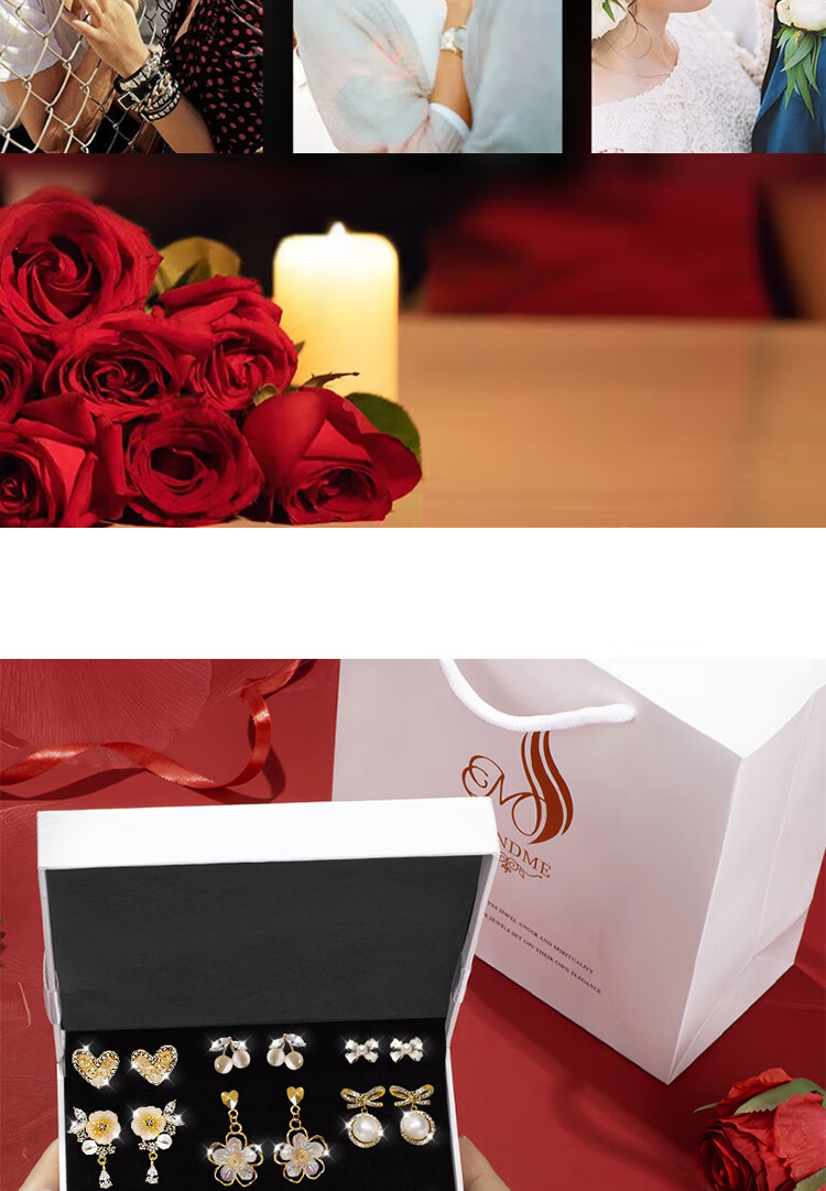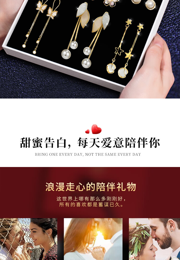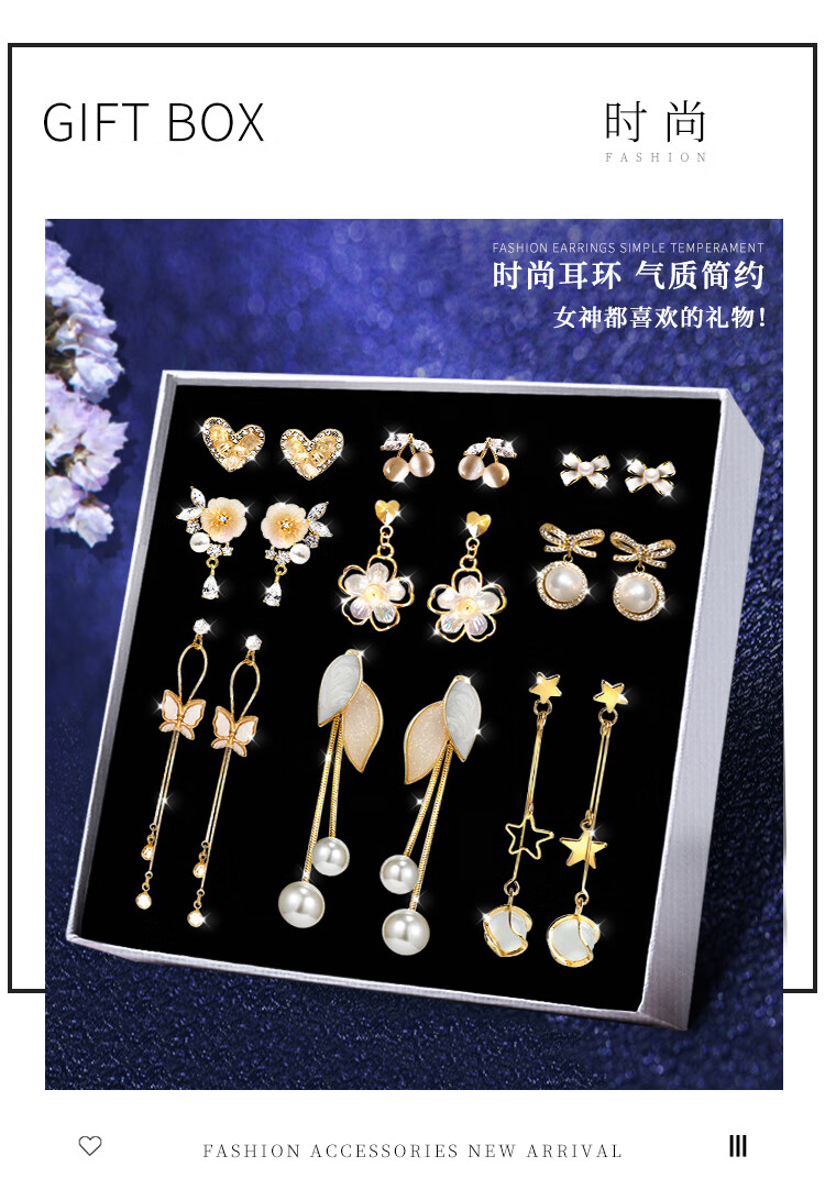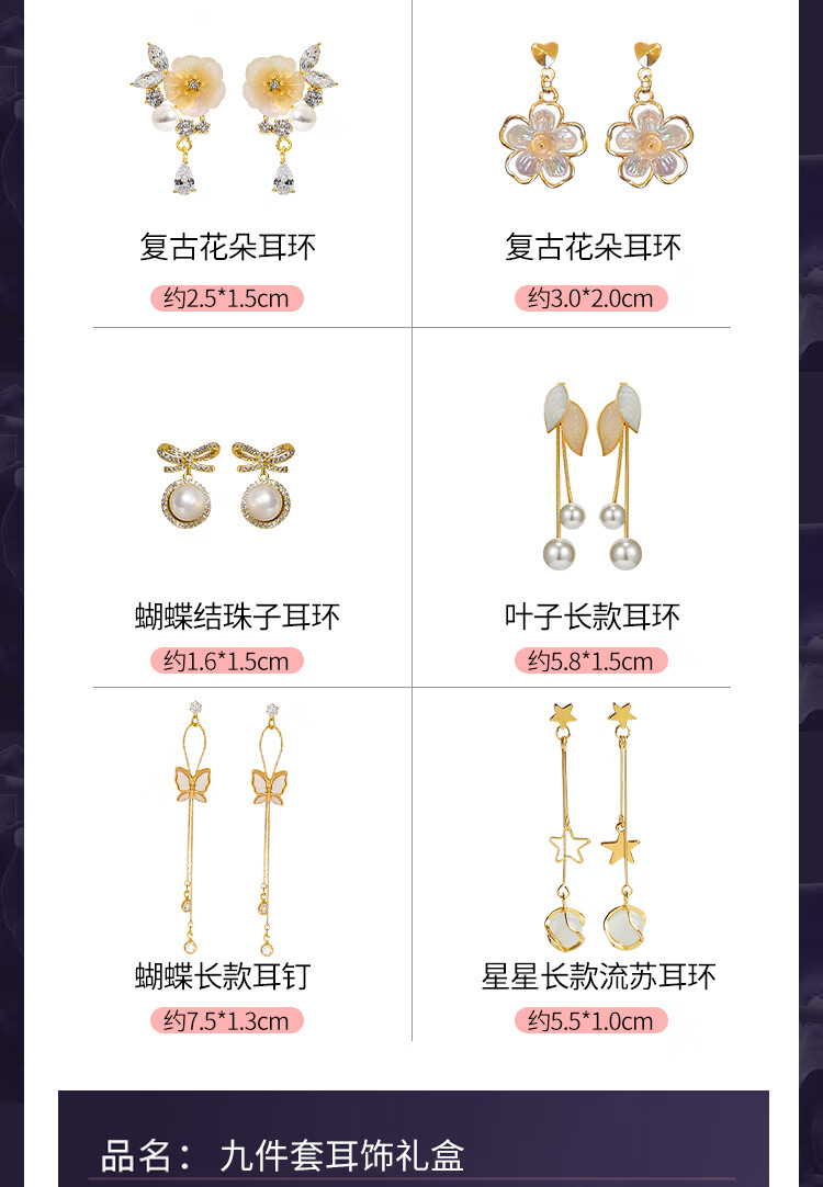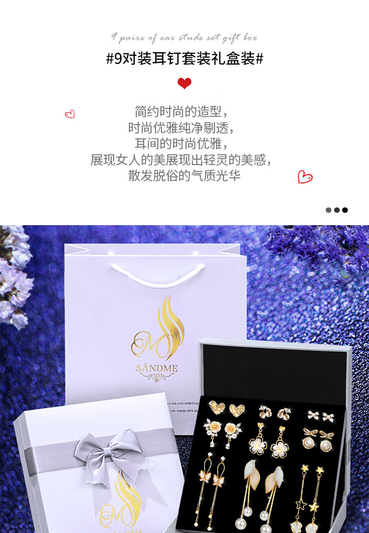 SENDME birthday gift for my wife S925 silver needle earrings, earrings, women's week earrings, fashion gift box, 9 pairs of earrings set, gift box