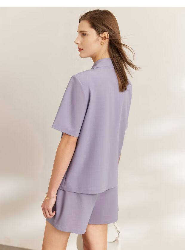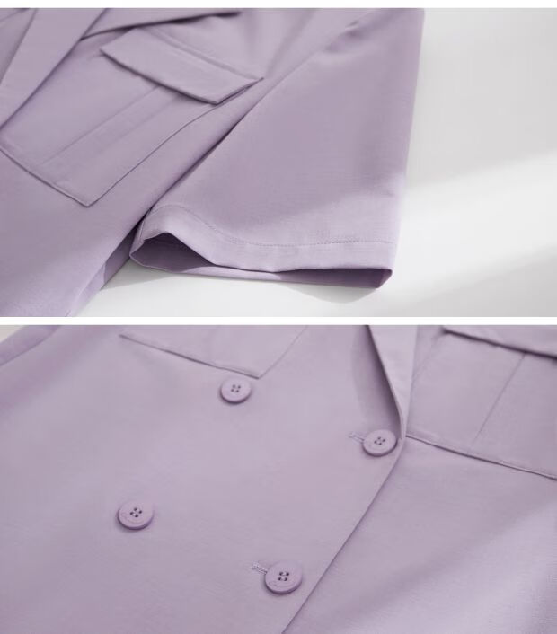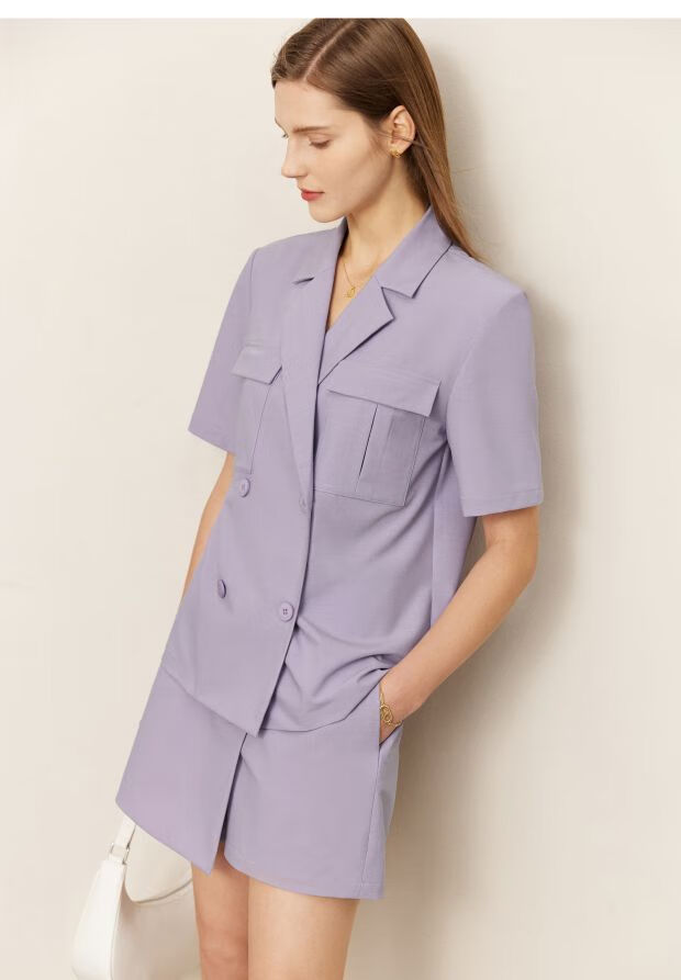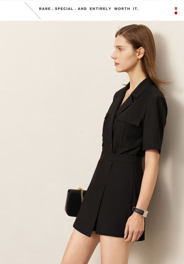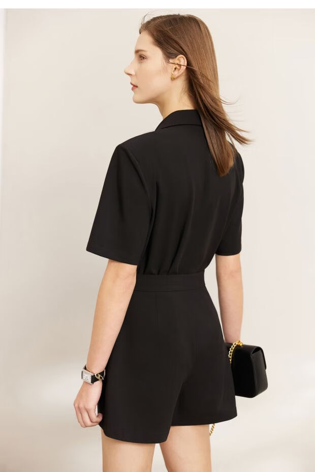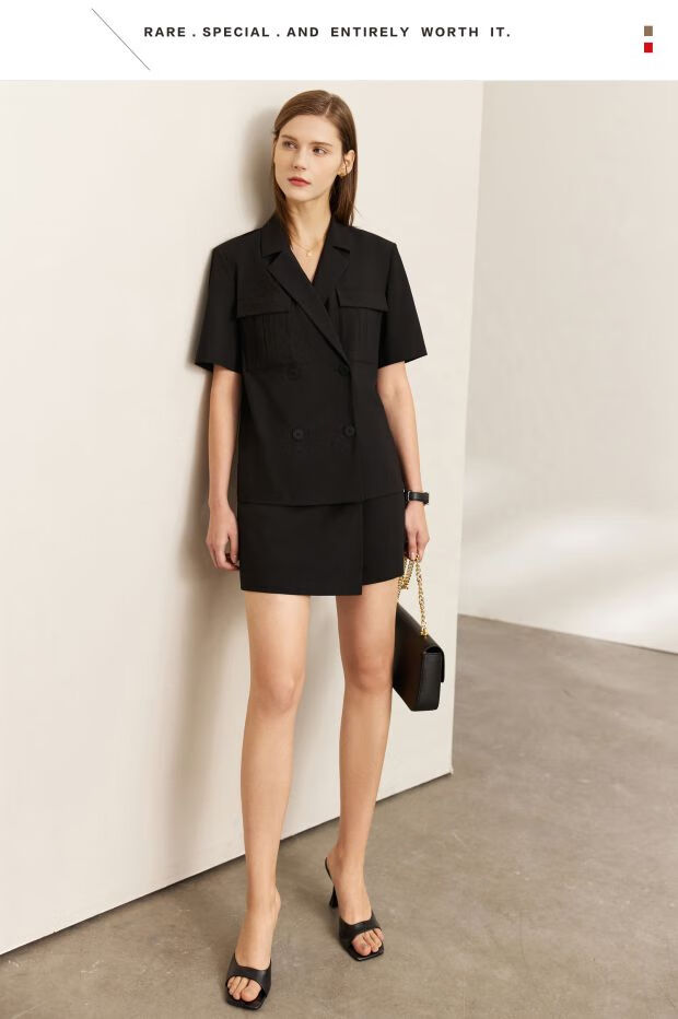 AMII Women's 2025 Summer New Complete Matching Suit Women's Fashion Double-breasted Casual Small Two Black (Shirt) S 155/80A