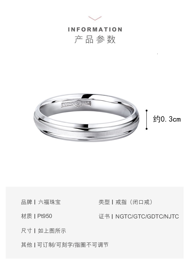 Lukfook Jewelry Platinum 950 Platinum Ring Couple Wedding Ring Single Closed Ring Gift Price L04TBPR0007 No. 14-3.63g (including labor cost 334 yuan) women's ring
