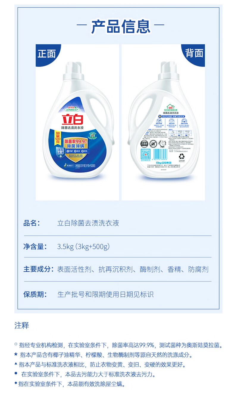 Liby sterilizing and stain-removing laundry detergent 3.5kg, mite-removing laundry detergent, dormitory, household, household equipment, powerful stain-removing wholesale, sterilizing and stain-removing laundry detergent 3.5k*2 bottles