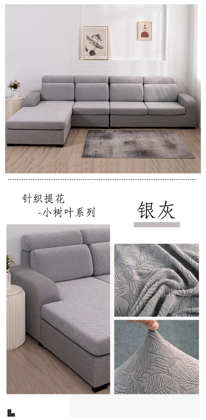MENyAZI Thickened Elastic Sofa Cushion Cover Four Seasons Universal Seat Cushion Cover Combination Sofa Cover Sofa Fit Protective Cover QT Sunflower-Silver Gray Small Sit Applicable Width 50-65cm*Length 50-65cm