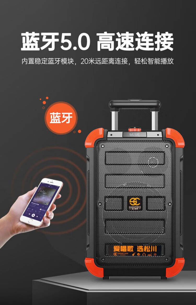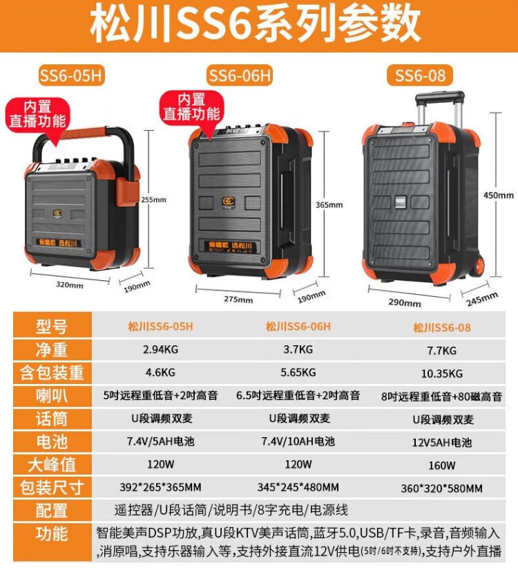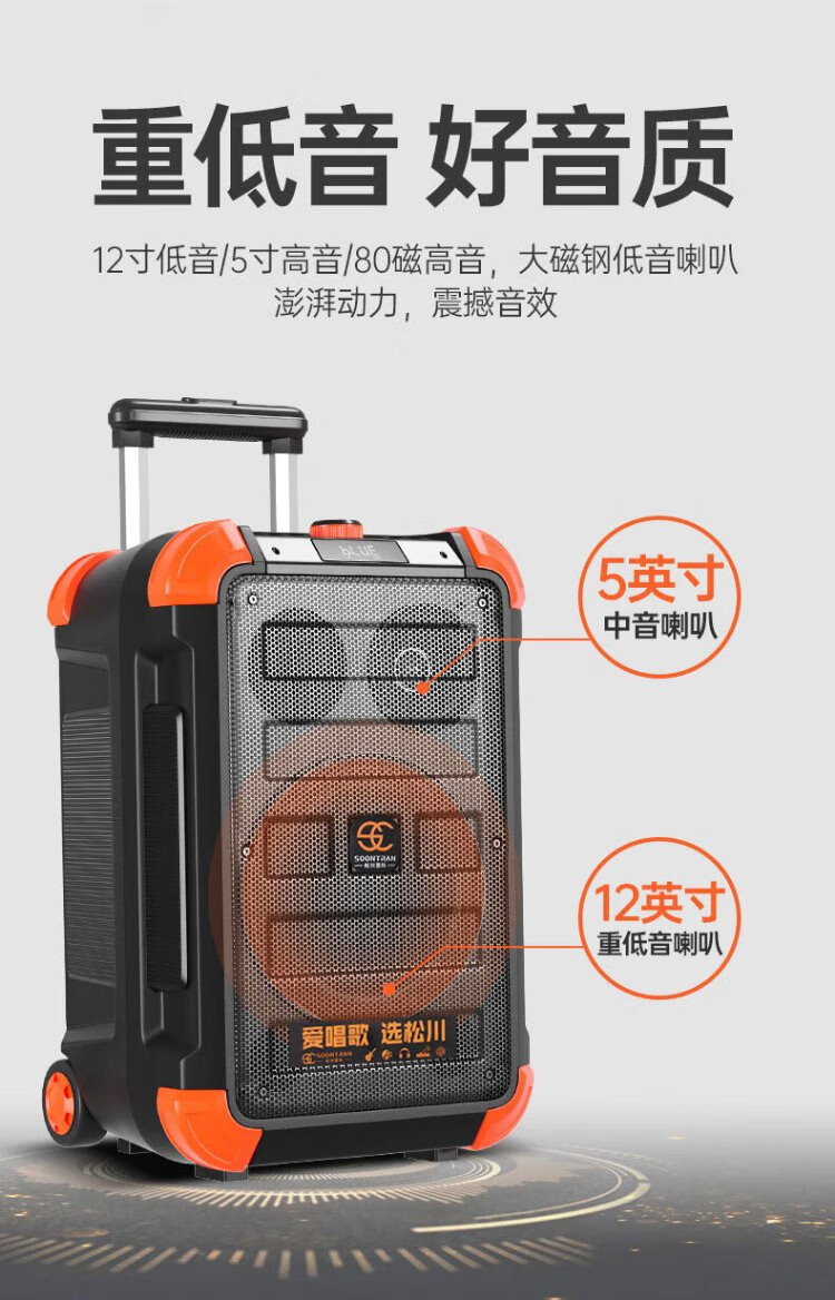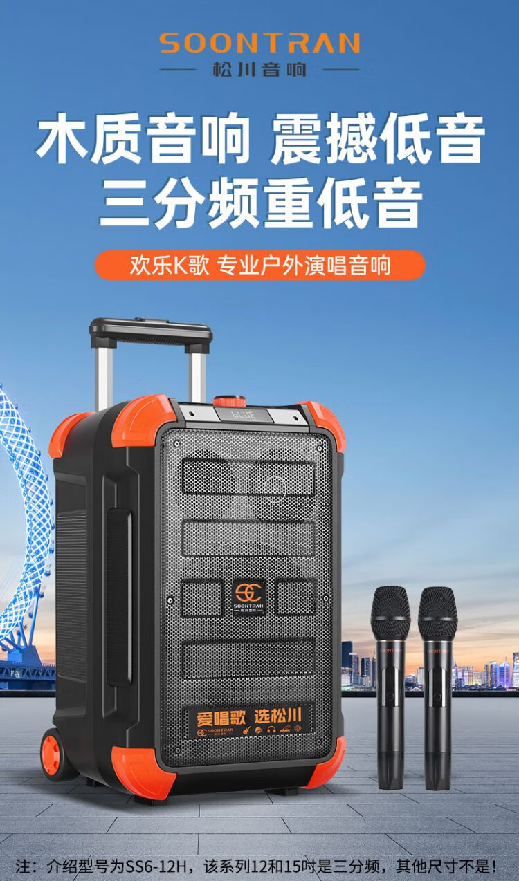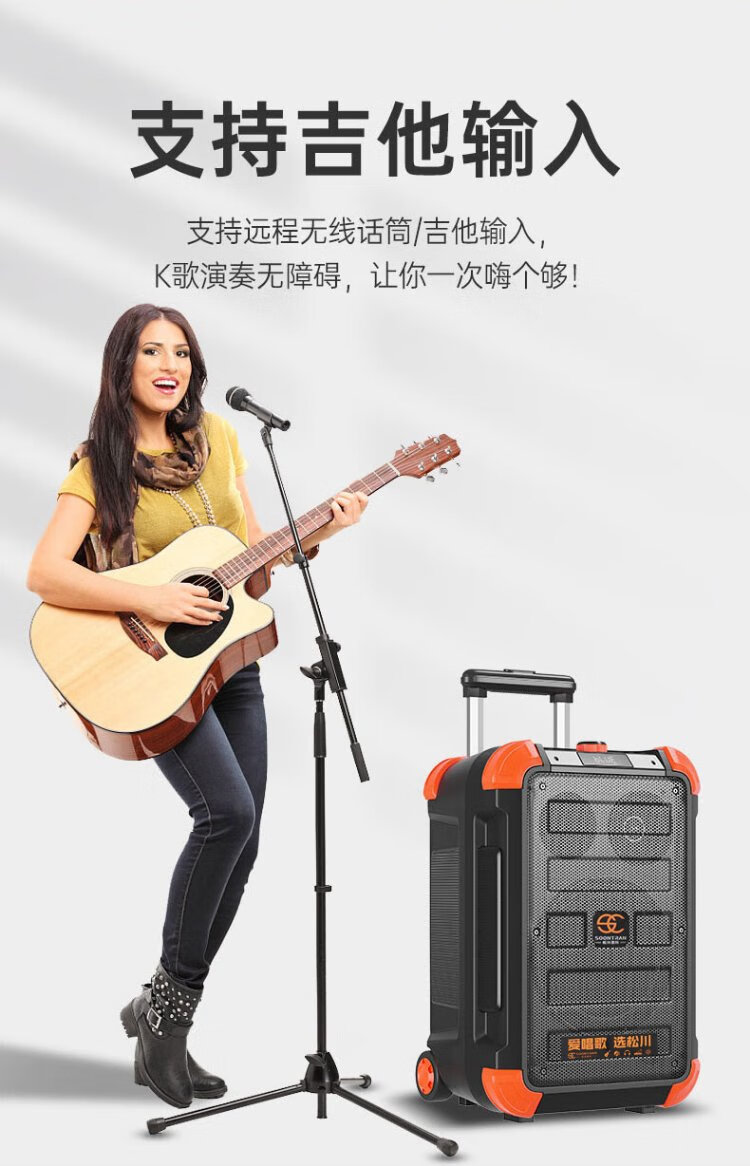Songchuan International (SOONTRAN) SS6 outdoor trolley square dance speaker karaoke stage Bluetooth instrument guitar strap audio high-power subwoofer SS6-5-inch portable version + 2 Bel Canto FM microphones