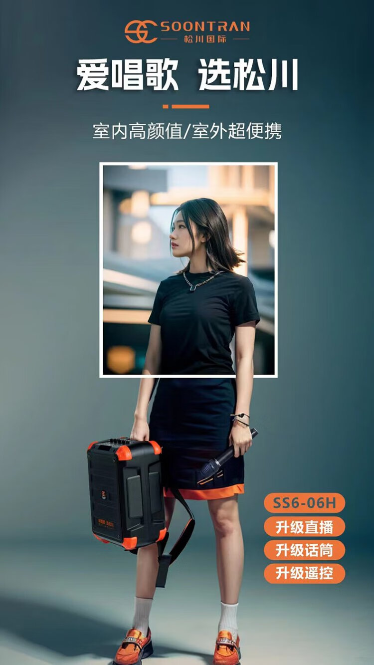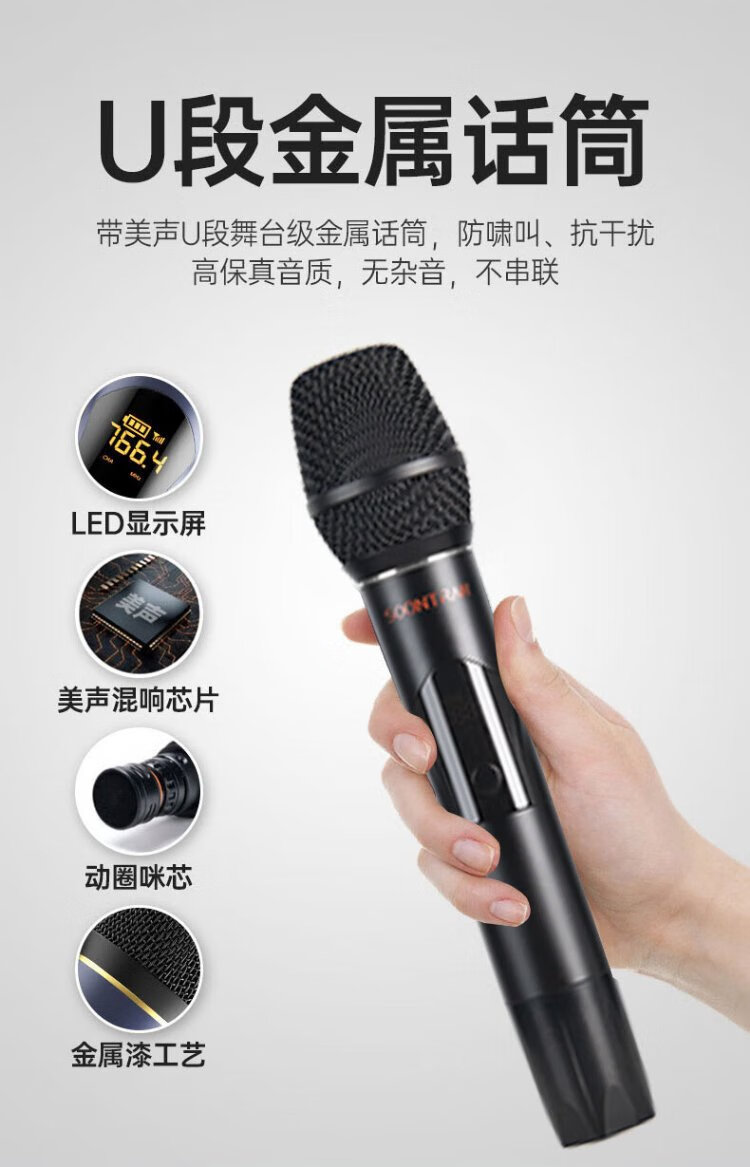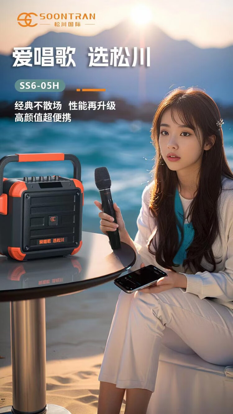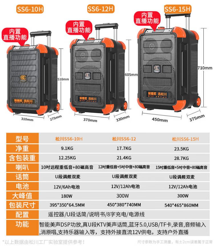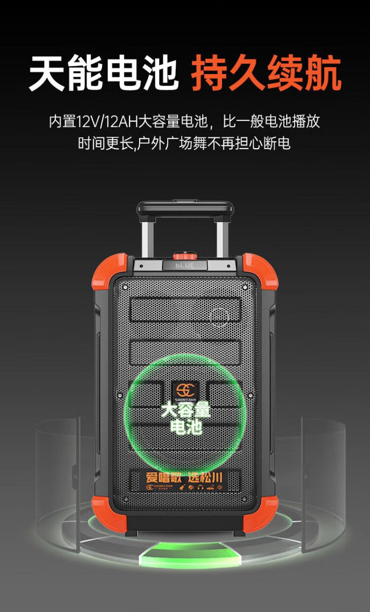 Songchuan International (SOONTRAN) SS6 outdoor trolley square dance speaker karaoke stage Bluetooth instrument guitar strap audio high-power subwoofer SS6-5-inch portable version + 2 Bel Canto FM microphones