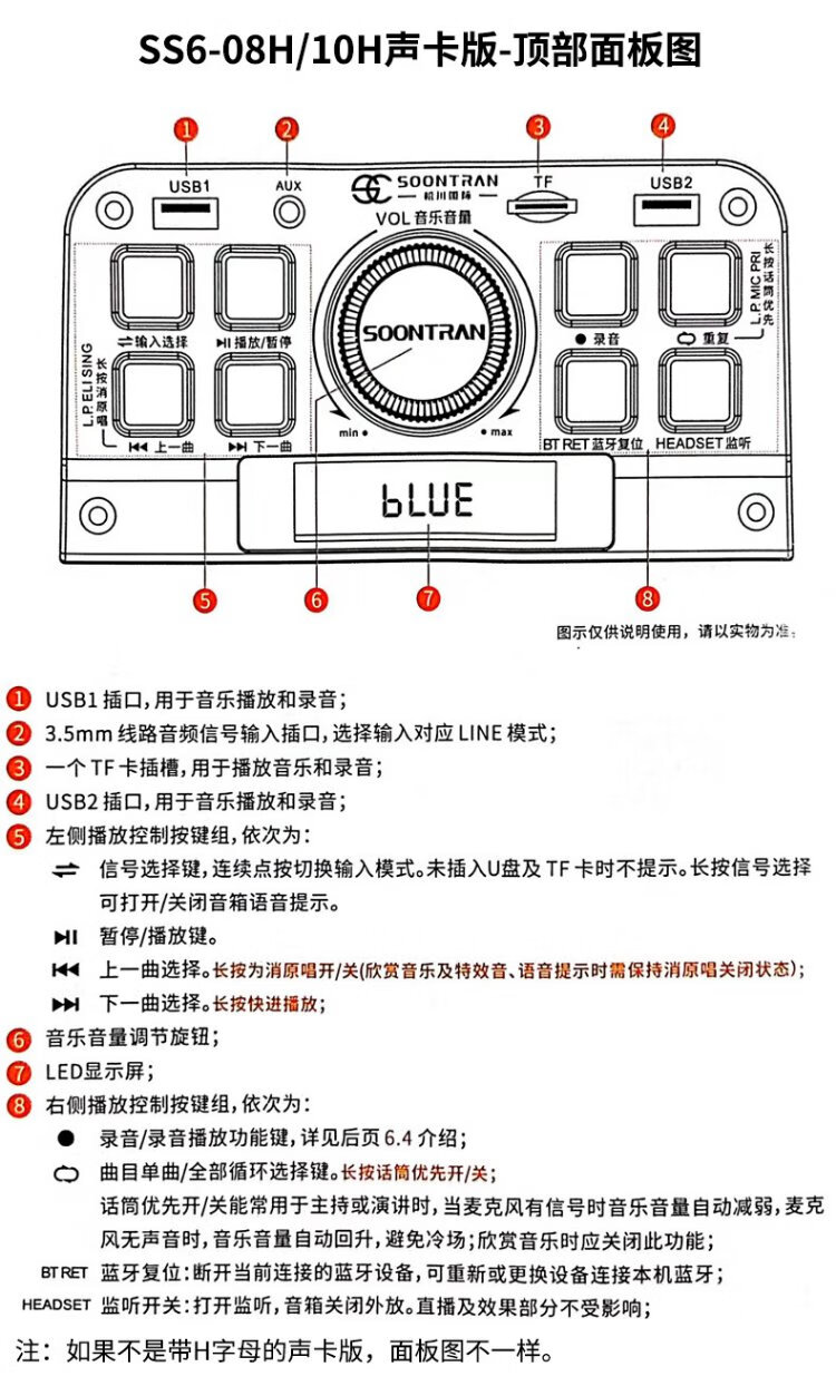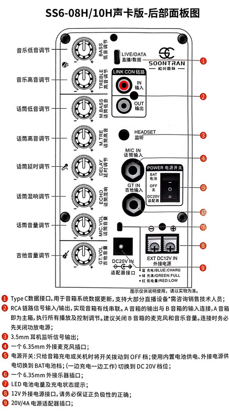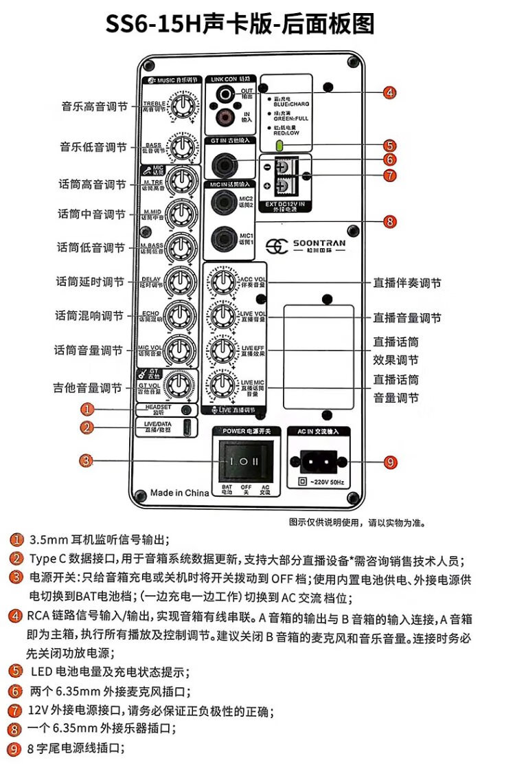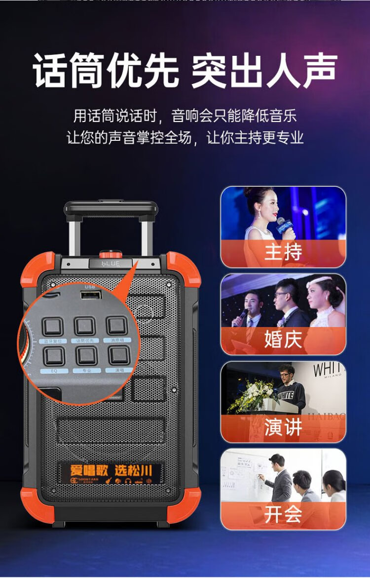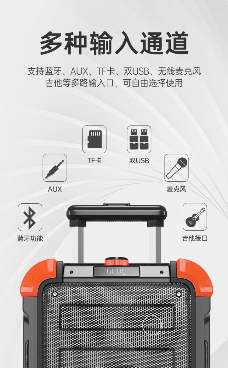 Songchuan International (SOONTRAN) SS6 outdoor trolley square dance speaker karaoke stage Bluetooth instrument guitar strap audio high-power subwoofer SS6-5-inch portable version + 2 Bel Canto FM microphones