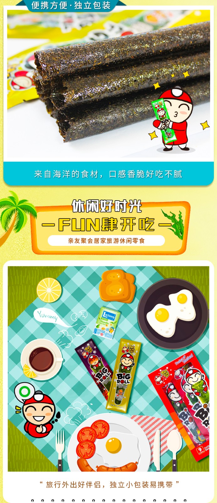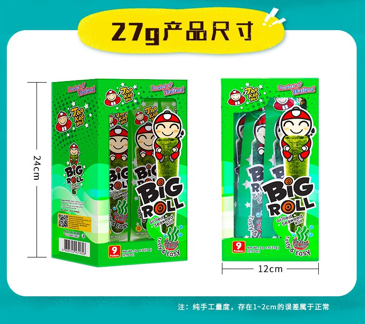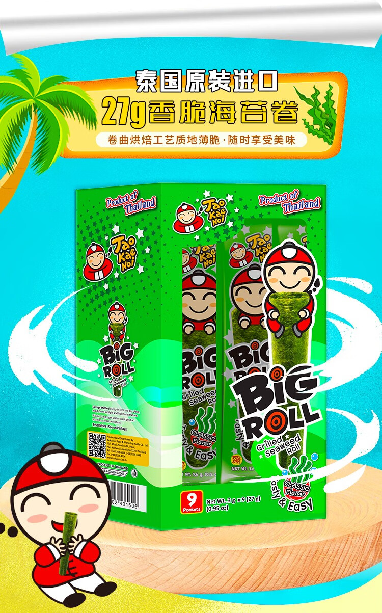 Boss Zai Thailand imported snacks Boss Zai seaweed roll box children's roasted crispy seaweed ready to eat 1 box total 9 pieces original flavor X1 box