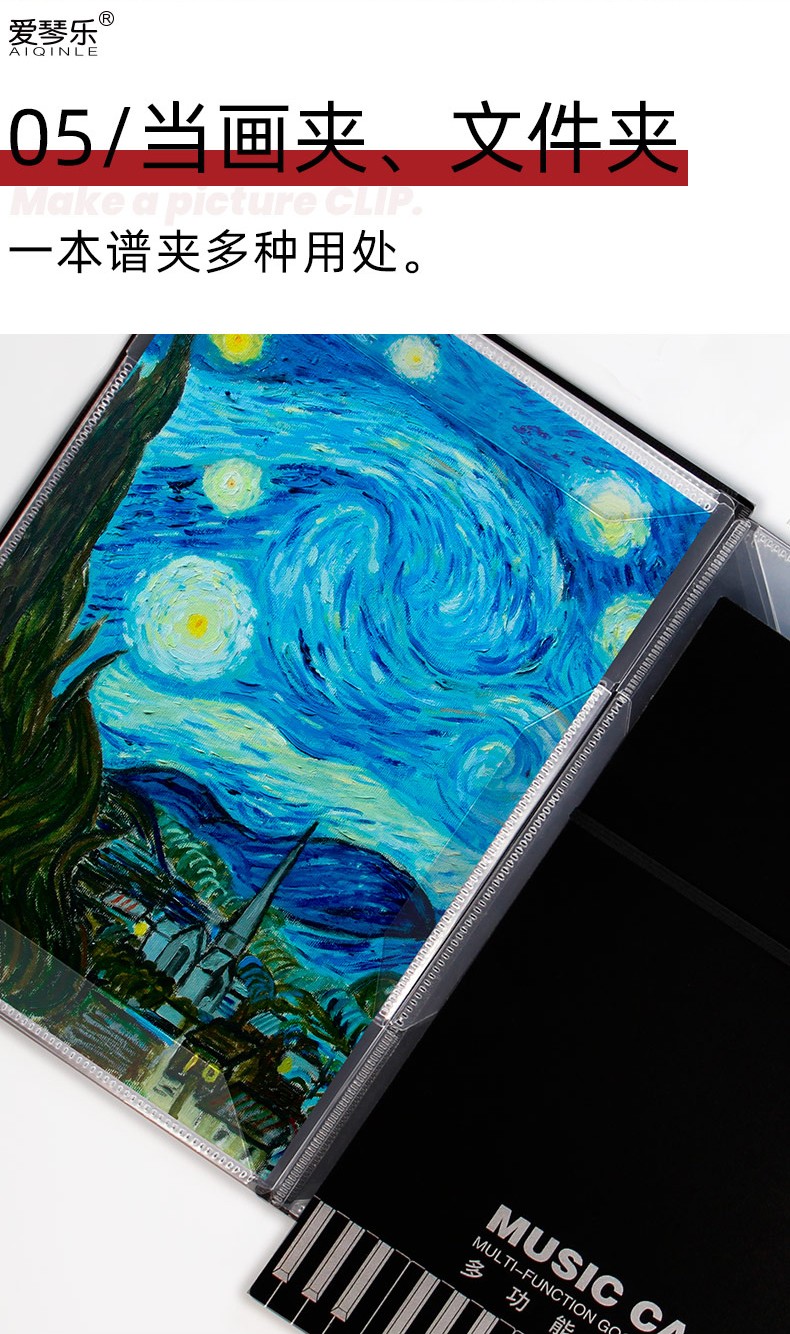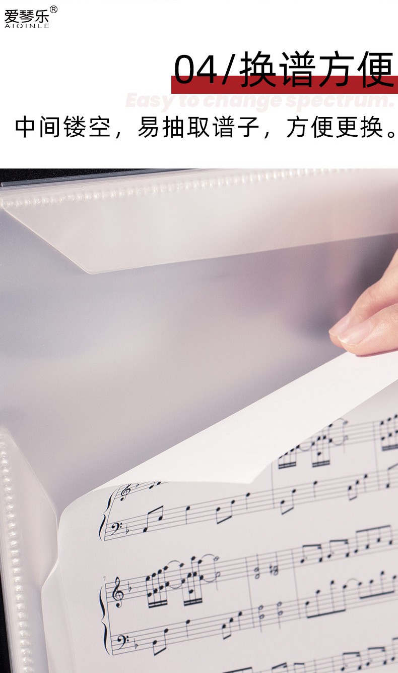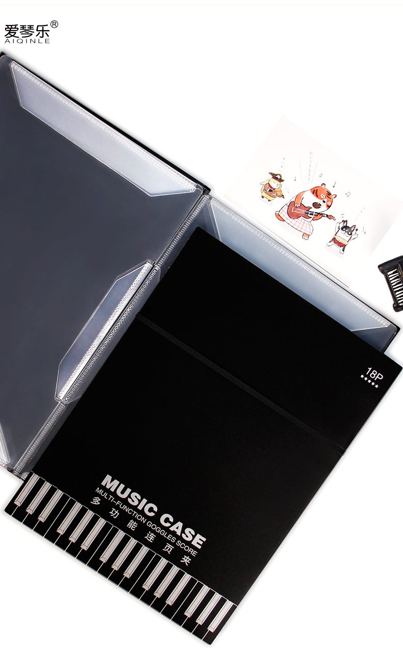 SOLO8 continuous page non-reflective piano score clip can be modified music score clip loose-leaf piano score clip book music score clip music score book A4 can expand eight pages of music score clip, front and back can insert 18 pieces of music score, fashionable black