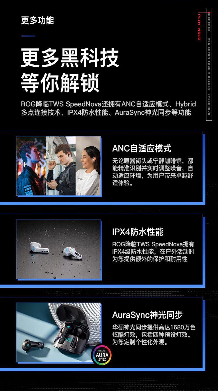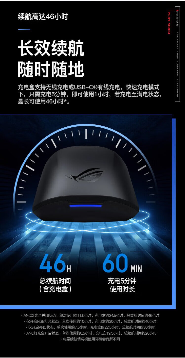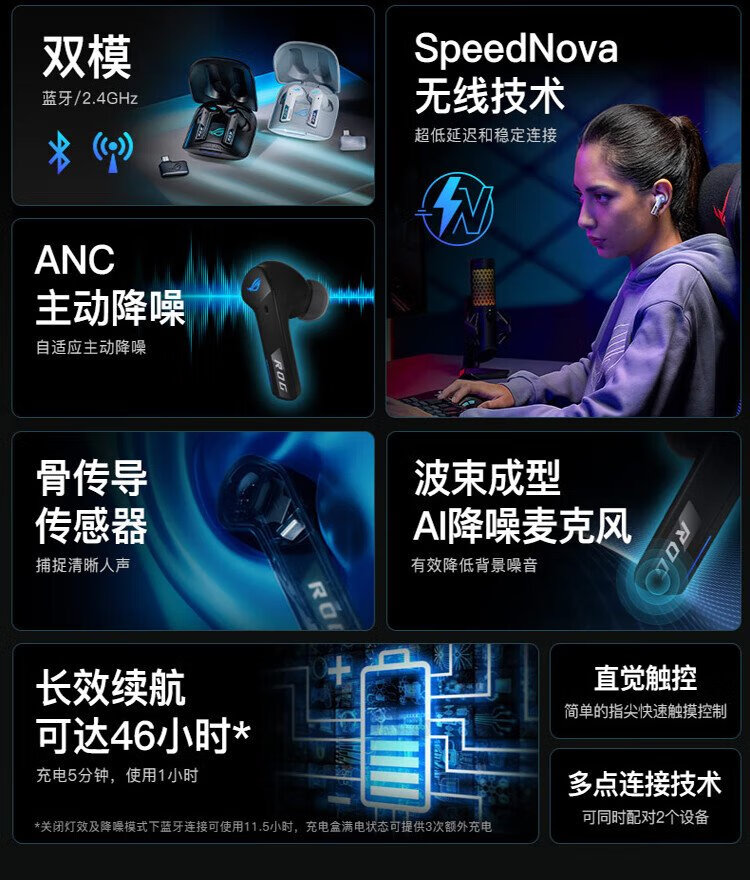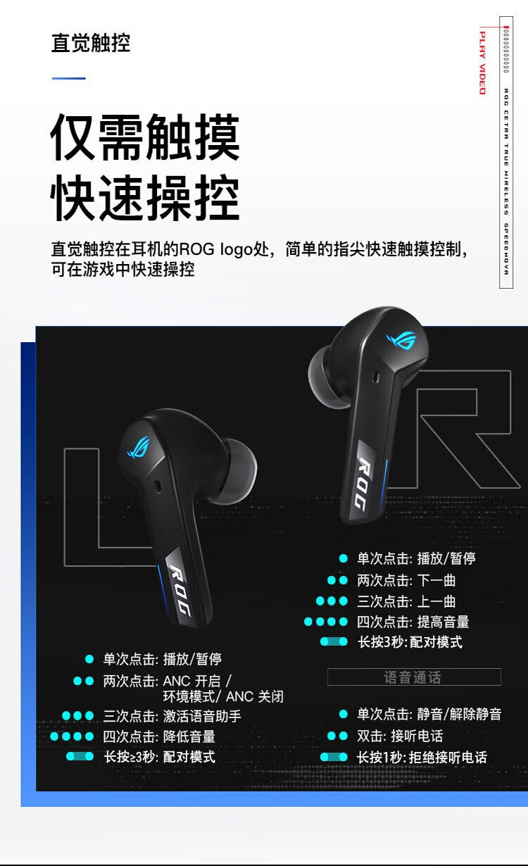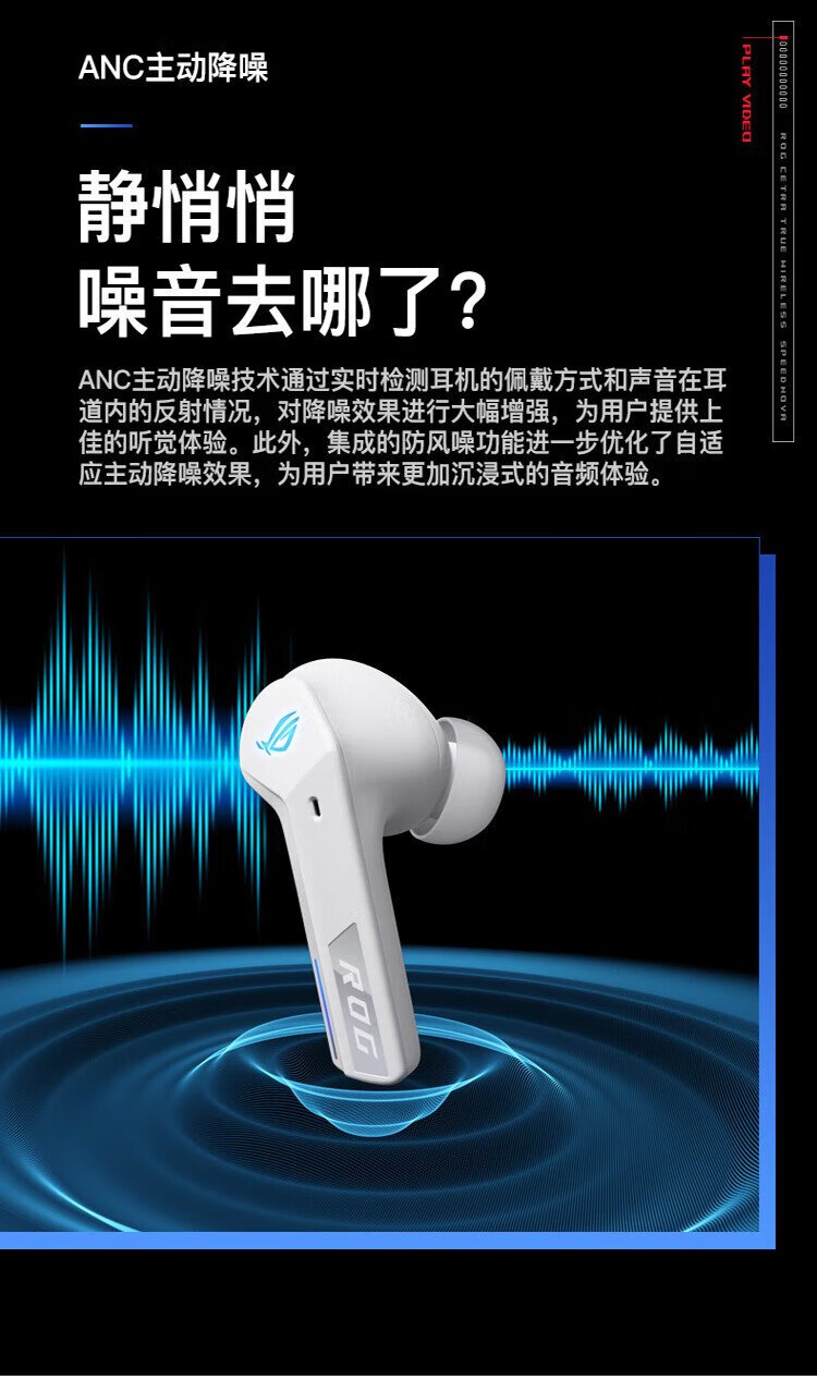 ROG Republic of Gamers Advent 2 In-ear Wired Gaming Headset Headset Advent TWS True Wireless Dual Mode Bluetooth Headset Black Active Noise Cancellation The gift is a ROG T-shirt