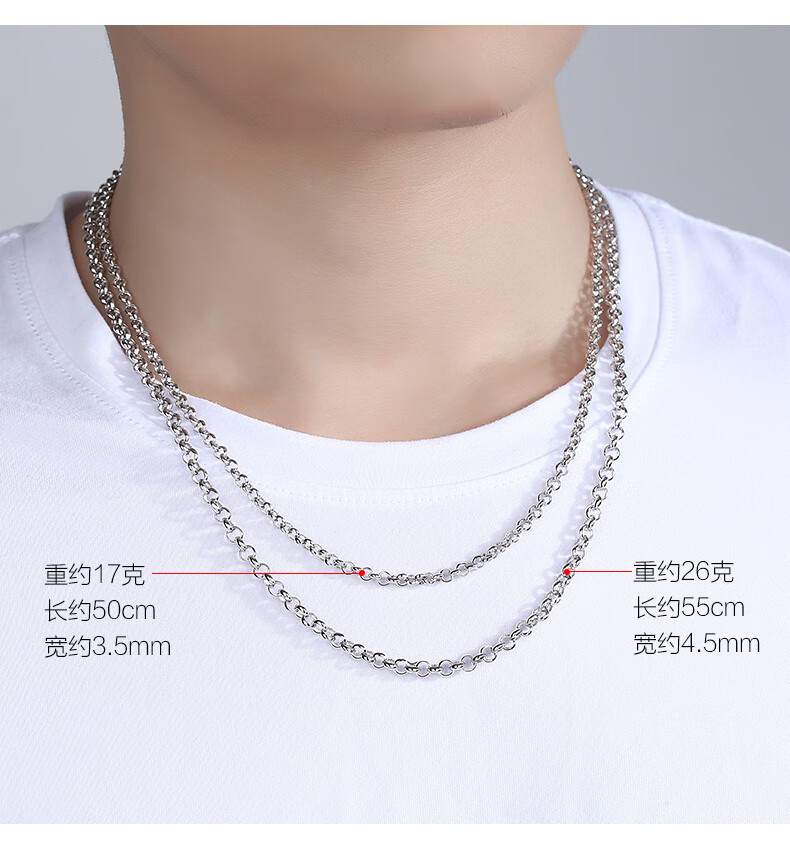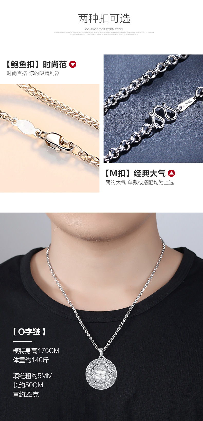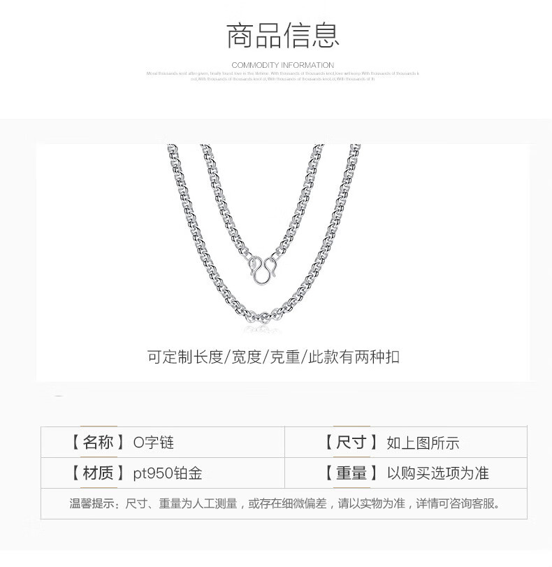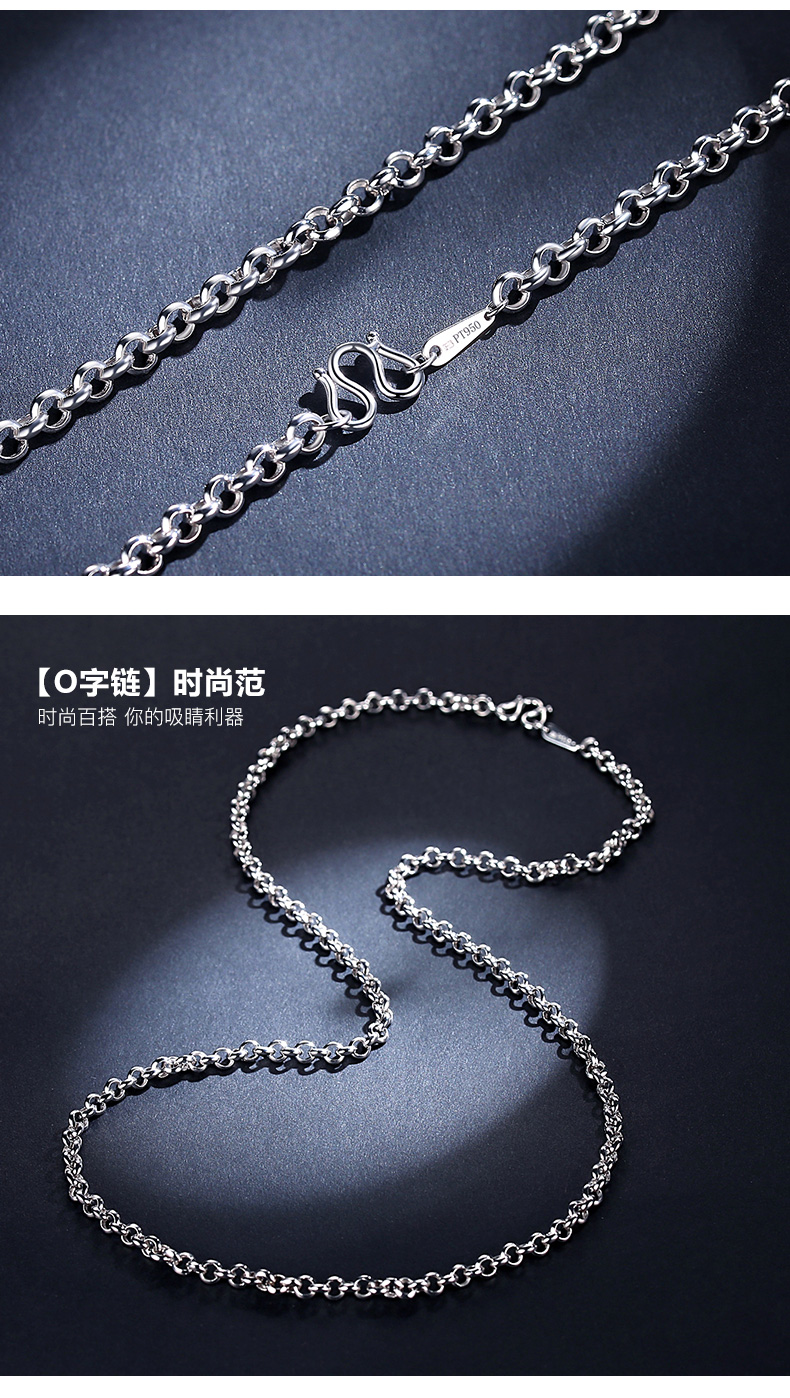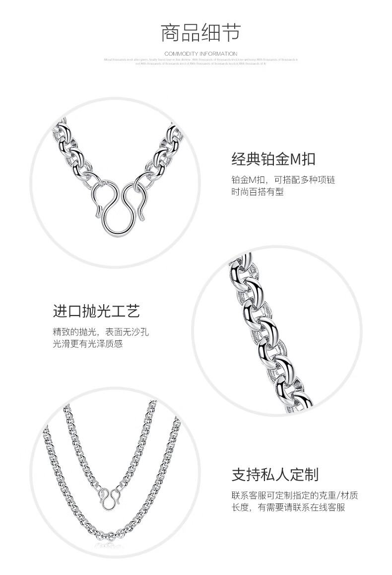 Junhong platinum necklace men's clavicle chain platinum necklace pt950 thick chain men's and women's O-shaped chain pendant length 51cm thick 3.3mm weight 19.1 0.1g