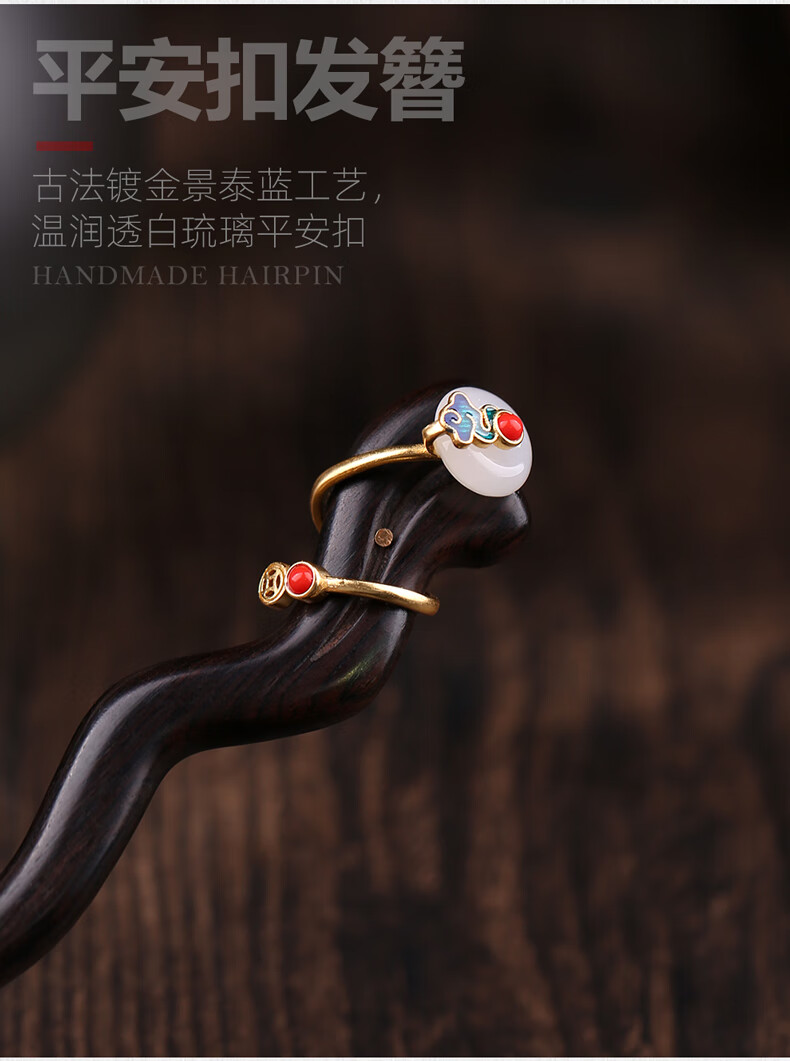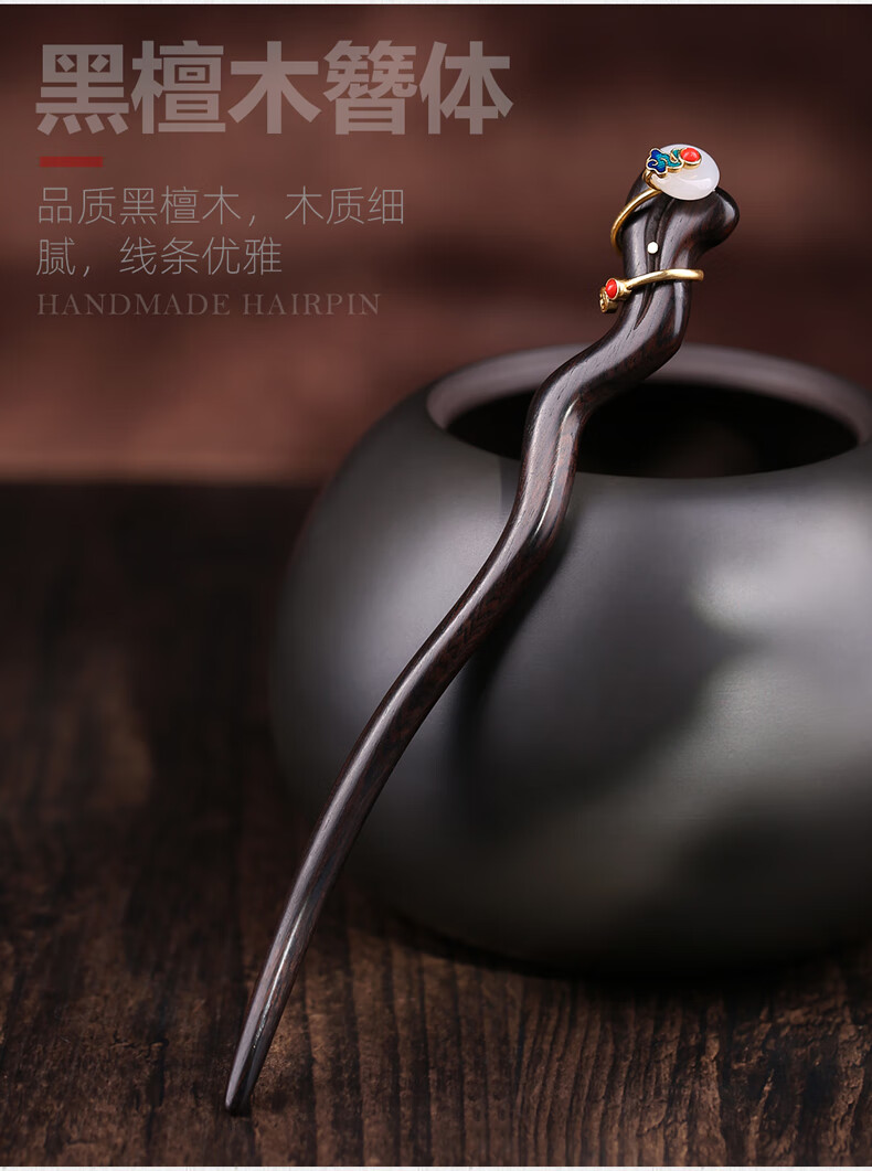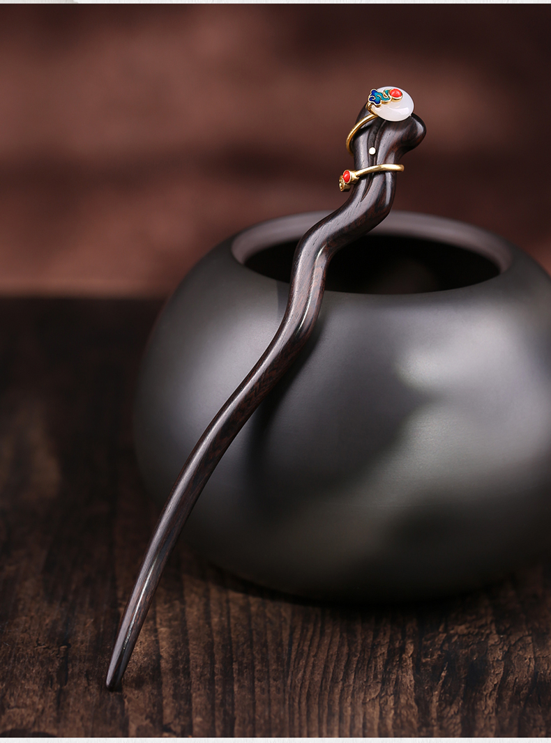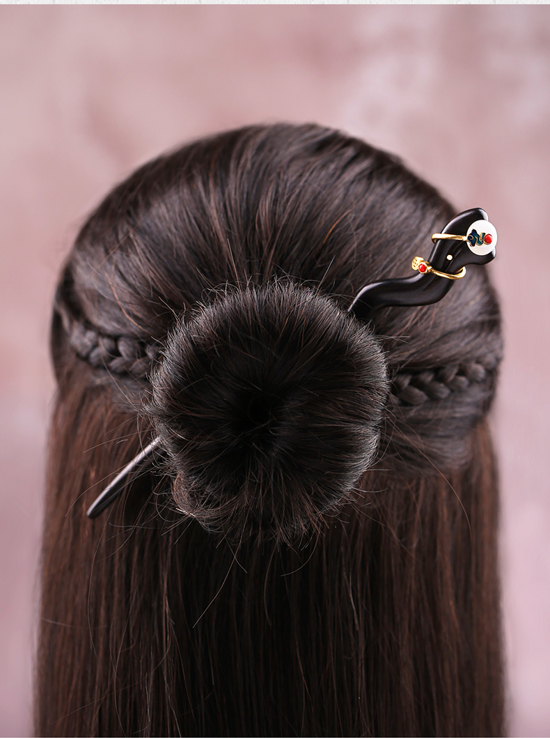 Meng Junchen black sandalwood hairpin snake-shaped safe buckle hairpin women's Hanfu hairpin hairpin creative Valentine's Day gift safe buckle black sandalwood hairpin