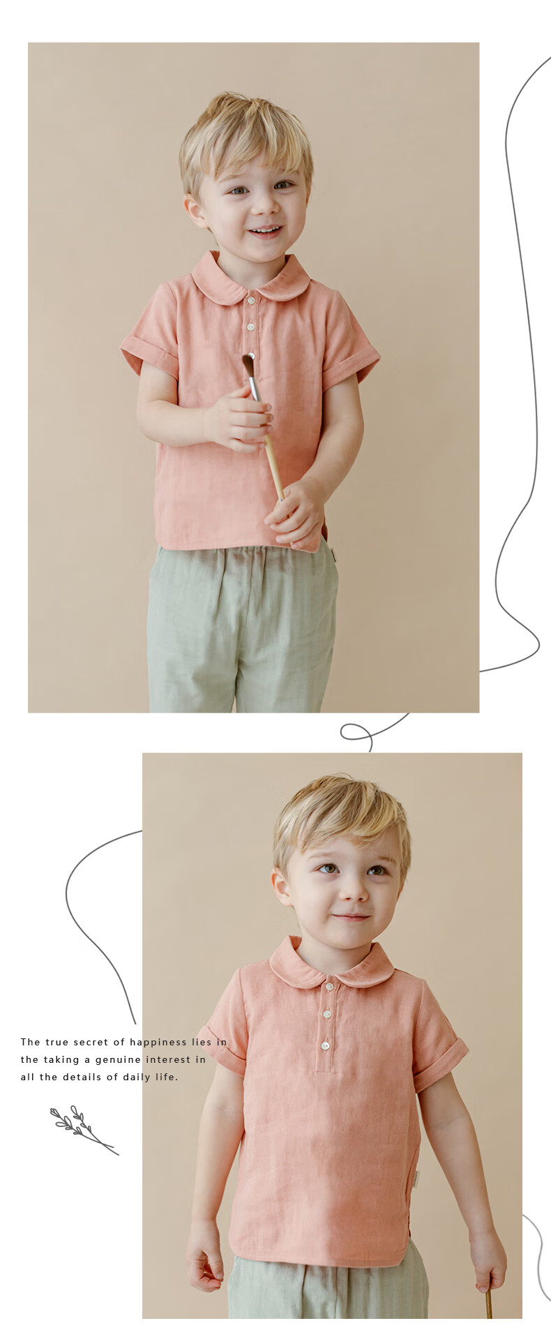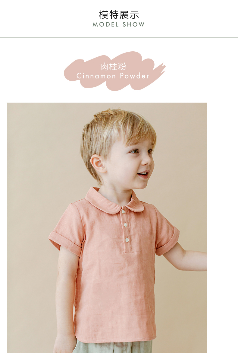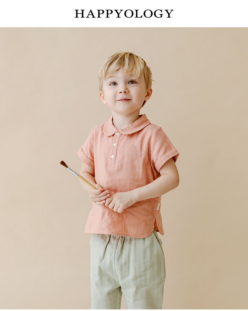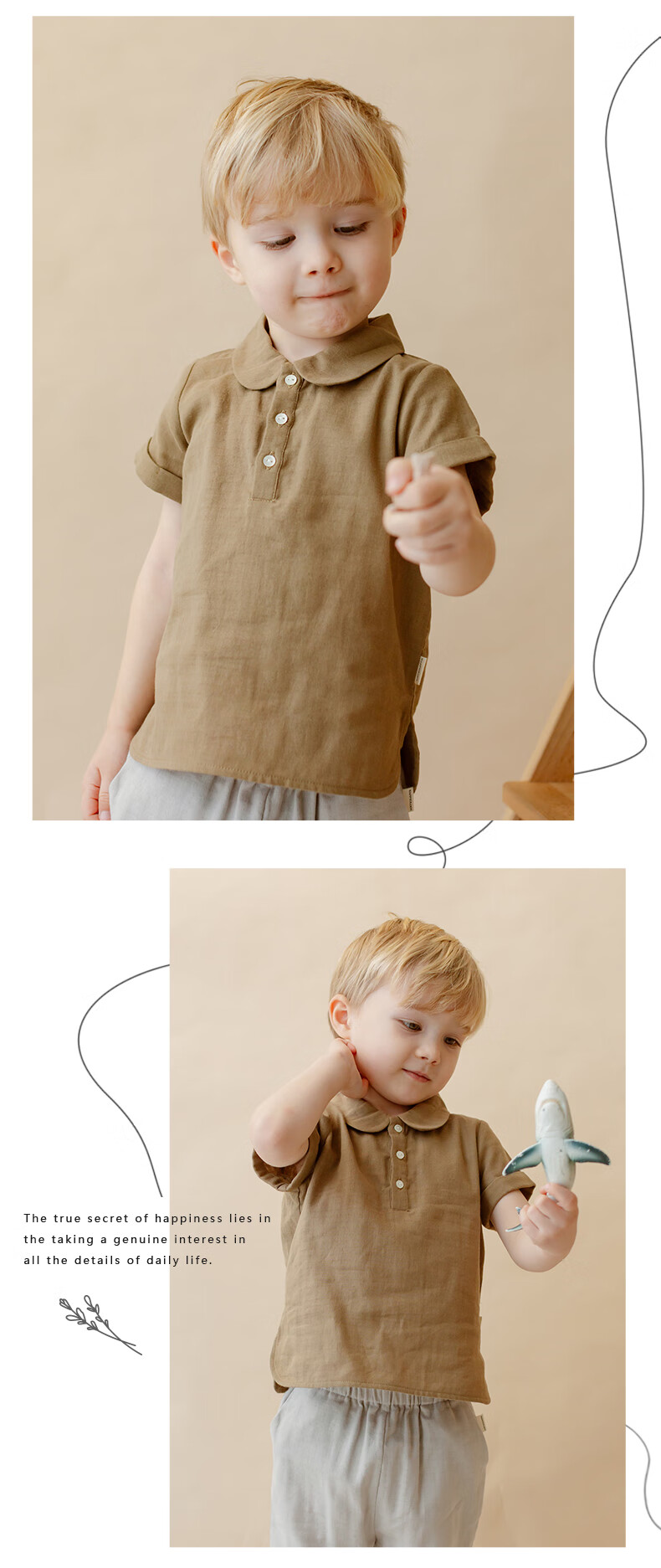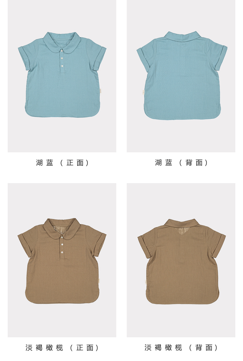 Happyology British children's shirt summer double-layer yarn short-sleeved solid color shirt British pure cotton top Cinnamon 98 (98cm)