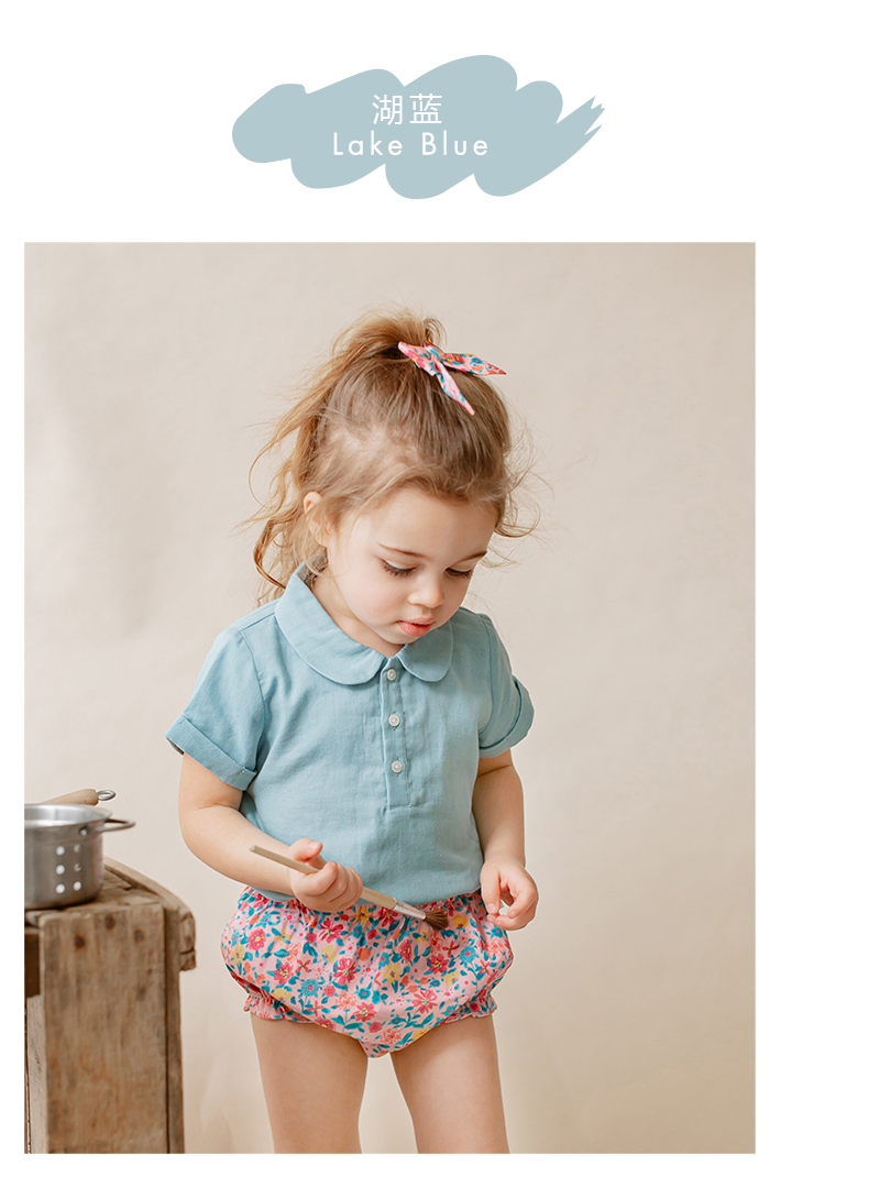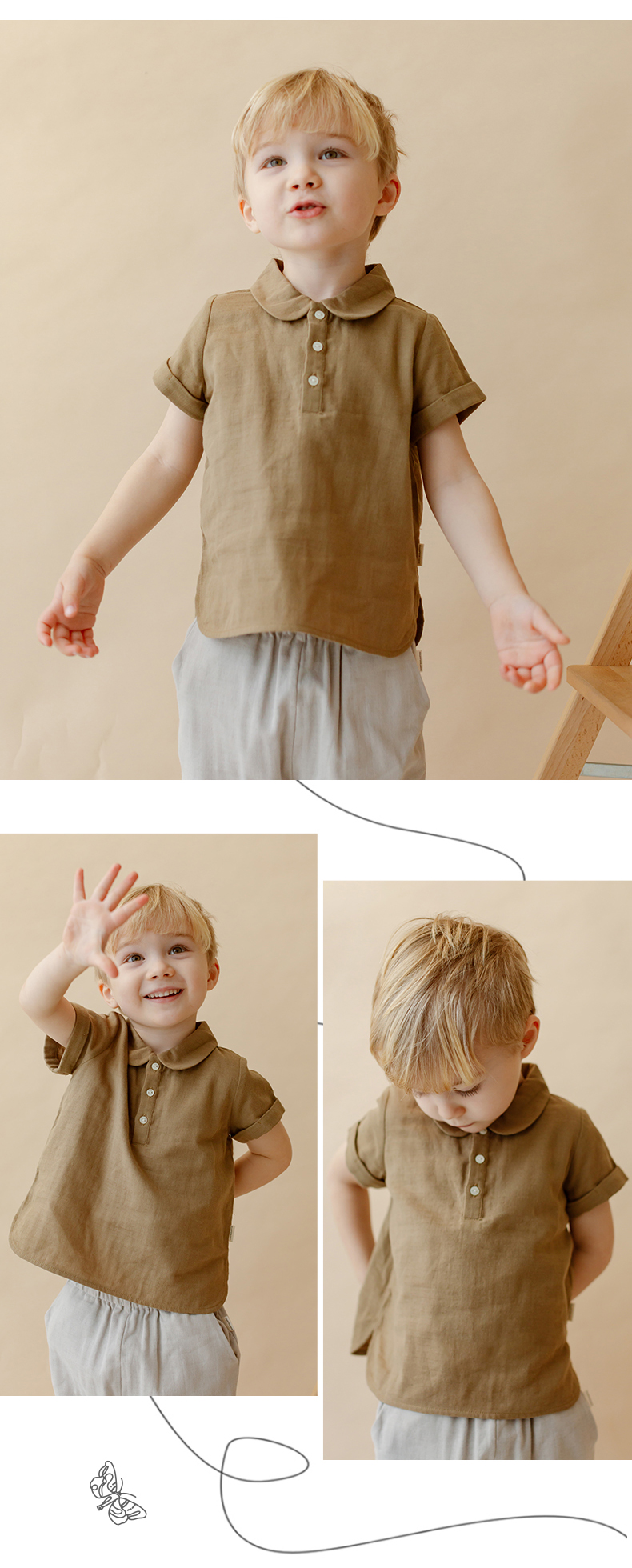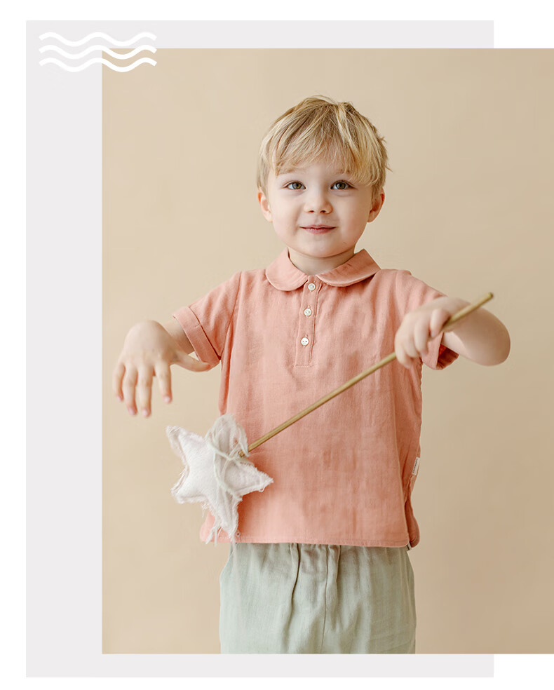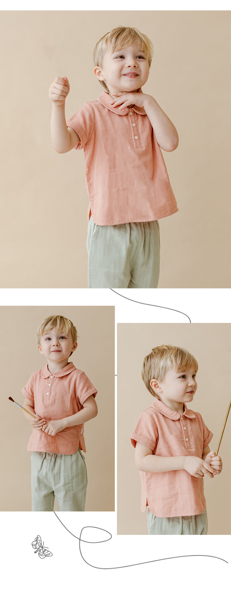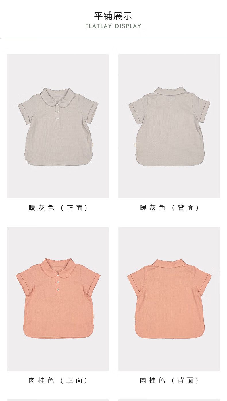 Happyology British children's shirt summer double-layer yarn short-sleeved solid color shirt British pure cotton top Cinnamon 98 (98cm)