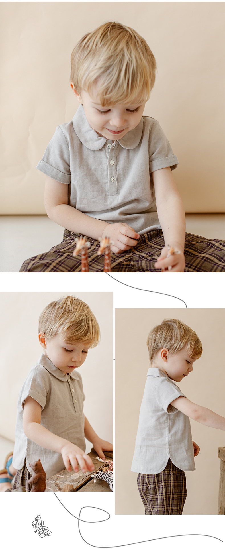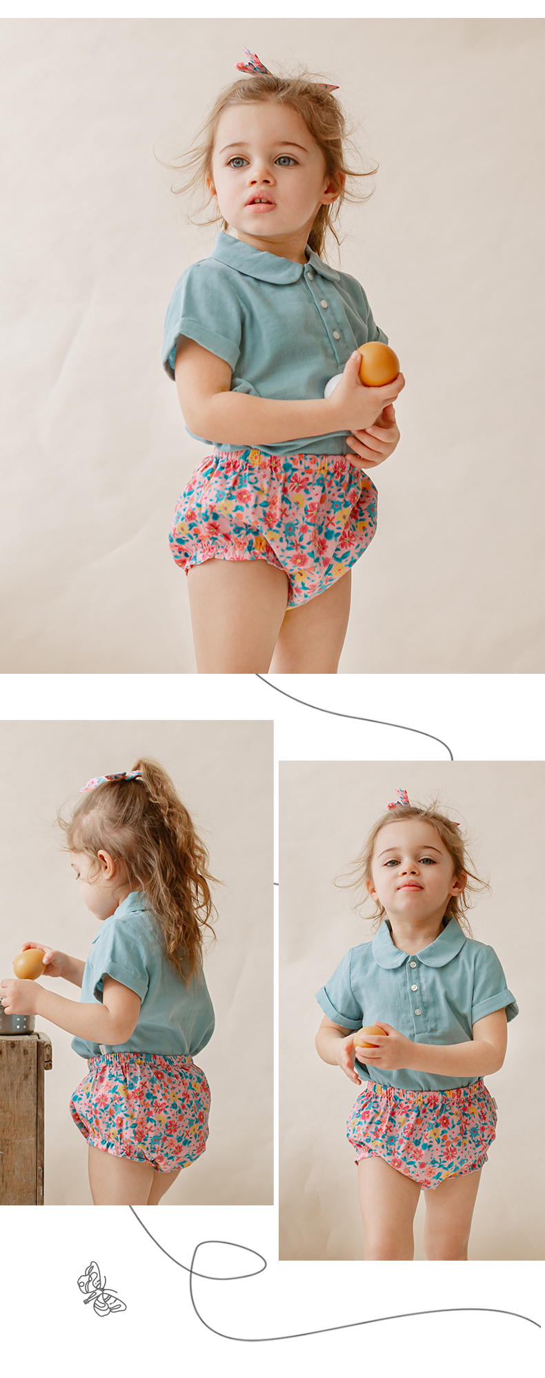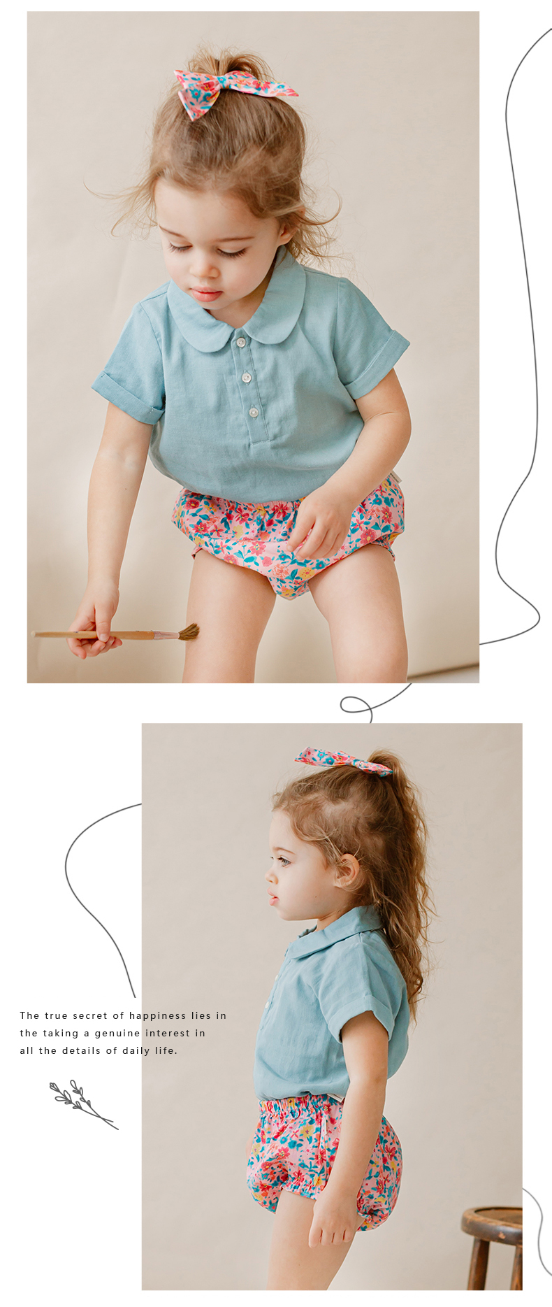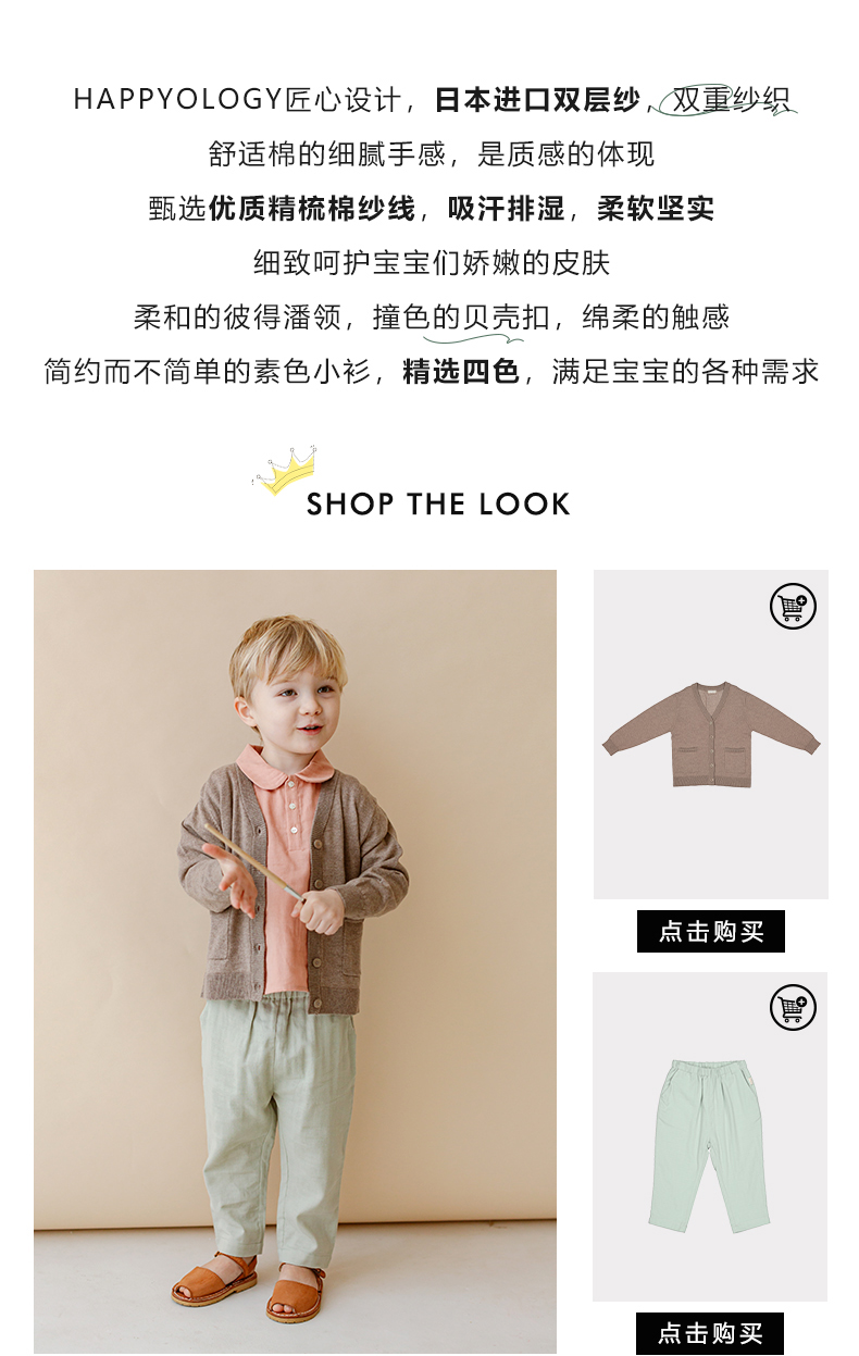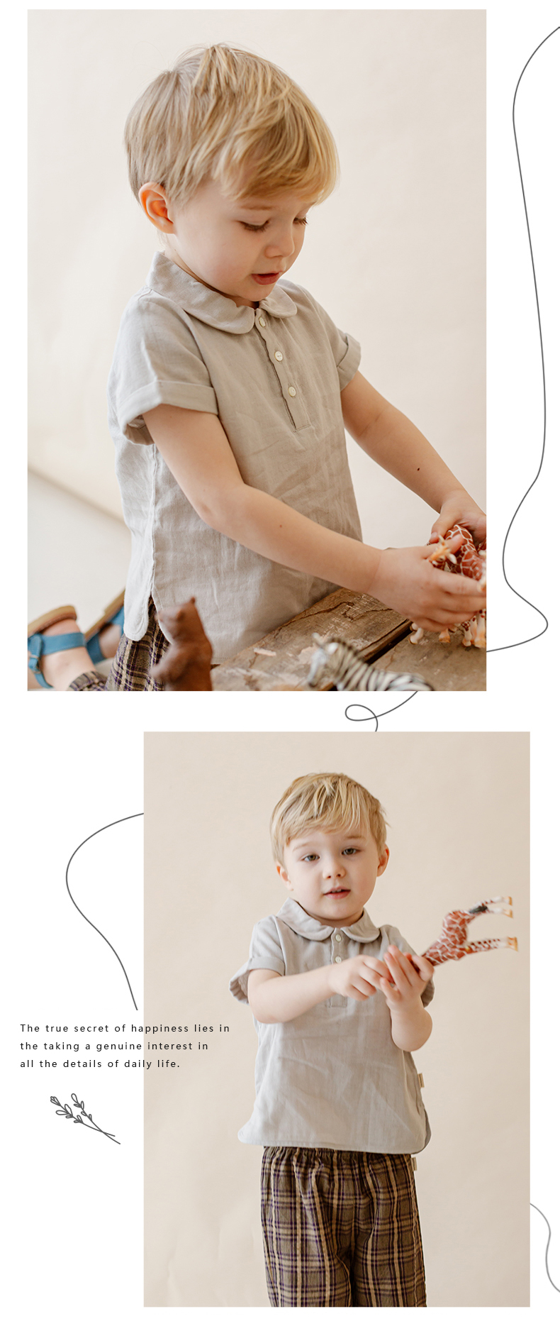 Happyology British children's shirt summer double-layer yarn short-sleeved solid color shirt British pure cotton top Cinnamon 98 (98cm)