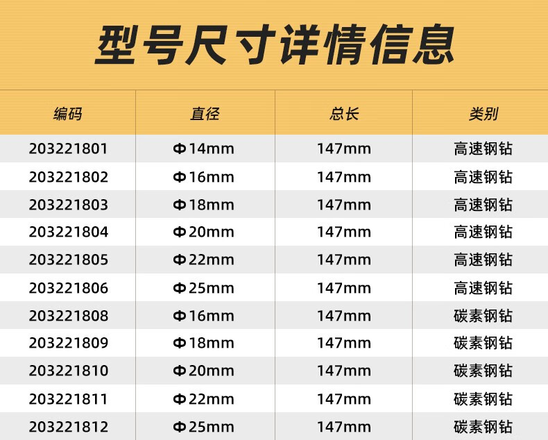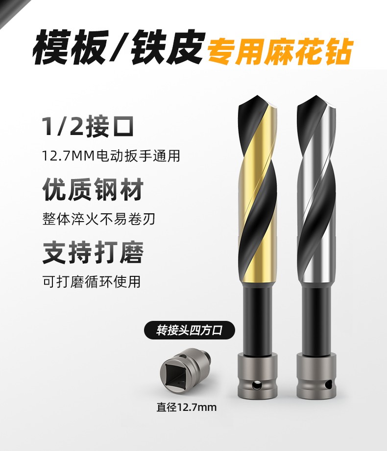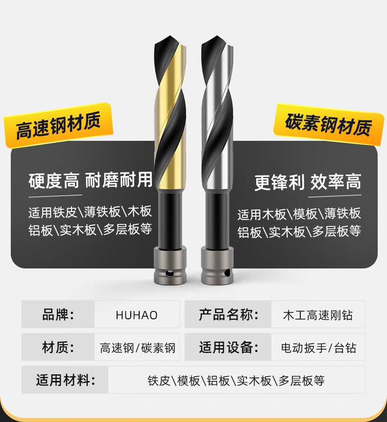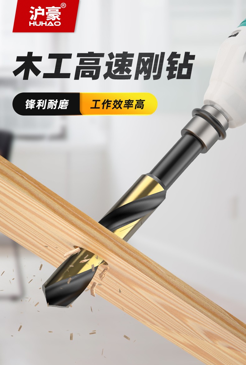 Huhao electric wrench drill bit high-speed steel high-hardness template drill punch electric wrench twist drill bit woodworking special tool high-speed steel drill 14mm