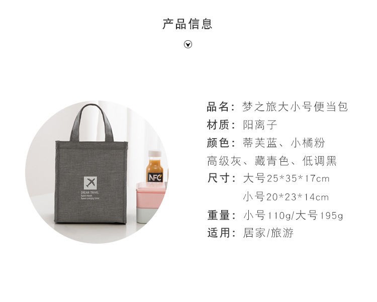 Mondavia insulated lunch bag for work with lunch bag portable large-capacity lunch box bag to keep fresh and cold outdoor airplane pattern high-end gray large size length 25*height 35*bottom width 17cm lunch box bag