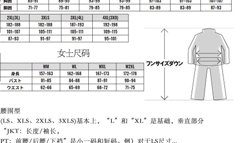 China (cm) 160-165/84-86 165-170 / 88-90 167-172 / 92-96 168-173 / 98-102 170-176 / 106-110