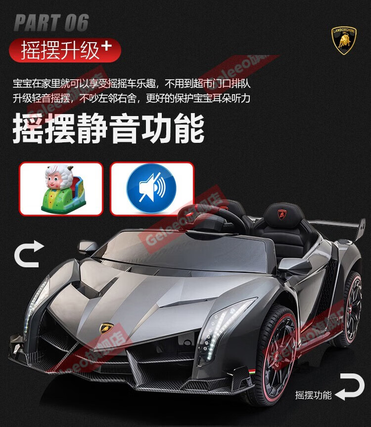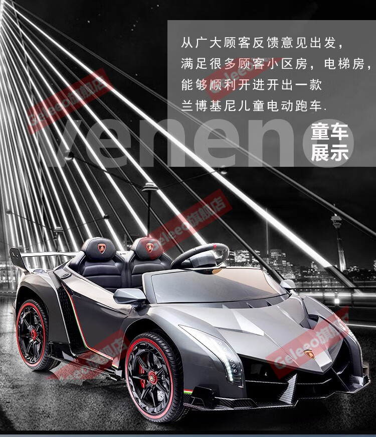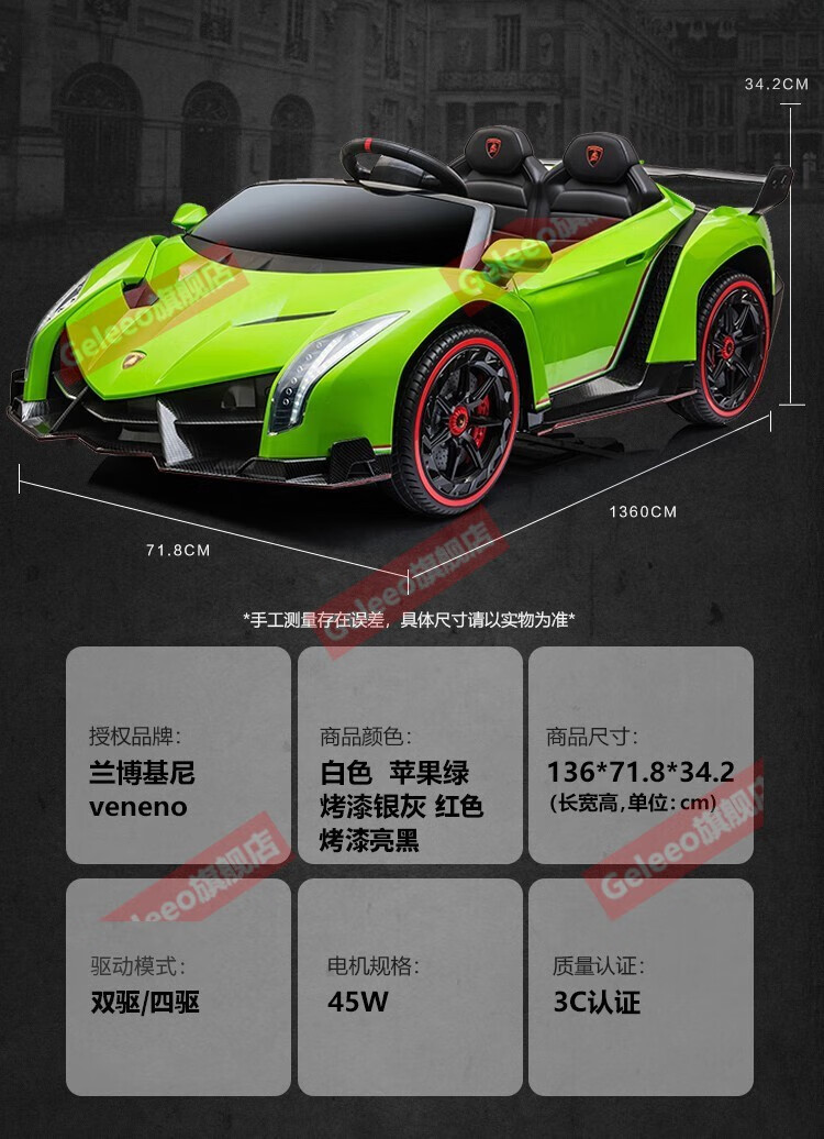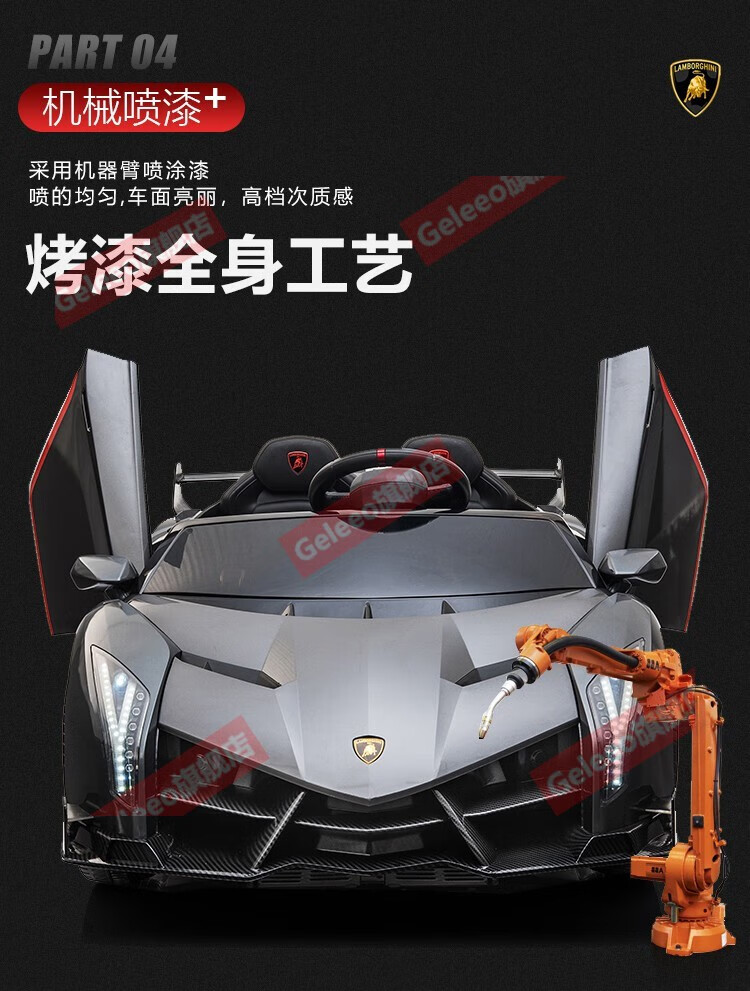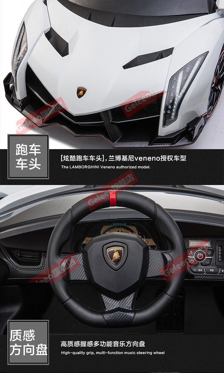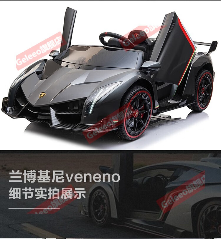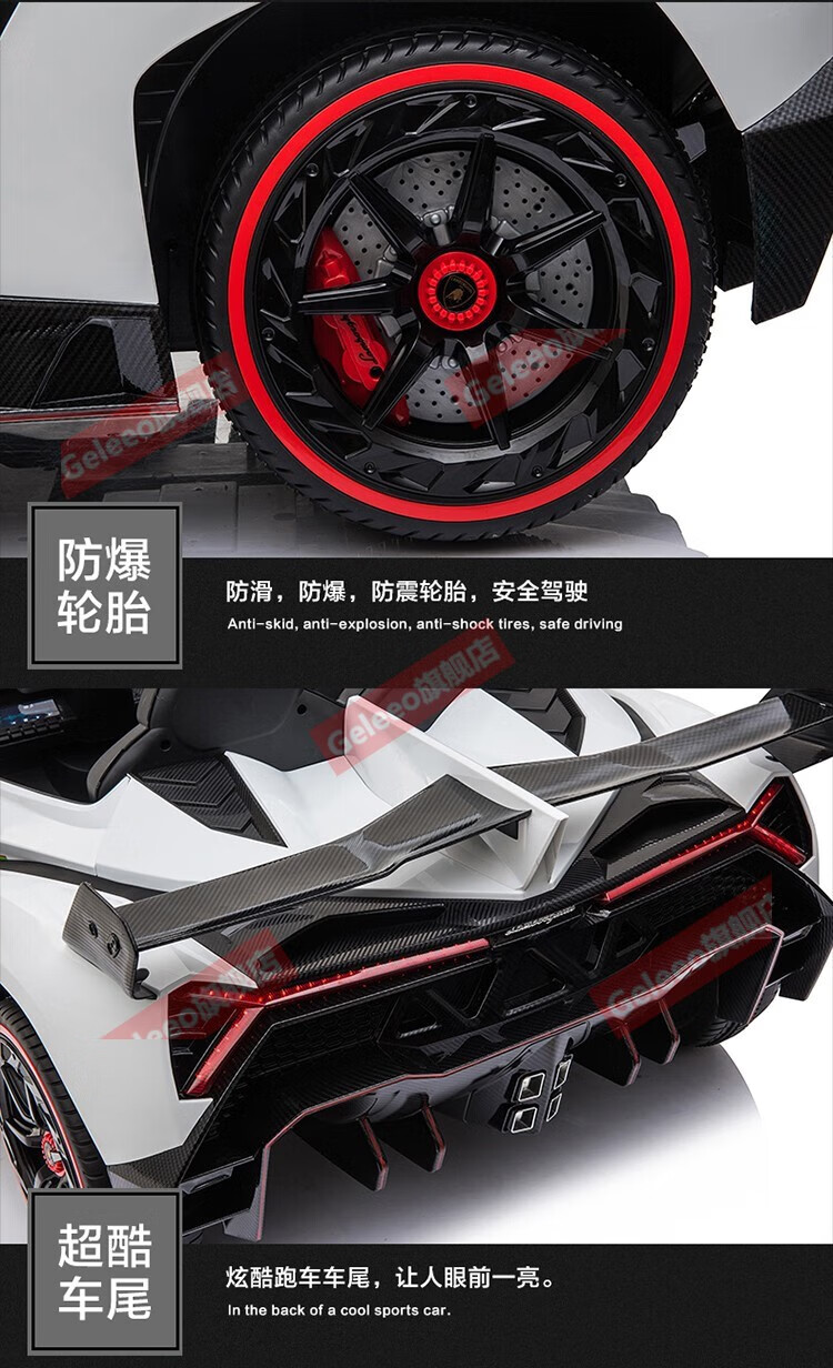 Geleeo children's electric car Lamborghini remote control car four-wheel drive child baby can sit 1-3-8 years old birthday gift painted red leather seat + full function size 135*70*35