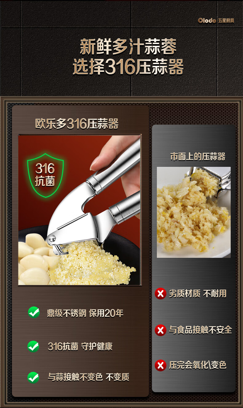 Oraldo 316 stainless steel garlic press manual press garlic tool household kitchen garlic paste making garlic tools antibacterial 316 garlic press free garlic scraper