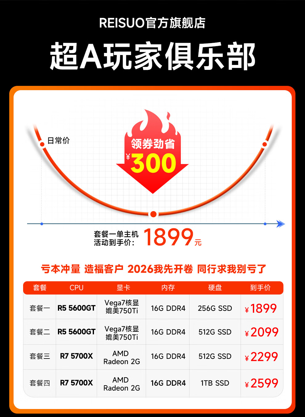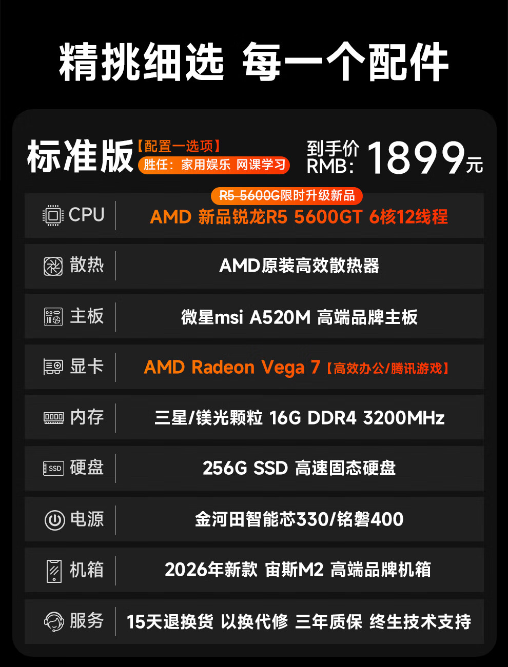 MSI AMD Ryzen R5 5600GT/R7 5700X commercial office game home online class design rendering editing DIY assembly computer complete host desktop complete set single host configuration four R7 5700X丨16G丨1TB solid state