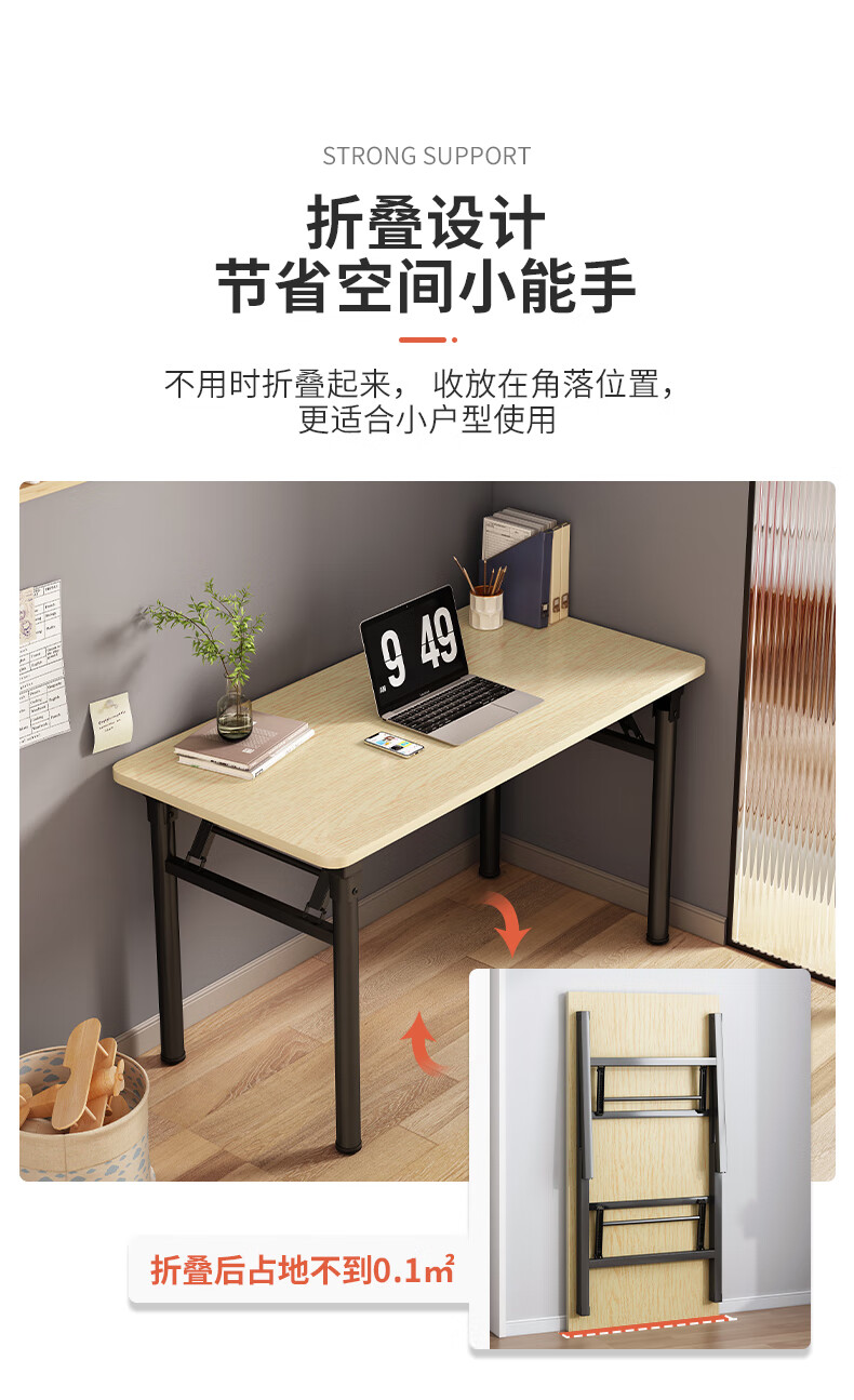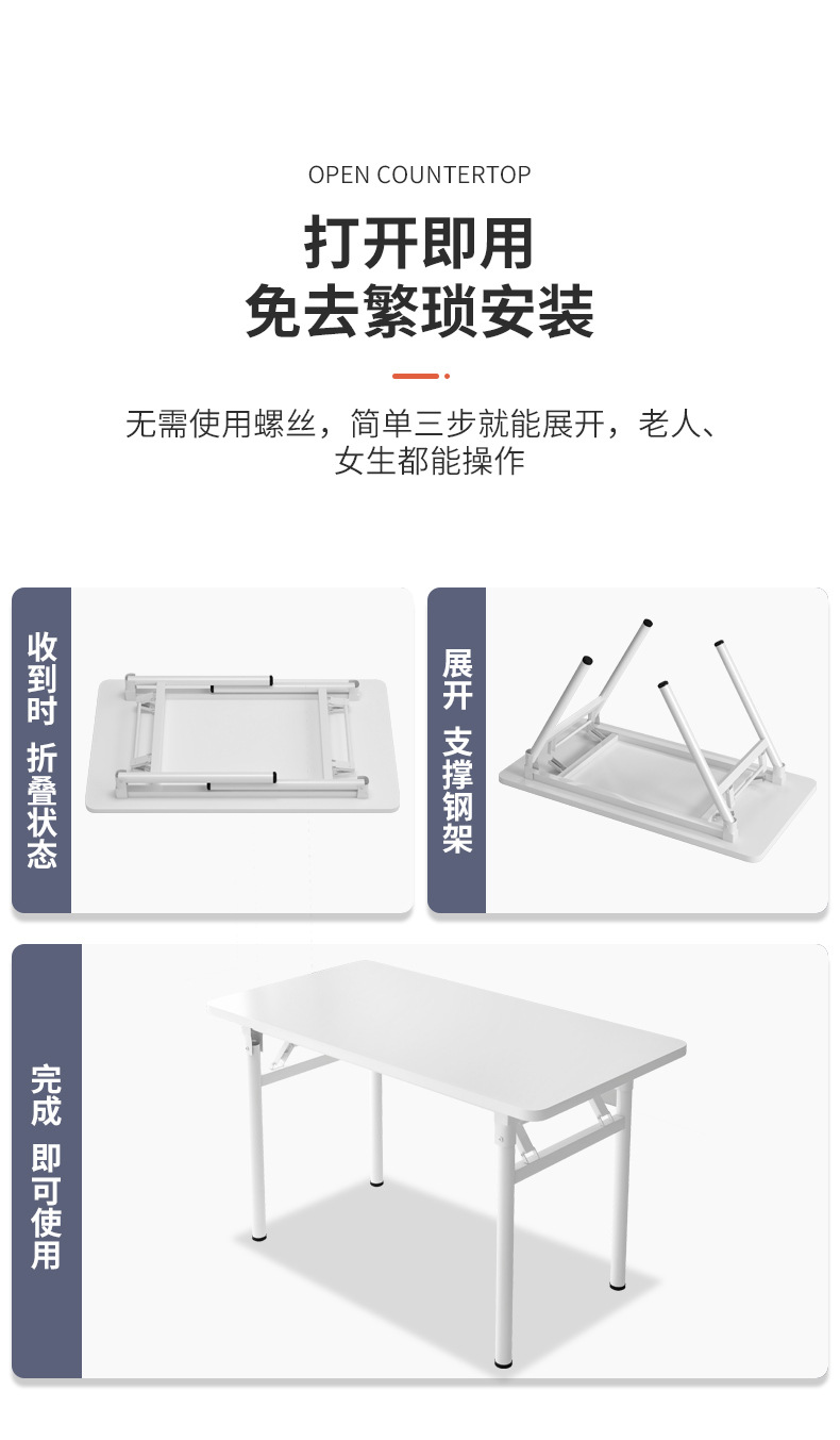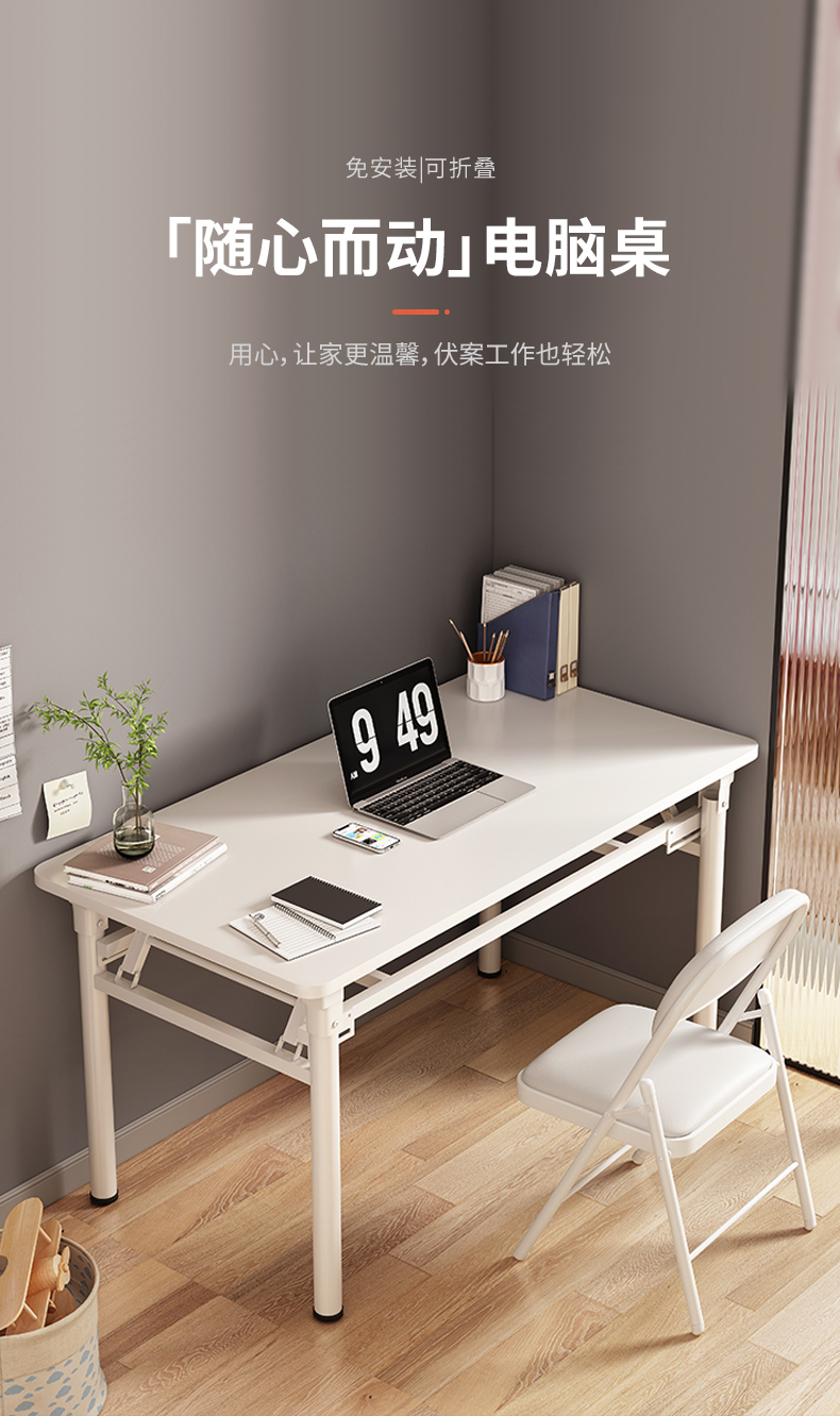 Hanfeng computer table home folding table leisure long table office training study table desktop table steel wooden floor stall table 80*40*75cm thickened round tube single layer