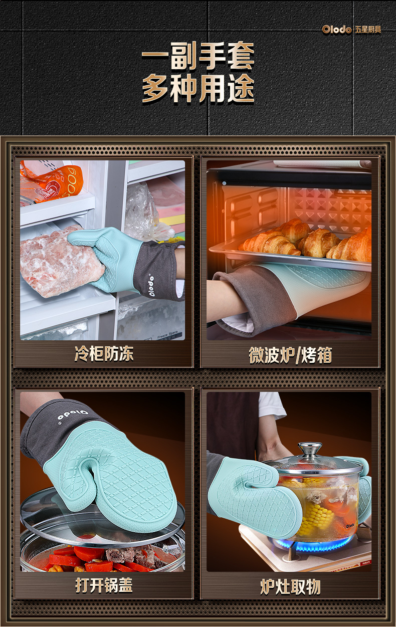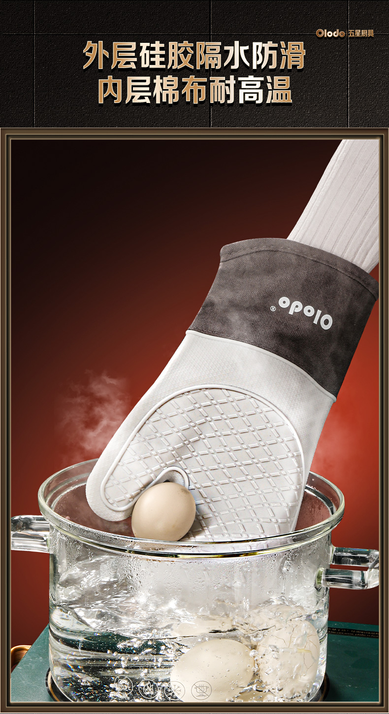 Oraldo silicone insulation gloves household double-layer microwave oven anti-scalding gloves high temperature resistant thickened kitchen baking gloves insulation silicone gloves white 1 piece