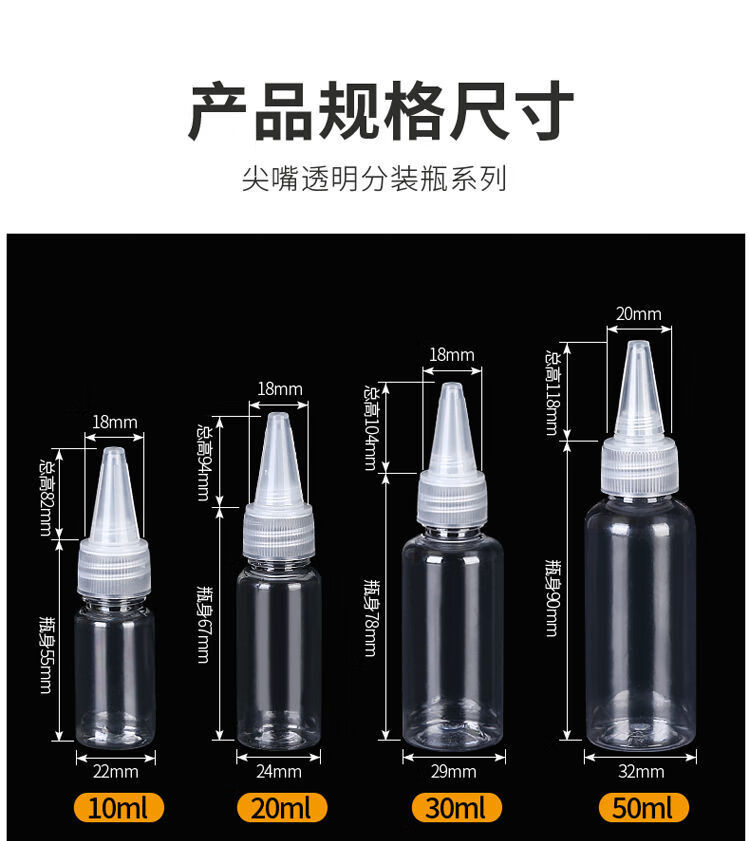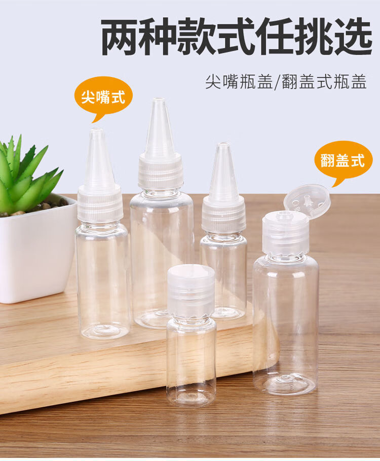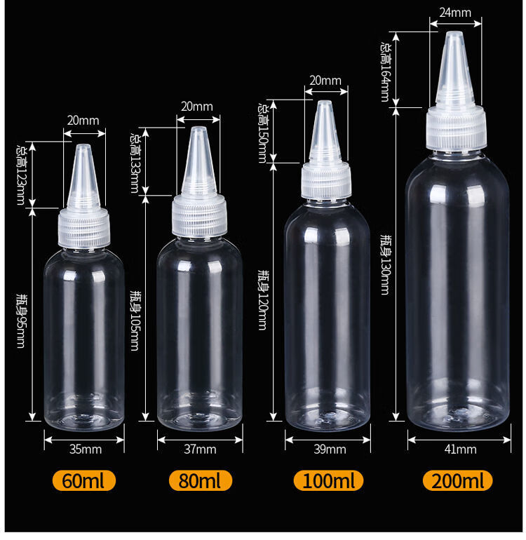 Squeeze sauce bottle, pointed mouth bottle 10/20/30/50/100/200 small empty bottle, plastic bottle, lotion transparent repackaging squeeze bottle, pointed mouth bottle 200 ml, 2 pack