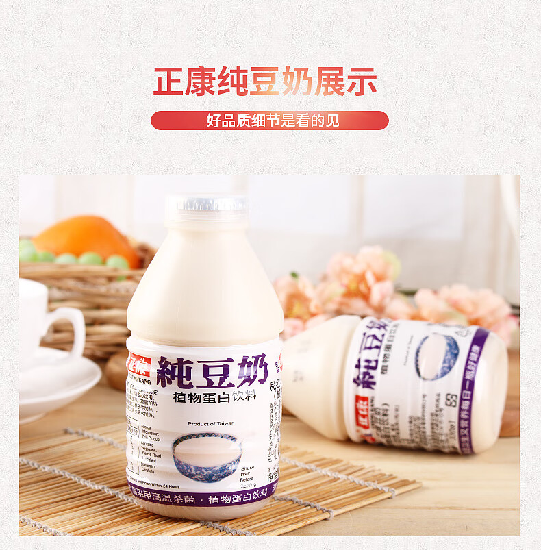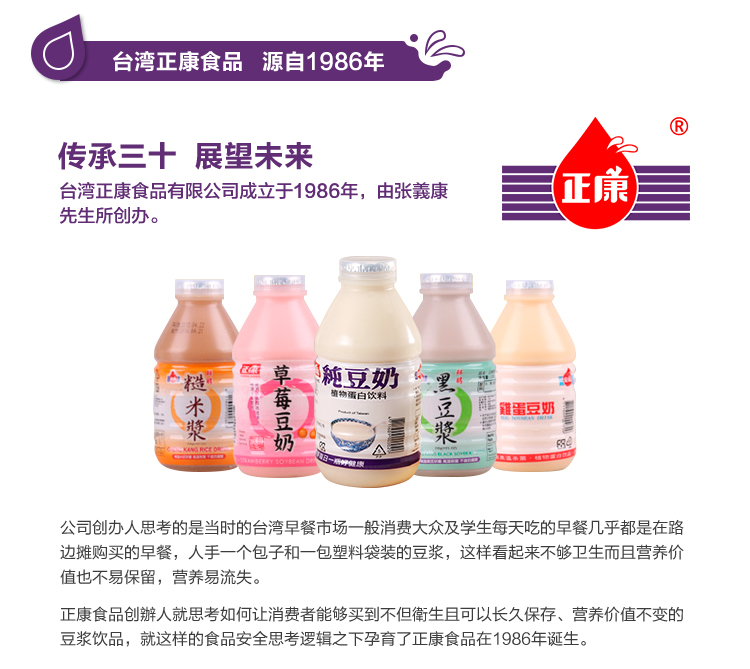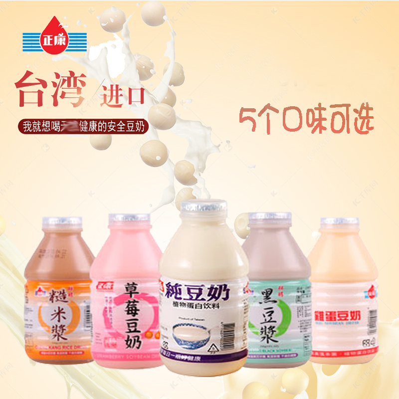 Zhengkang full box of 24 bottles Taiwanese plant protein drink original black soy milk brown rice milk strawberry egg flavor breakfast soy milk black soy milk 330ML*24 (full box)