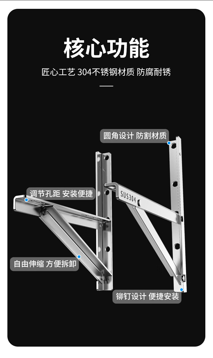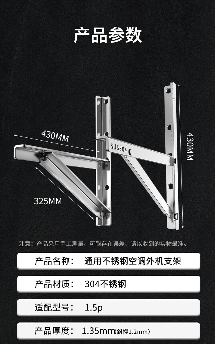 TAZD air conditioner bracket stainless steel outer frame thickened air conditioner outdoor unit bracket universal air conditioner installation rack 304 material stainless steel air conditioner bracket external unit rack 1.5P stainless steel air conditioner outdoor unit bracket (thickened 1.5P universal))