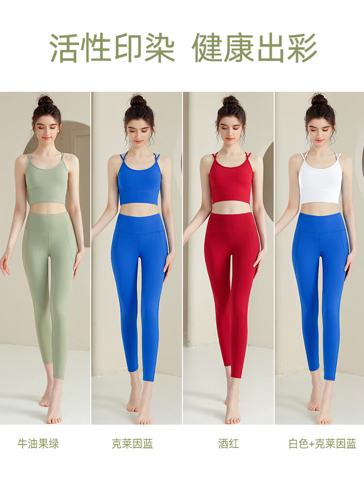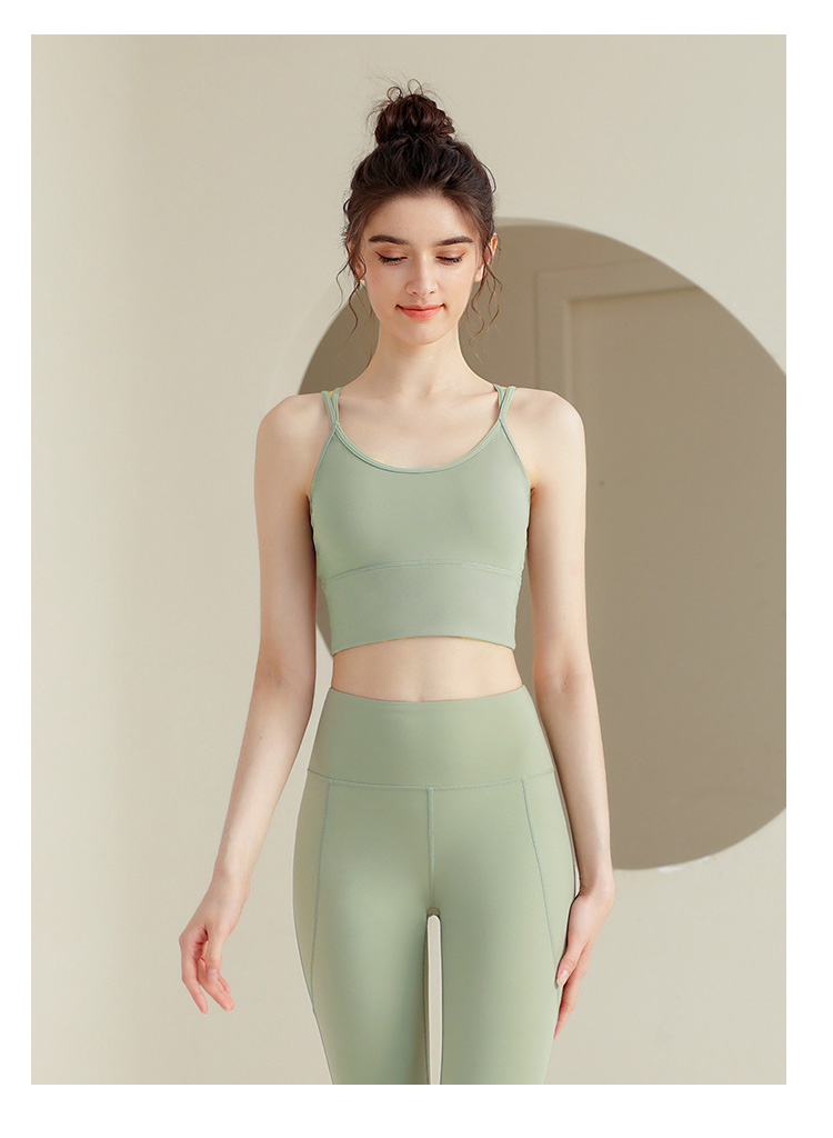 Shuangxiu yoga clothing set for women, high-end, beautiful back and butt lift, professional Pilates training clothing, gym sports vest, avocado green suit M (100-110Jin Jin equals 0.5kg)
