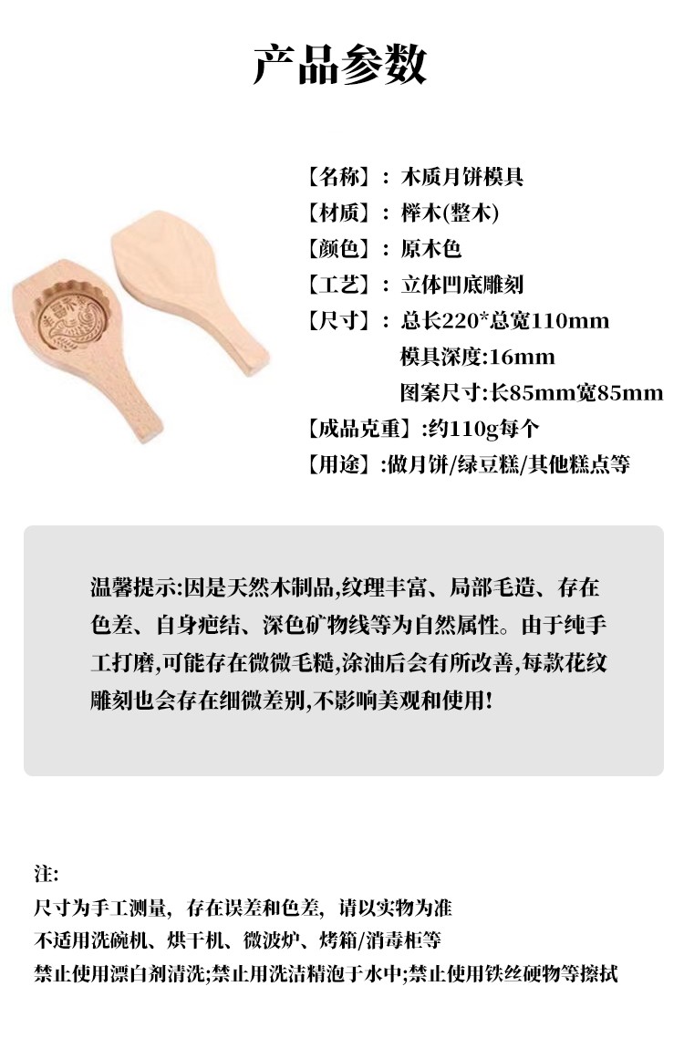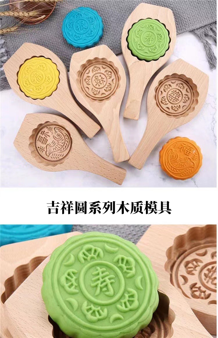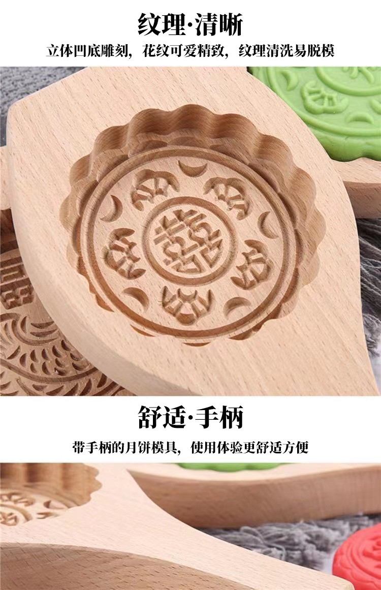 Haiyi Duo Wooden Baking Mold Steamed Bun Cake Mung Bean Cake Making Mooncake Mold Pastry Pumpkin Cake Steamed Bun Dessert Jixiang Yufu Wooden Mooncake Mold