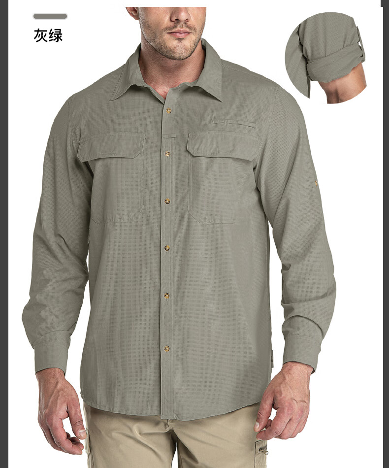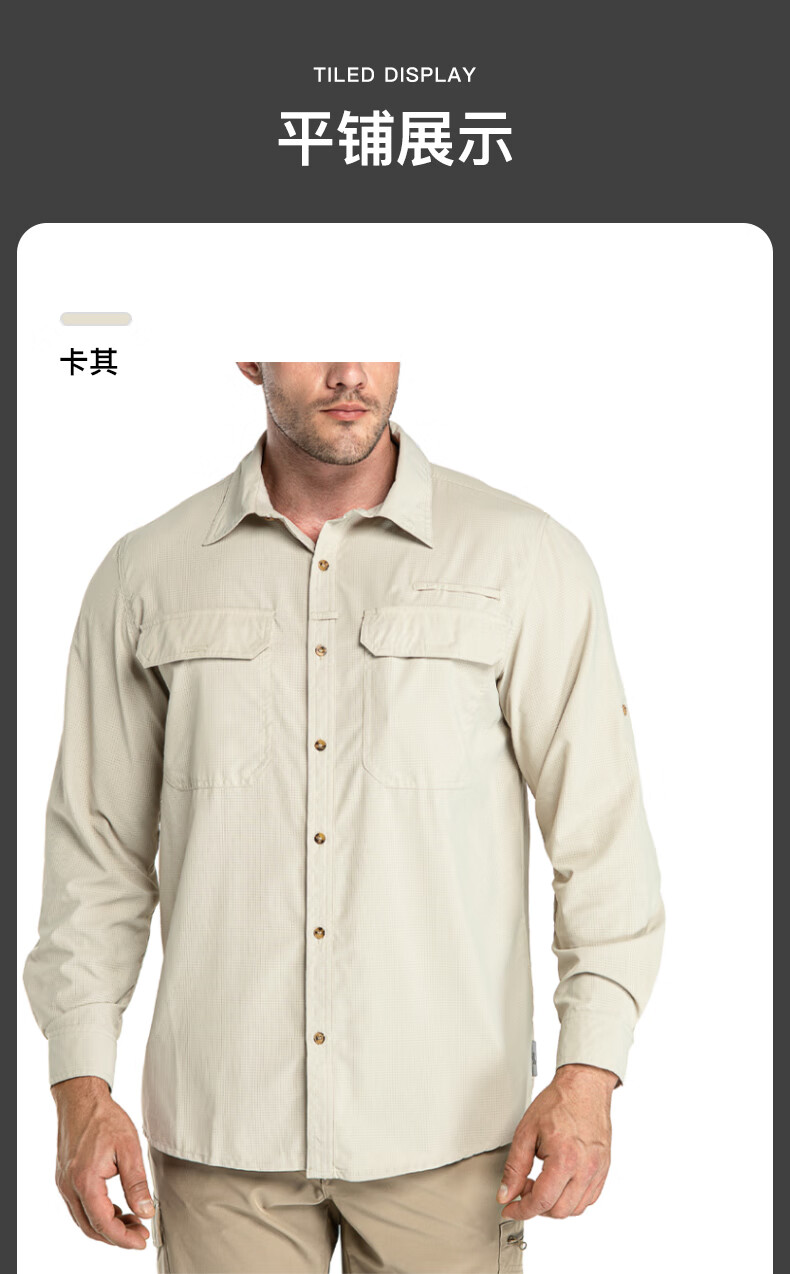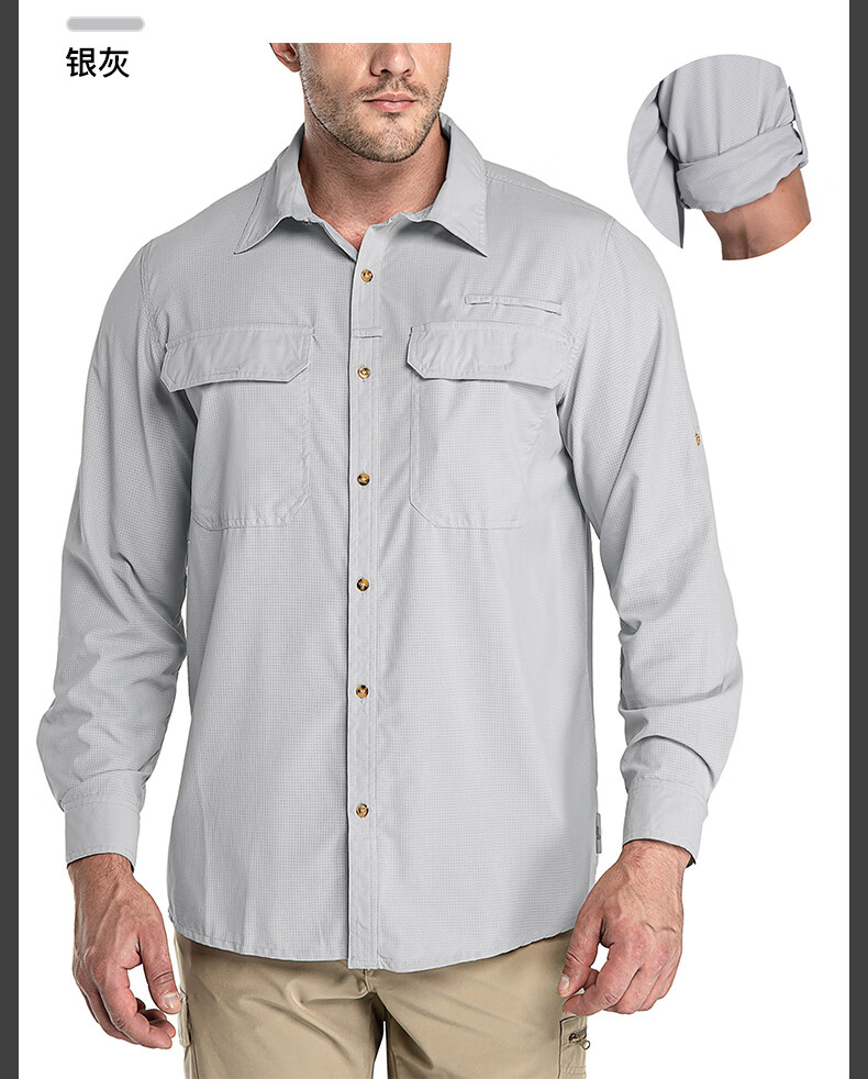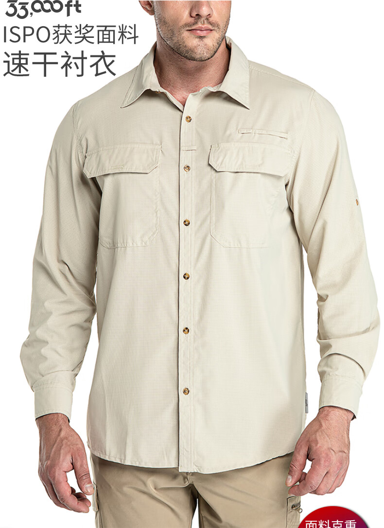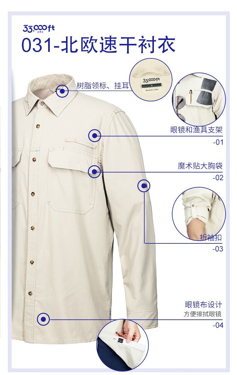 33000 ft Nordic outdoor quick-drying shirt for men, lightweight, highly breathable, waterproof, loose, large size, summer long-sleeved fishing shirt 031, light khaki M European size (suitable for 160-180 Jin Jin equals 0.5 kg)