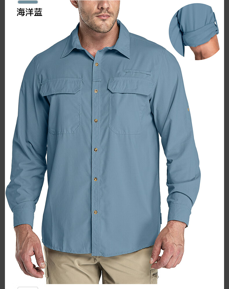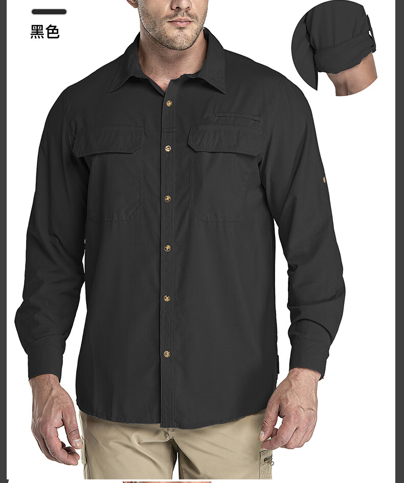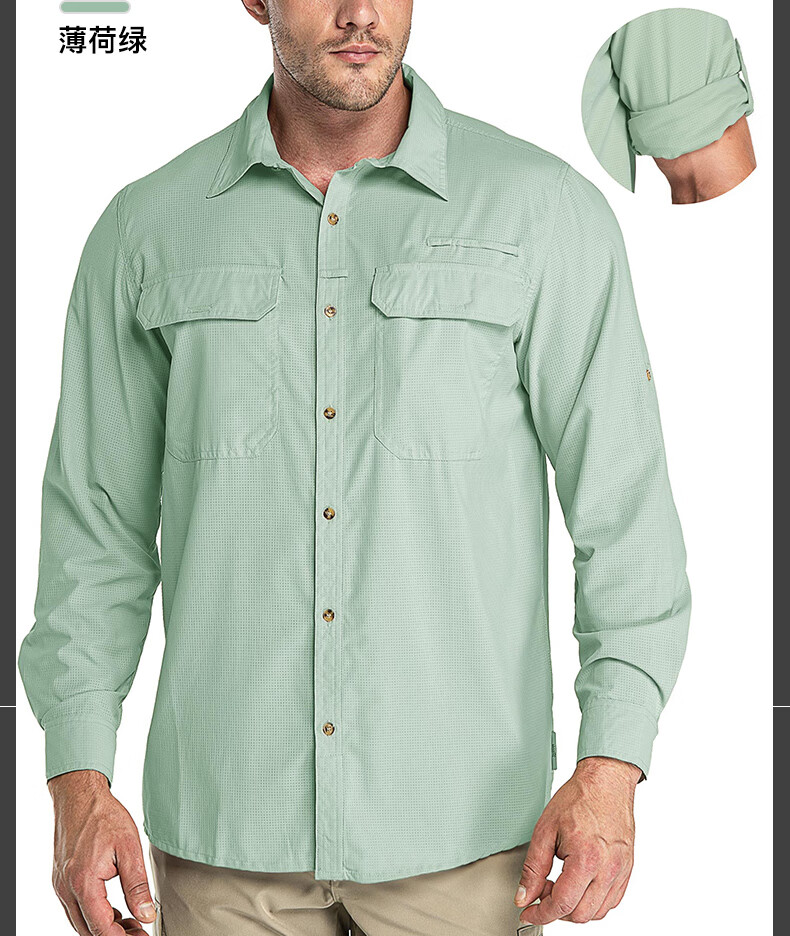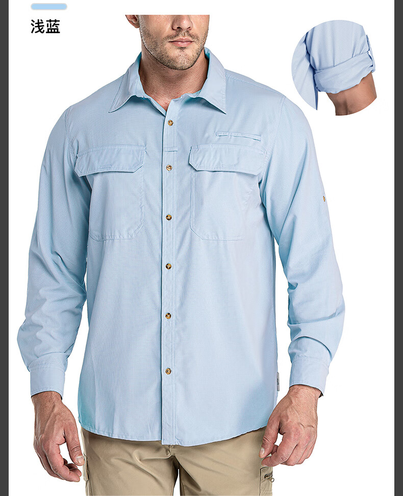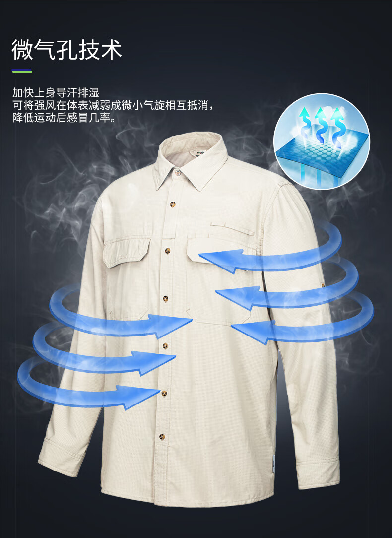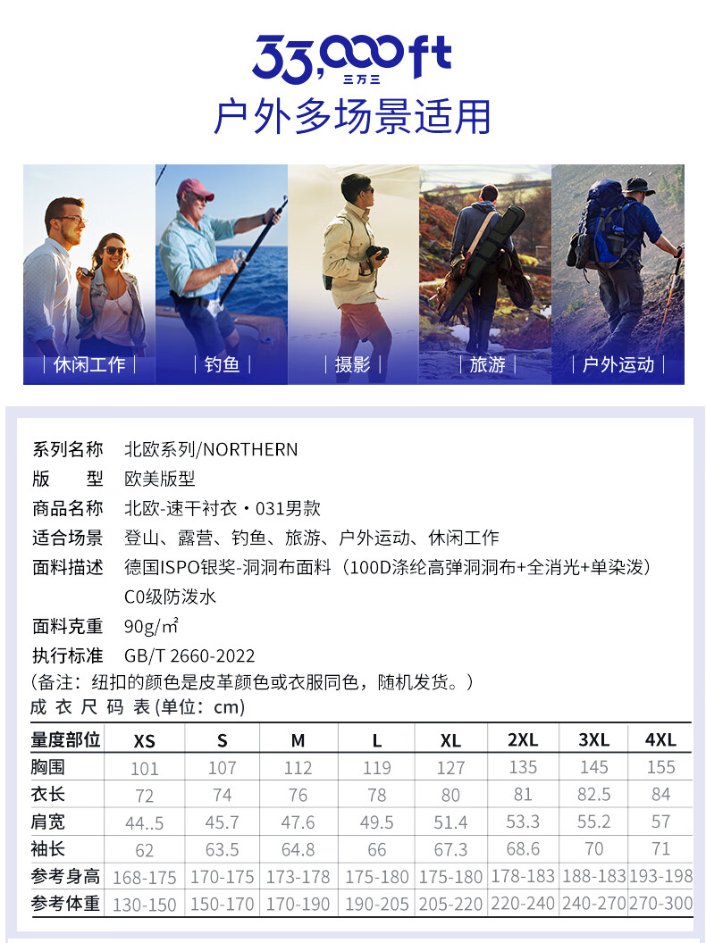 33000 ft Nordic outdoor quick-drying shirt for men, lightweight, highly breathable, waterproof, loose, large size, summer long-sleeved fishing shirt 031, light khaki M European size (suitable for 160-180 Jin Jin equals 0.5 kg)
